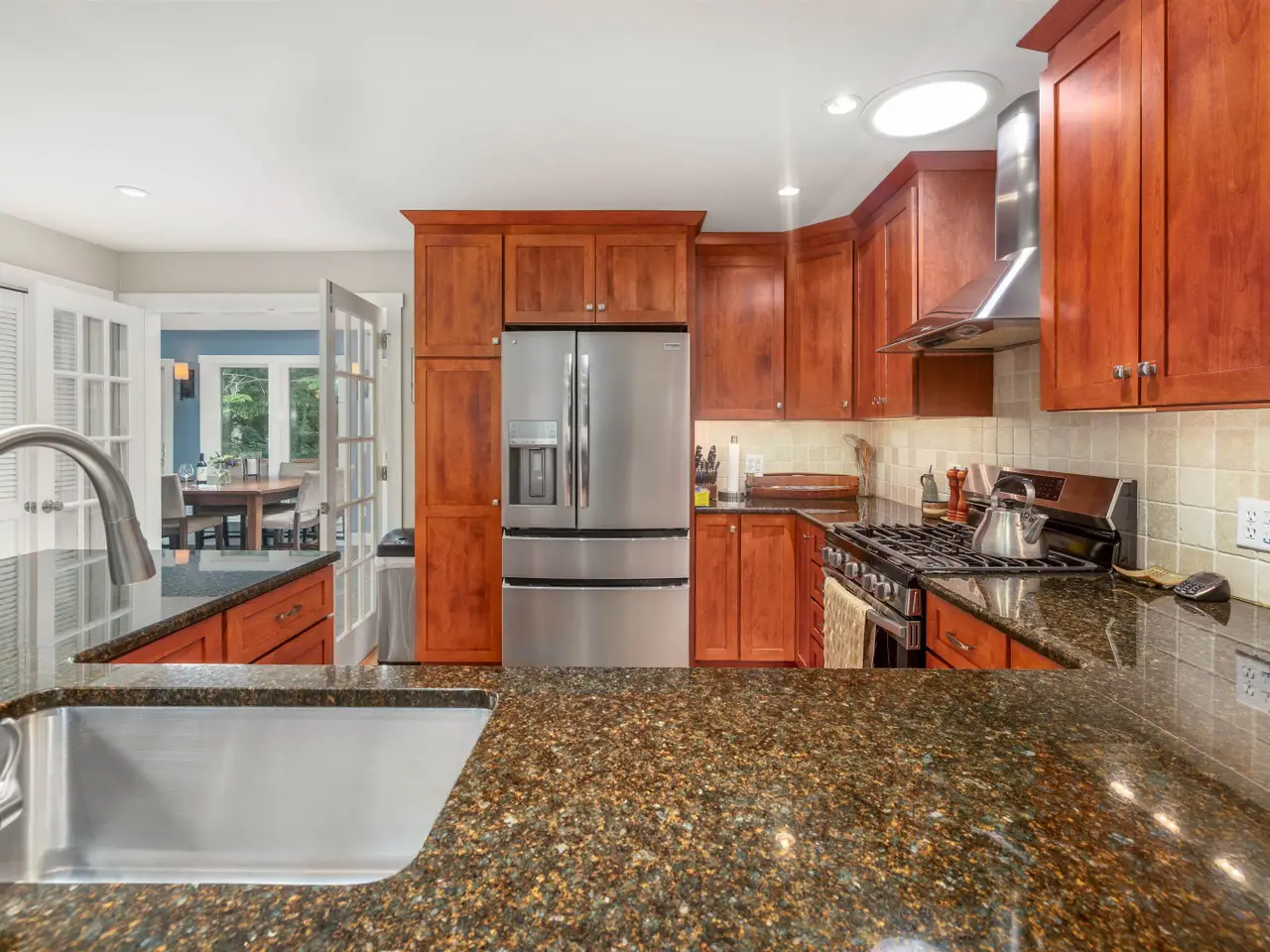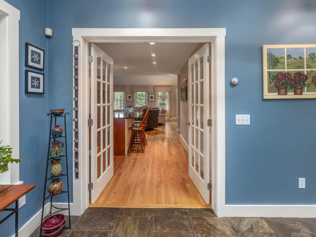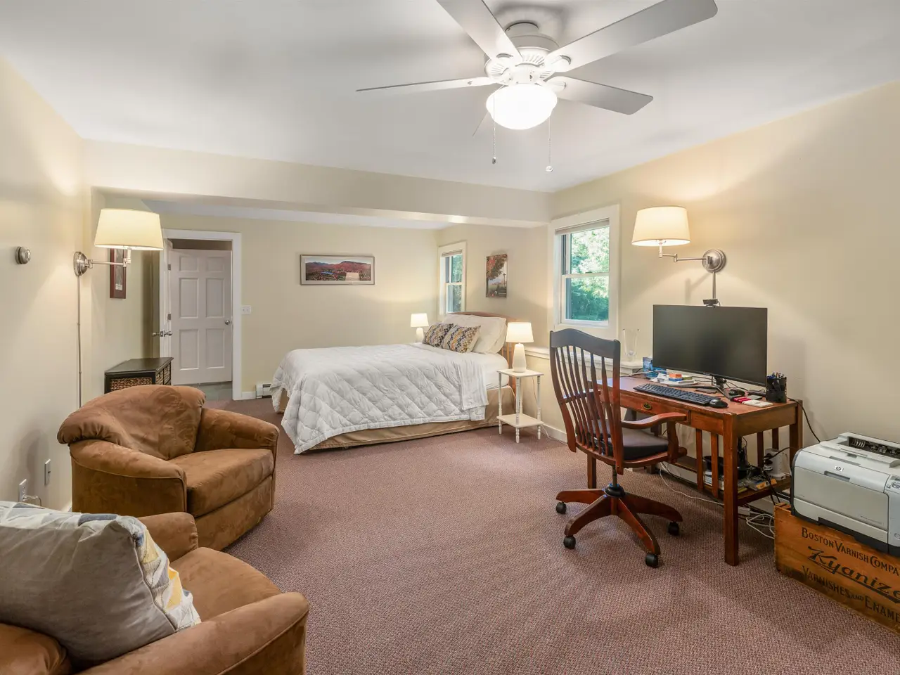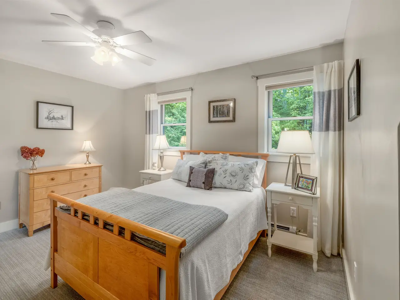 Hidden gems around every corner! Tucked away at the end of the road in the sought-after Black Bear Run neighborhood, this immaculately maintained 3-bedroom, 4-bath home offers the perfect blend of privacy, comfort, and style. From the beautifully finished garage you will walk into a brand new mudroom before entering into the heart of the home. Here you will find the chef’s kitchen, where friends and family can gather around the counter to keep the cook company as meals come together. The kitchen opens to the living room with a wood burning stove that creates a warm and welcoming space for entertaining. And the dining room has added ambiance with a propane fireplace. Also on the main level is the convenience of a primary ensuite with a renovated 3/4 bath and custom crafted walk-in closet. Upstairs, you’ll find two bright bedrooms, a full bath, and a dedicated home office, ideal for remote work. The lower level offers incredible flexibility with a full bath, kitchenette, exercise room, and an additional room perfect for overnight guests. Step outside and enjoy impeccably landscaped grounds, a covered porch for watching wildlife and soaking in sunsets, and a firepit for evenings under the stars. Miles of trails are accessible right from your front door. Situated between Stowe and Waterbury Center, with easy access to I-89, Montpelier, and the Mad River Valley, this location is unbeatable for both convenience and tranquility. This is Vermont living at its finest—inside and out.