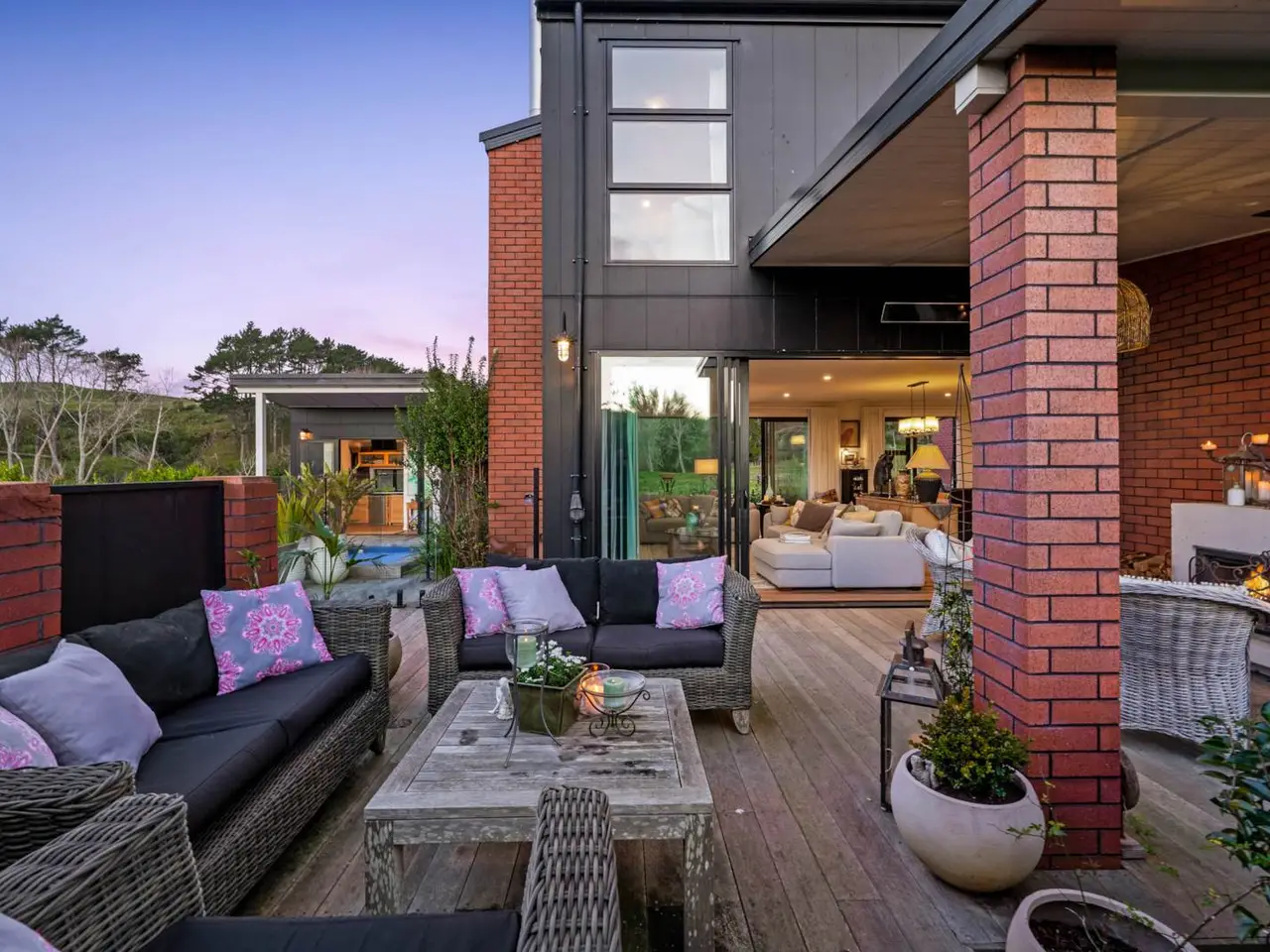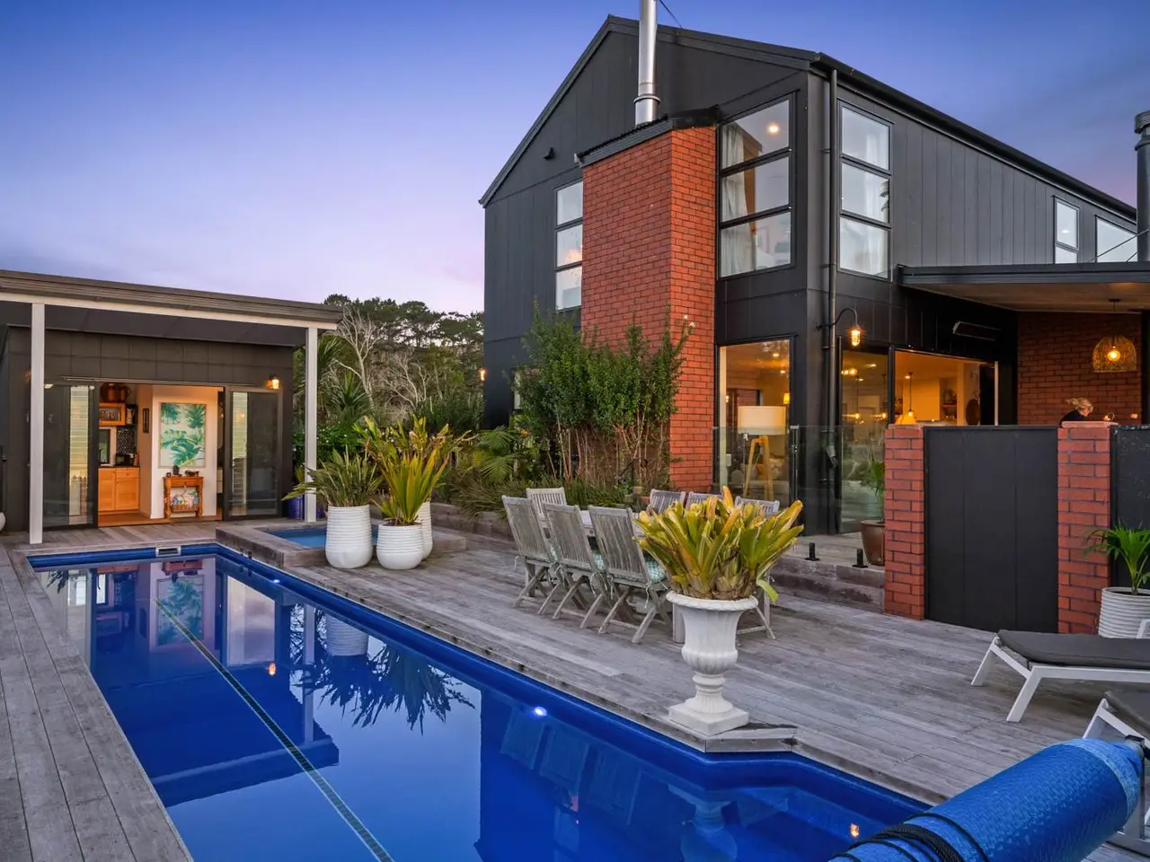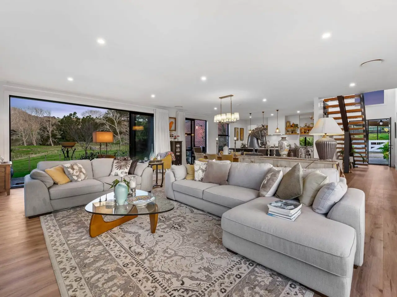 Set on just over one hectare of manicured grounds, this architecturally designed residence offers the ultimate in luxury living, privacy, and rural elegance in one of Waimauku’s most exclusive addresses.Every detail of this bespoke home has been thoughtfully crafted, from the stunning oak cabinetry and in-floor wine well in the designer kitchen and full butler’s pantry, to the ambient feature lighting and hotel-style bathrooms that exude sophistication.The home offers three expansive bedrooms, including a master retreat with separate his and hers walk-in robes and a luxurious ensuite. Two living spaces provide comfort and functionality — a media room with built-in electric fireplace, and a lounge featuring a sumptuous statement fireplace, perfect for cosy evenings.Climate control is effortless with zoned air conditioning across both levels, including the dedicated home office with separate controls — ideal for remote work or study.Step outside into an entertainer’s dream: a beautifully appointed outdoor area complete with a custom Trendz fireplace, sparkling swimming pool, spa, and a fully-equipped pool house with kitchenette and bathroom — perfect for hosting or relaxing in private luxury.The expansive barn adds further versatility, offering a self-contained studio ideal for extended family or guests, along with three stables and a wash bay — a rare find for equestrian or lifestyle enthusiasts.Framed by long rural views and nestled in an elite enclave, this is a rare opportunity to secure a lifestyle of unparalleled quality and comfort.Enquire now to experience Waimauku’s finest. #Lovewhereyoulive Deadline sale: Closes on Wednesday 8 October 2025 at 2:00PM (unless sold prior)