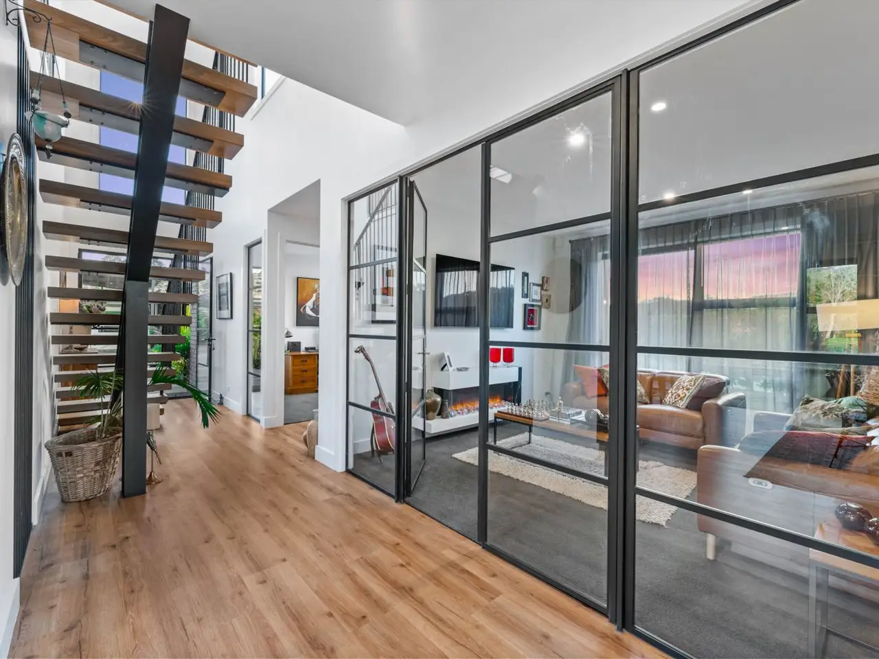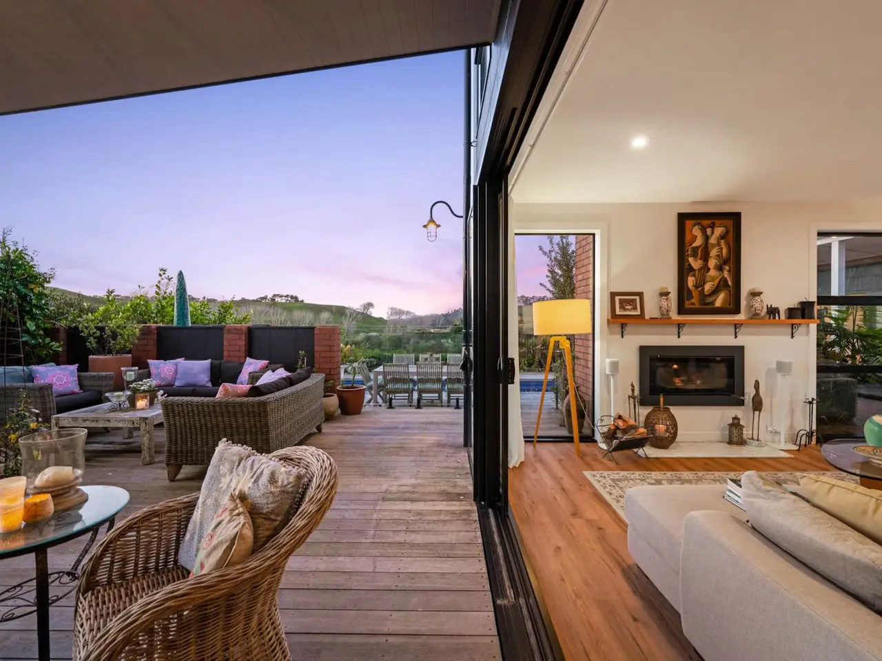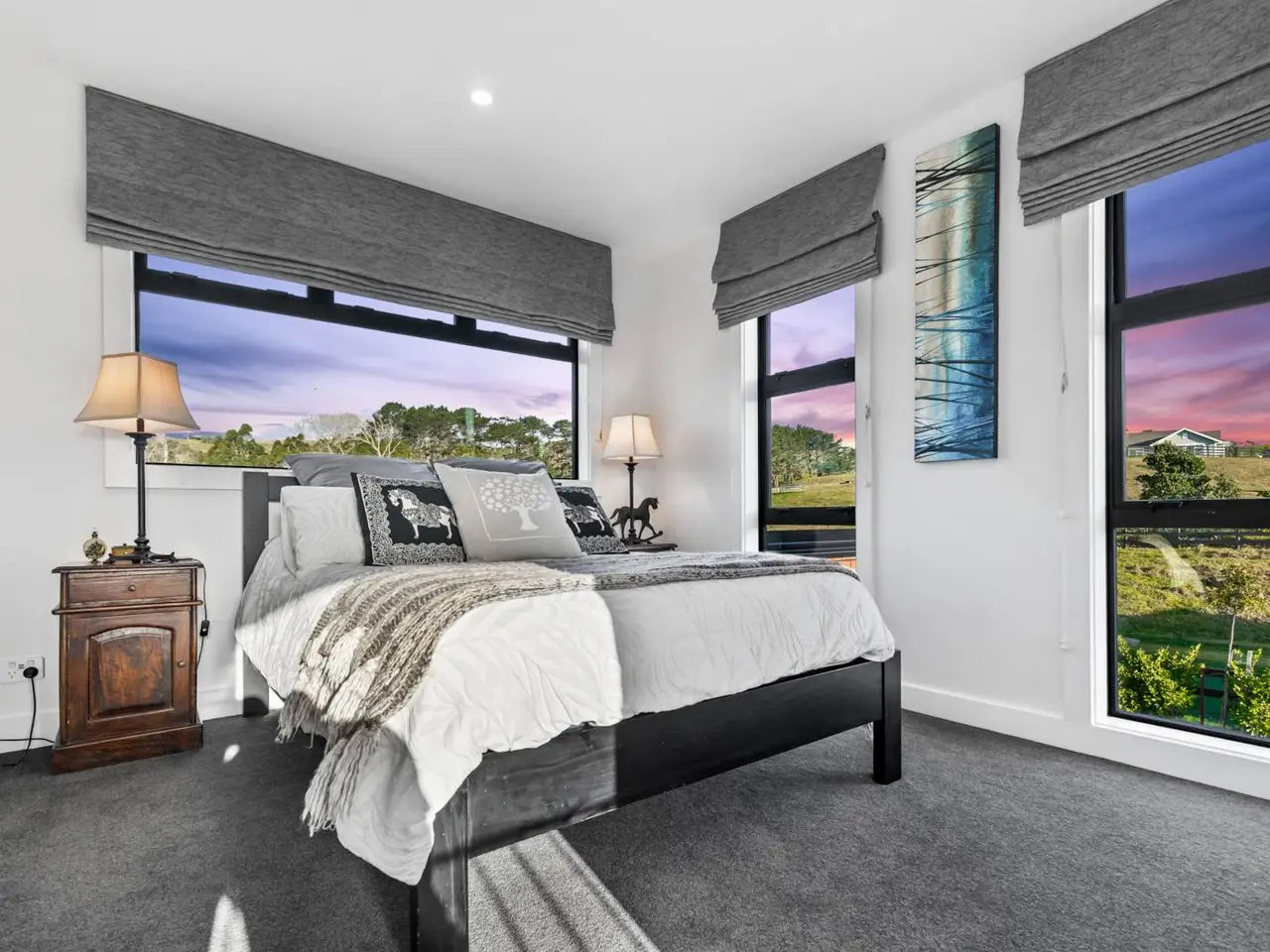 Set on just over one hectare of manicured grounds, this architecturally designed residence offers the ultimate in luxury living, privacy, and rural elegance in one of Waimauku’s most exclusive addresses.Every detail of this bespoke home has been thoughtfully crafted, from the stunning oak cabinetry and in-floor wine well in the designer kitchen and full butler’s pantry, to the ambient feature lighting and hotel-style bathrooms that exude sophistication.The home offers three expansive bedrooms, including a master retreat with separate his and hers walk-in robes and a luxurious ensuite. Two living spaces provide comfort and functionality — a media room with built-in electric fireplace, and a lounge featuring a sumptuous statement fireplace, perfect for cosy evenings.Climate control is effortless with zoned air conditioning across both levels, including the dedicated home office with separate controls — ideal for remote work or study.Step outside into an entertainer’s dream: a beautifully appointed outdoor area complete with a custom Trendz fireplace, sparkling swimming pool, spa, and a fully-equipped pool house with kitchenette and bathroom — perfect for hosting or relaxing in private luxury.The expansive barn adds further versatility, offering a self-contained studio ideal for extended family or guests, along with three stables and a wash bay — a rare find for equestrian or lifestyle enthusiasts.Framed by long rural views and nestled in an elite enclave, this is a rare opportunity to secure a lifestyle of unparalleled quality and comfort.Enquire now to experience Waimauku’s finest. #Lovewhereyoulive Deadline sale: Closes on Wednesday 8 October 2025 at 2:00PM (unless sold prior)