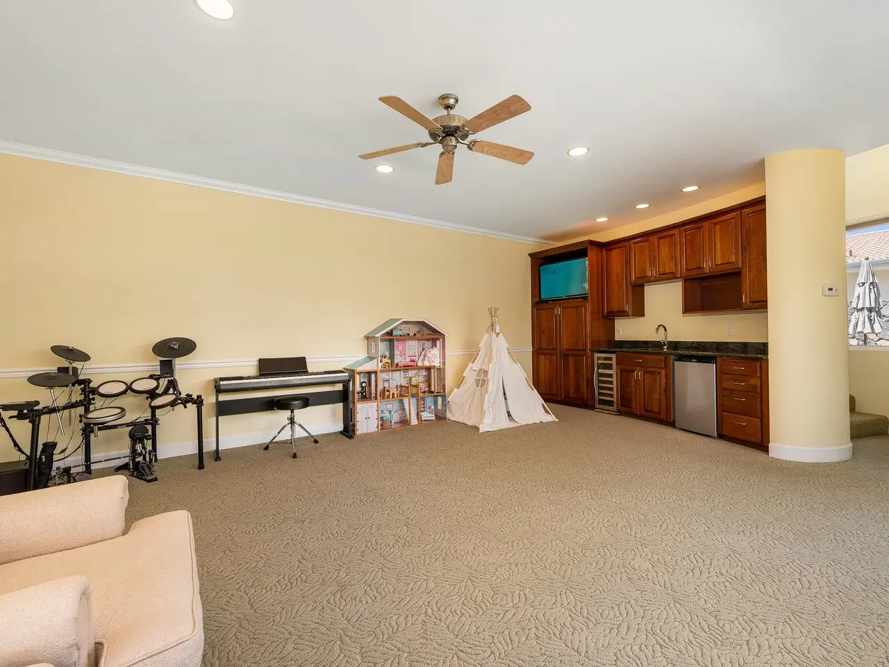 Wet bar with under-counter fridge