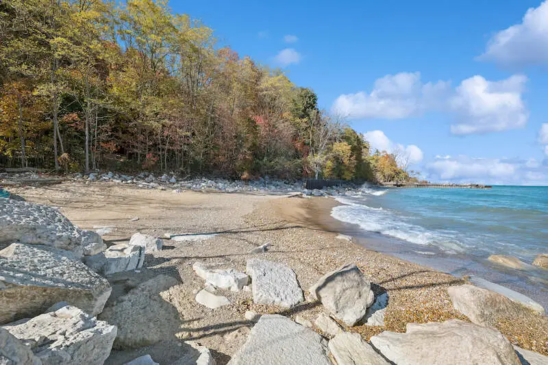 Rare opportunity to own this beautiful lakefront home on almost 4 acres w/ 300' of Lake Michigan shoreline on coveted Mayflower Road. Located down a tree-lined driveway at the end of a private lane, this stately brick home was built in 1914 and features 7 bedrooms, 6.1 bathrooms, 6 fireplaces, original millwork, high ceilings, a gourmet kitchen, an elevator, a newer slate roof, and wonderful vintage details throughout. On the 1st floor, you'll find a large library w/ built-in shelving, a wood-burning fireplace, beautiful trim & millwork, and wonderful character. The family room overlooks Lake Michigan and contains three walls of floor to ceiling windows allowing for amazing views all year long. The spacious kitchen features commercial grade appliances, a Butler's Pantry, Storage Pantry, an island, and plenty of storage & prep space. On the 2nd floor, the large Primary Suite contains a bedroom w/ wood-burning fireplace and views of the lake, a huge dressing room w/ abundant closet space, built-in dressers, vanity table, & shelving and a spacious primary bathroom with a separate tub, shower and commode room. Three additional bedrooms, an office, a meditation room, a large linen room, and a sitting room that contains the elevator complete this level. The 3rd floor has 3 large bedrooms, 2 full bathrooms, and a game room. The unfinished basement has lots of dry storage space and can be finished out to create even more wonderful amenities (theater room, wine cellar, play space, etc.). Outside, the expansive side yard is perfect for outdoor entertaining, games, or special events. Two stone terraces provide additional space for entertaining and enjoying the stunning scenery. A stone staircase w/ handrail leads down to the lake while passing through a lovely gazebo w/ seating down by the beach. This beautiful home also has a slate roof (2003) newer mechanicals, and professional landscaping. Don't miss this opportunity to enjoy lakefront living in this amazing private setting w/ an incredible beachfront!