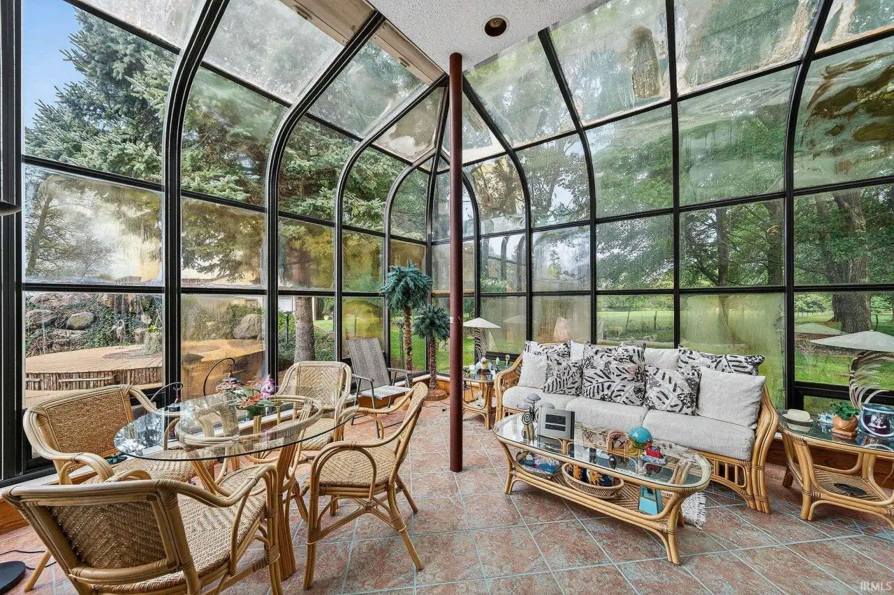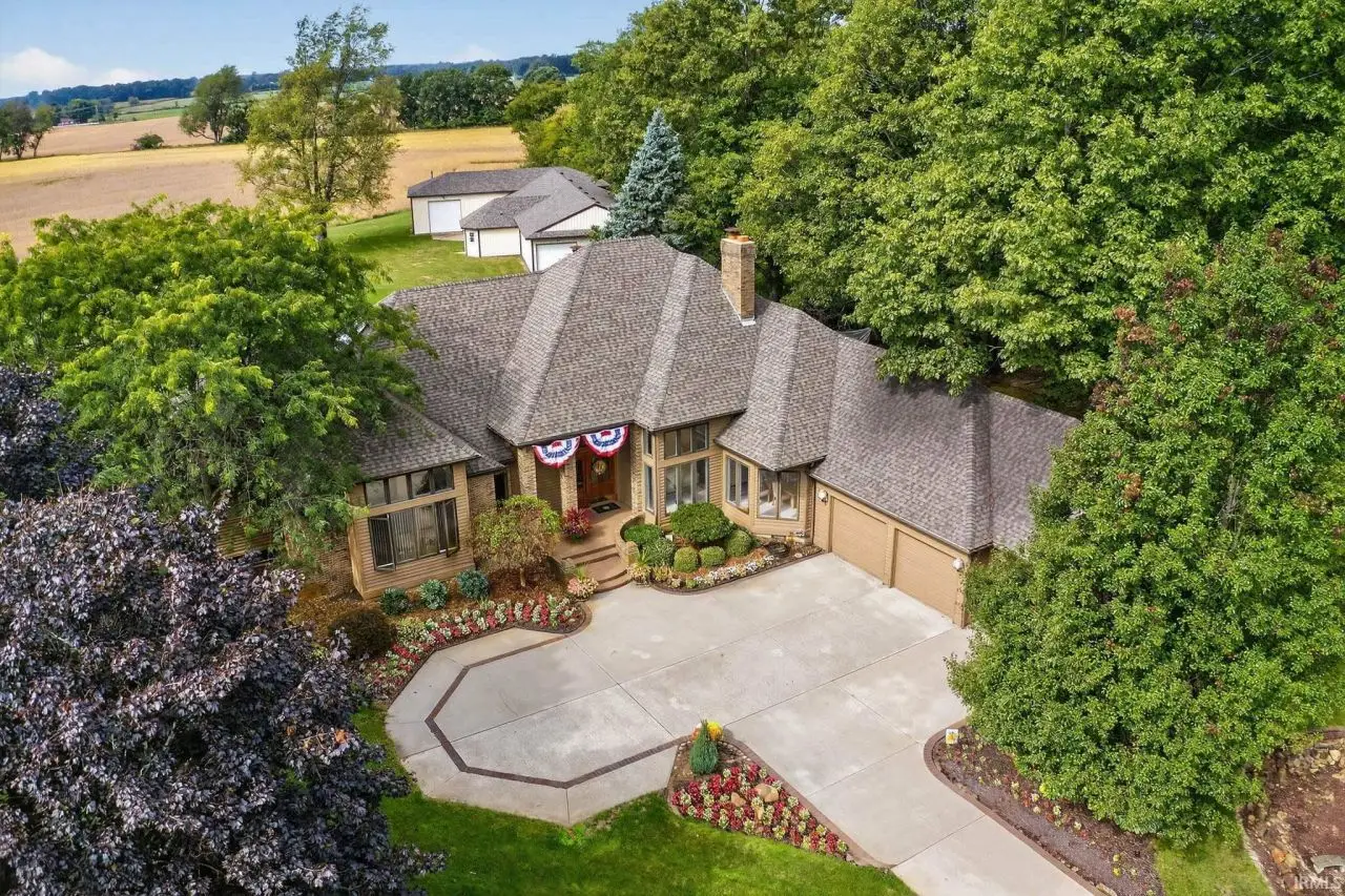 Spectacular Custom Estate on 10 Acres | 4 Bed | 3.5 Bath | 5,500 Sq Ft Welcome to an extraordinary one-of-a-kind custom home that blends luxury, craftsmanship, and natural beauty. Nestled on 10 pristine acres, this stunning 5,500 sq ft residence is a true architectural gem with rounded walls throughout?no corners?creating a fluid, organic feel in every space. Step into the grand foyer, where a beautiful chandelier sets the tone for this uniquely designed home. The open-concept living areas are anchored by three fireplaces, including a dual-sided glass electric fireplace in the lower level. Enjoy serene views year-round from the sun-drenched solarium, or unwind on the massive back deck, complete with a tranquil fish pond, waterfall, and retractable awning. The all-cedar exterior, freshly stained in 2024, exudes warmth and timelss appeal. Inside, the chef's kitchen features custom cabinetry, built-in appliances, and a dramatic octagon overhead skylight. Retreat to the luxurious primary suite with tray ceilings, a spa-like bath featuring a jetted Jacuzzi tub, oversized glass walk-in shower, and generous walk-in closet. Downstairs, the fully finished lower level is a showpiece, showcasing handcrafted cherry and zebra wood finishes, a curved 4-seat custom bar, cherry-trimmed ceilings, a wall-to-wall entertainment center, and built-in shelving. Custom gas fireplace. It's also plumbed for a second kitchen. Outside, a large outbuilding, used prior as a woodworking shop. features two 9-ft and one 12-ft overhead doors, gas furnace, and is plumbed for a bathroom Don't miss your chance to own this truly exceptional custom home, where quality and character shine through every detail. A rare find for those seeking space, style, and something utterly unforgettable.