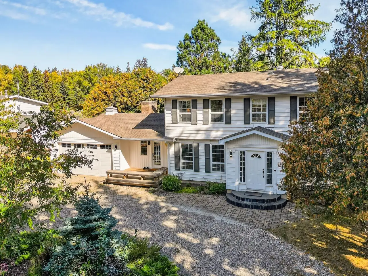 Prepare to fall in love with this quintessential family home, situated on a stunning acre lot backing a ravine, just minutes from every amenity. The romance starts at the roundabout driveway and timeless curb appeal, and the love story continues inside where nearly every inch has been thoughtfully updated. The main floor is ideal for both entertaining and busy family life with a grand living and dining room, powder room, modern kitchen, cozy family room, and dream mudroom with its own entrance. Step out from kitchen or family room onto the massive deck overlooking the park-like yard—perfect for large summer gatherings. Upstairs offers four spacious bedrooms, including a beautiful primary with 3pc ensuite and walk-in closet, plus a 5pc bath. The basement is ready for your chapter in the story. And the beauty is not just skin deep, you will appreciate the two-zone high-velocity furnace with A/C, tankless hot water, and underground rainwater collection/ irrigation system. Cupid approves!