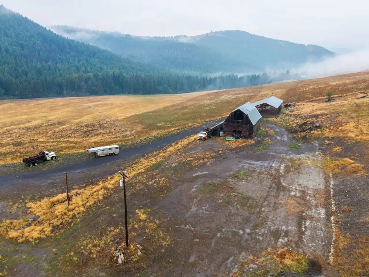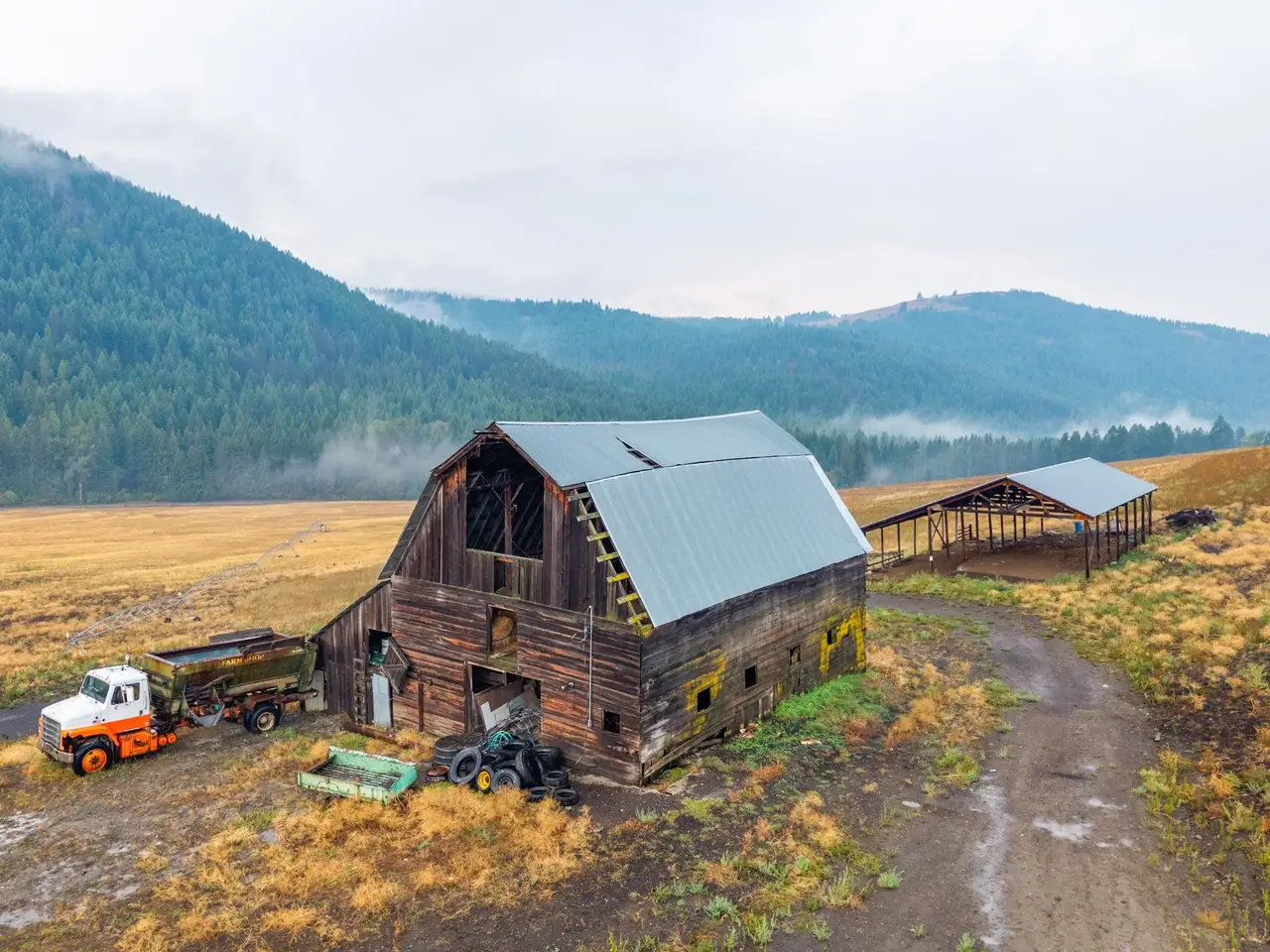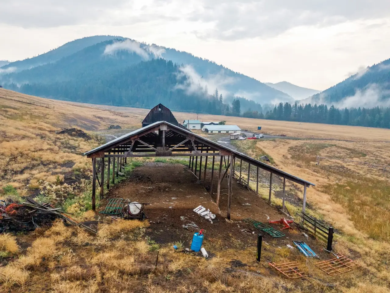 Near the quiet community of Danville in Ferry County, this 576+ acre ranch spans 8 parcels and offers scale, secure water, irrigated ground, and unmatched proximity to public lands. The property includes approximately 69 acres under circle irrigation and 19 acres under hand line irrigation with water rights. Improvements feature a 1996 manufactured home, 80'x60' barn, 50'x30' barn, 65'x30' storage shed, and 30'x40' detached garage (all measurements are approximate). Multiple parcels are adjacent to the Colville National Forest, over 400,000 acres of pristine public land. Set among the stunning backdrop of Northeast Washington's Kettle River Range with access to abundant wildlife, this ranch combines operational use with future opportunity for expansion or investment in a region known for its natural beauty and privacy.