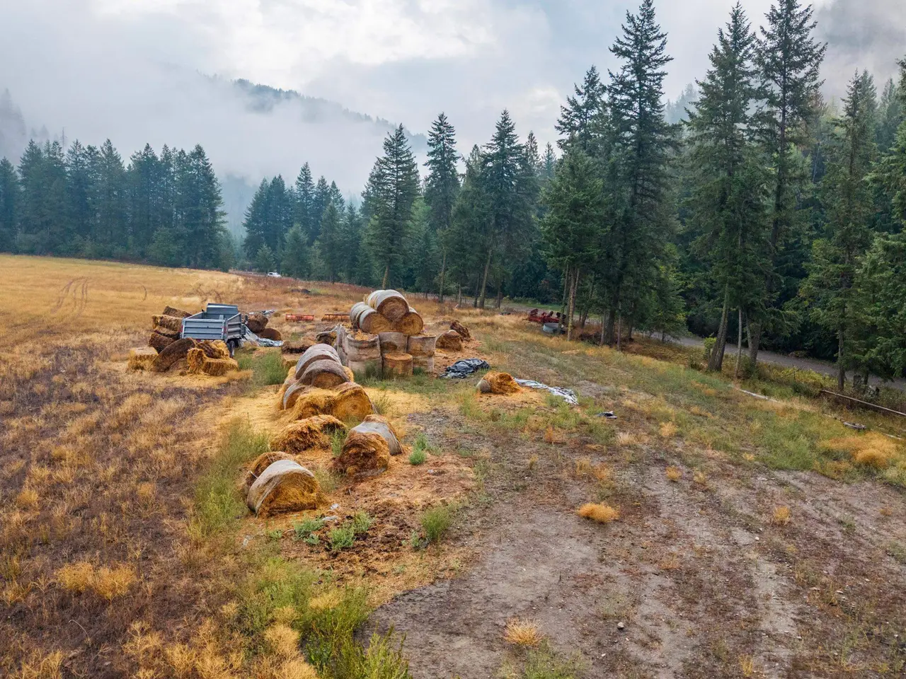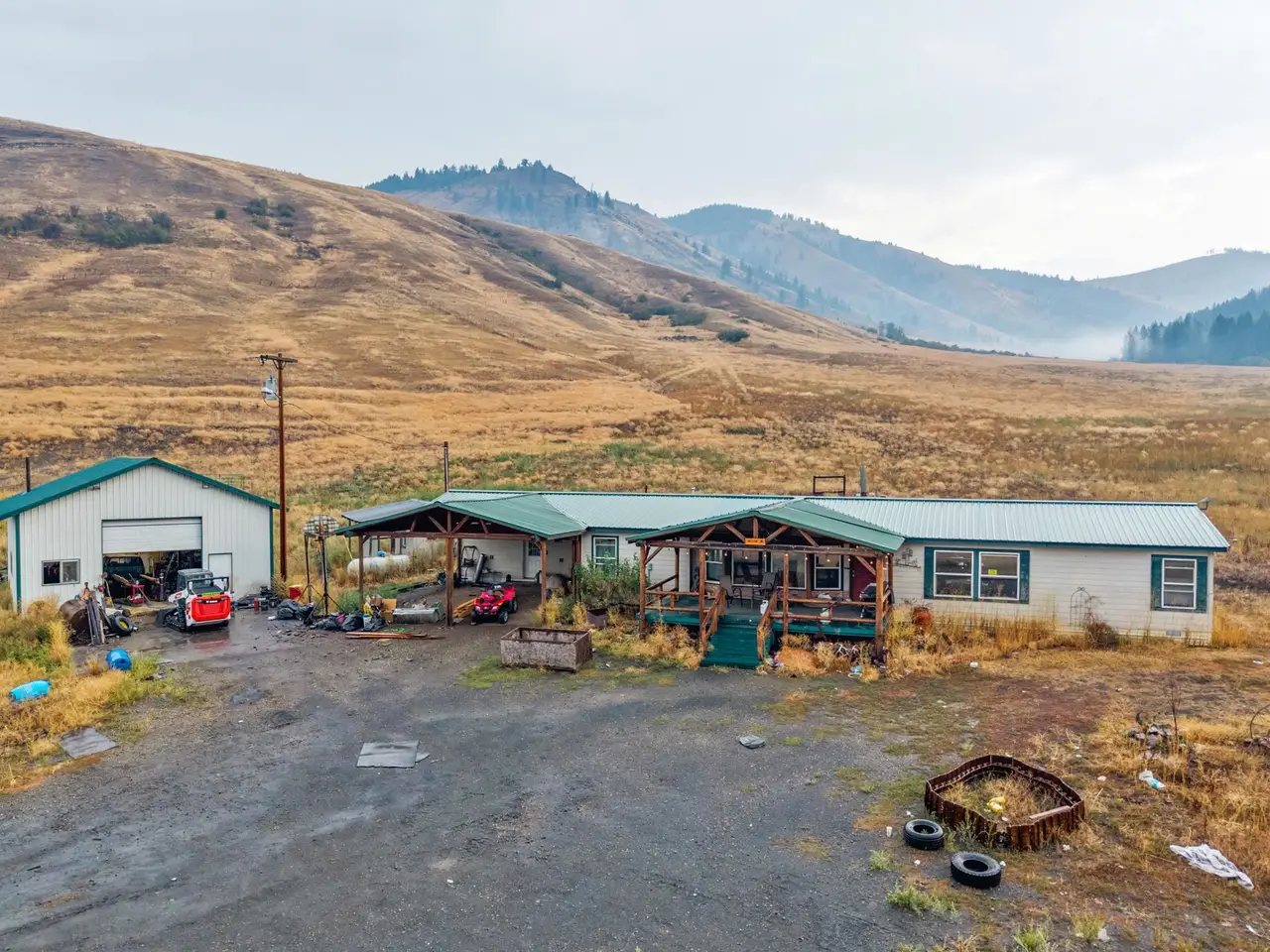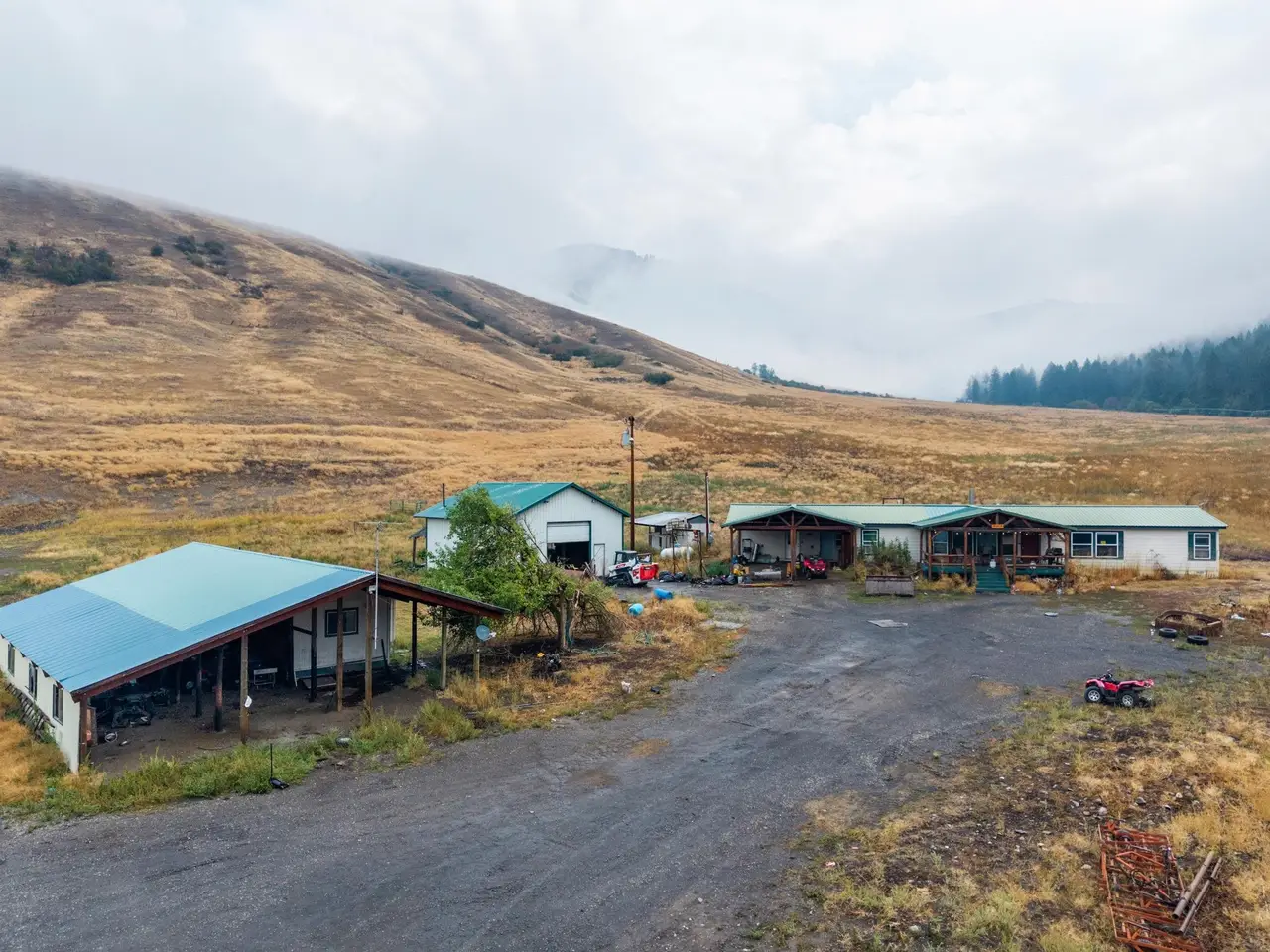 Near the quiet community of Danville in Ferry County, this 576+ acre ranch spans 8 parcels and offers scale, secure water, irrigated ground, and unmatched proximity to public lands. The property includes approximately 69 acres under circle irrigation and 19 acres under hand line irrigation with water rights. Improvements feature a 1996 manufactured home, 80'x60' barn, 50'x30' barn, 65'x30' storage shed, and 30'x40' detached garage (all measurements are approximate). Multiple parcels are adjacent to the Colville National Forest, over 400,000 acres of pristine public land. Set among the stunning backdrop of Northeast Washington's Kettle River Range with access to abundant wildlife, this ranch combines operational use with future opportunity for expansion or investment in a region known for its natural beauty and privacy.