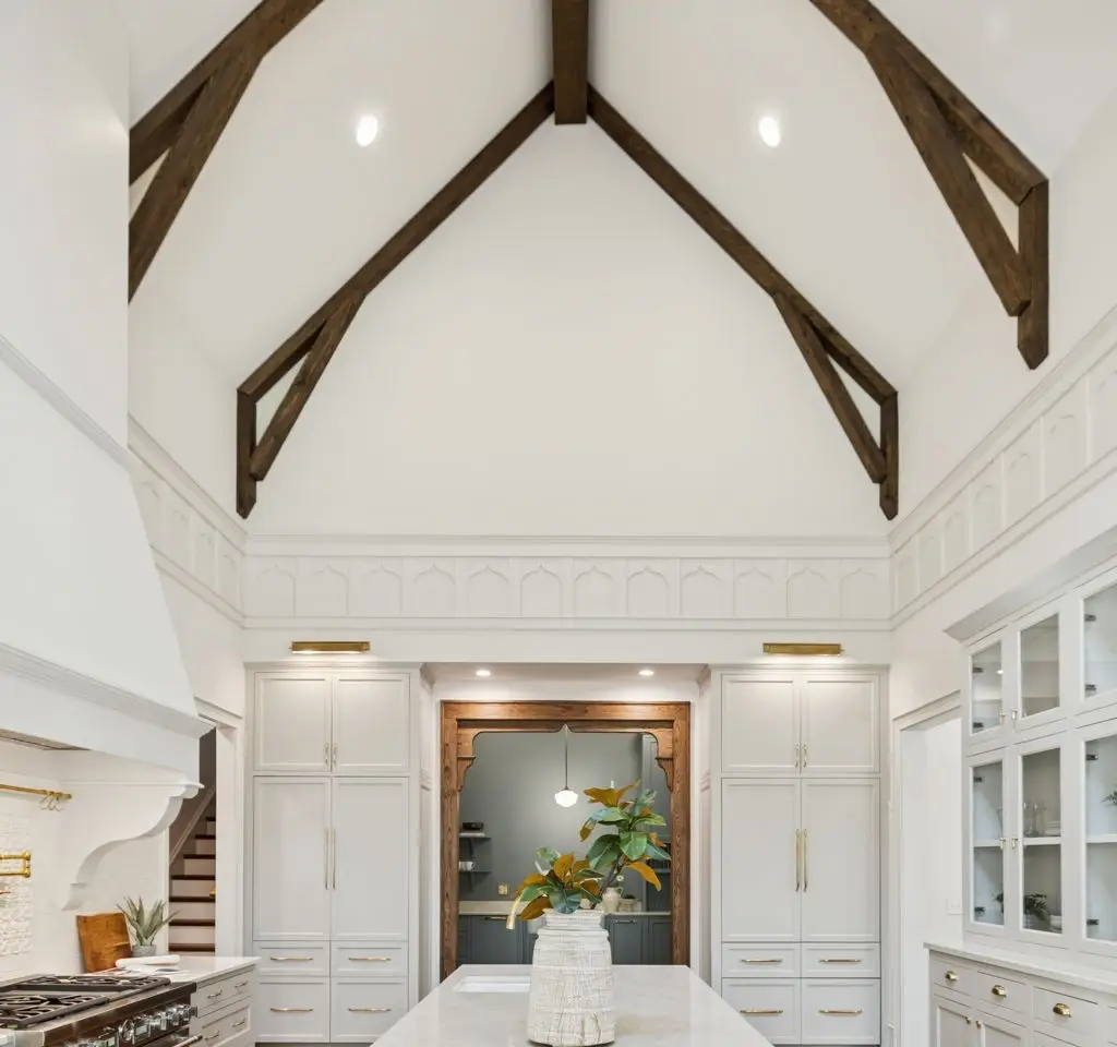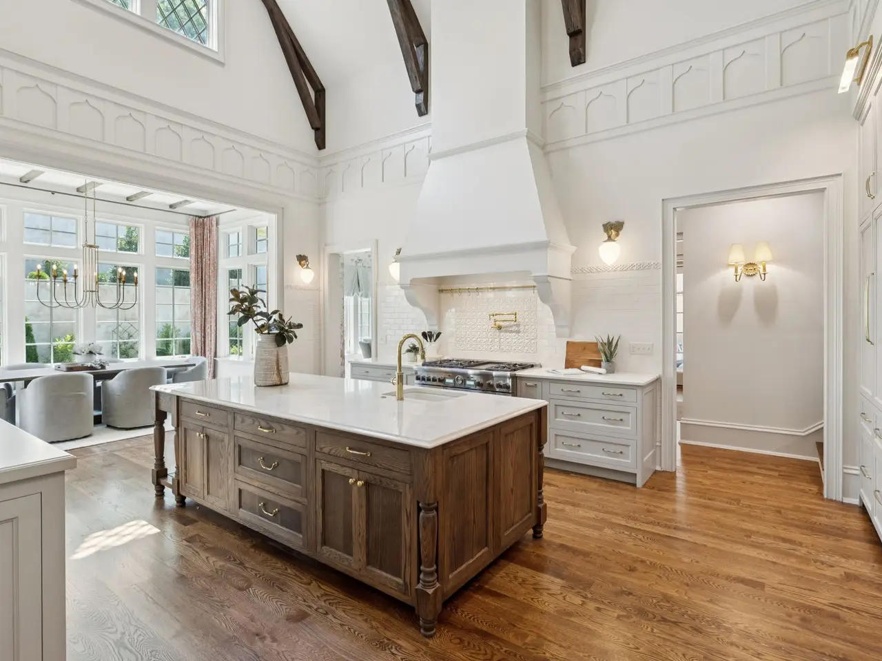 • Vaulted kitchen with exposed beams and top-of-the-line appliances