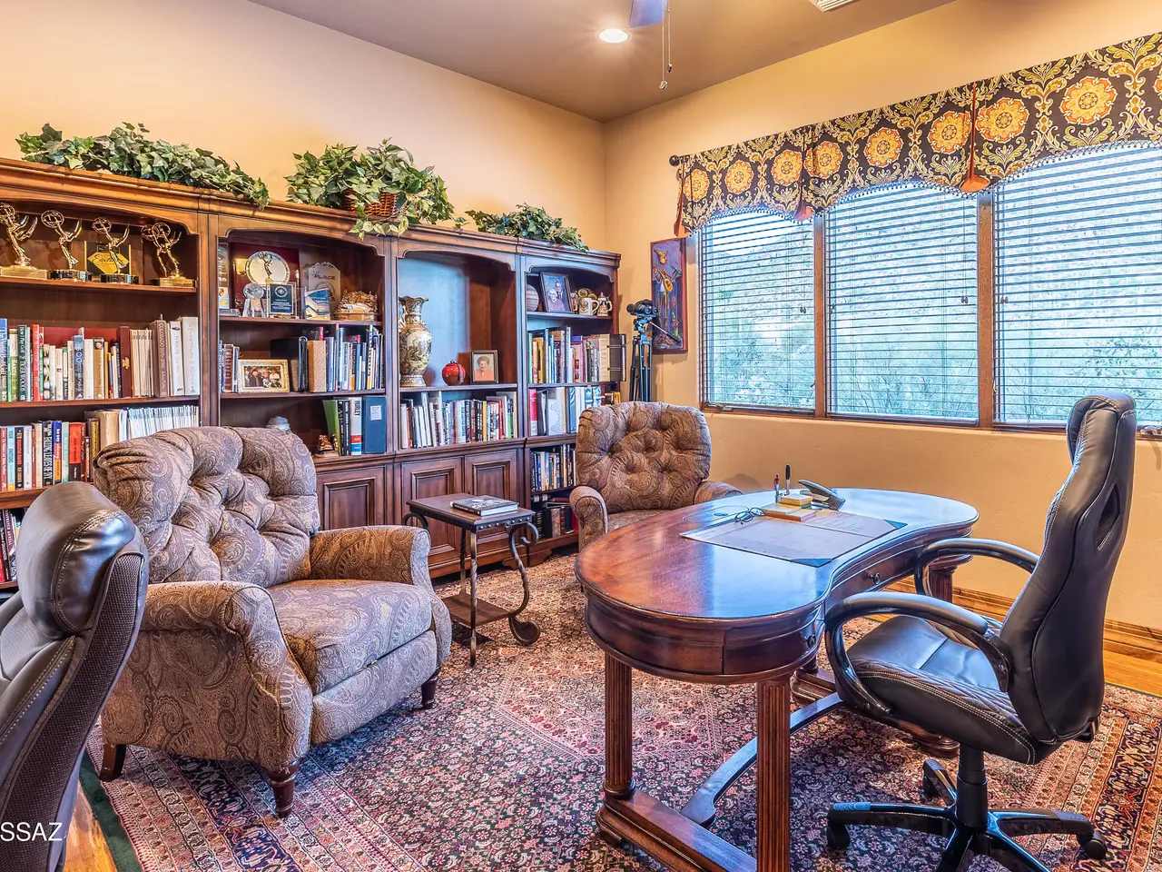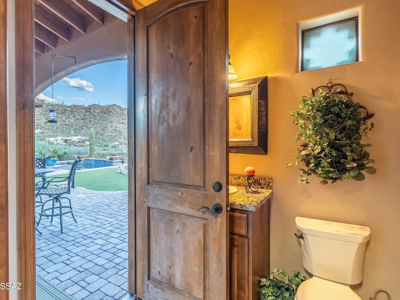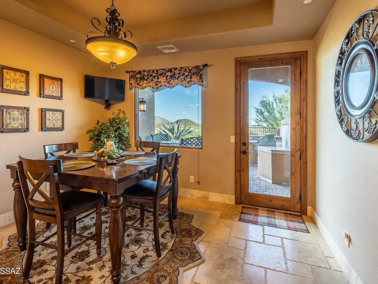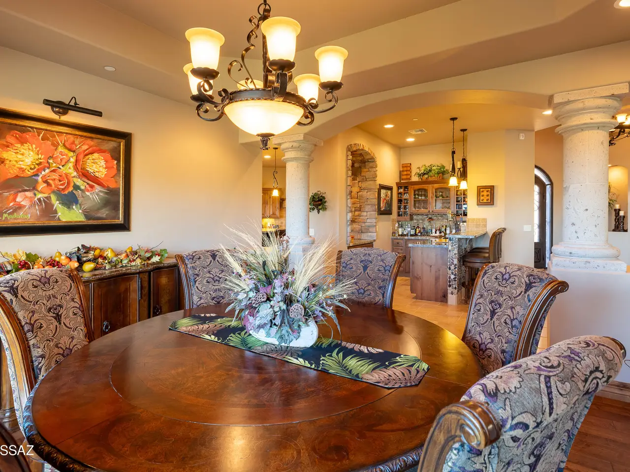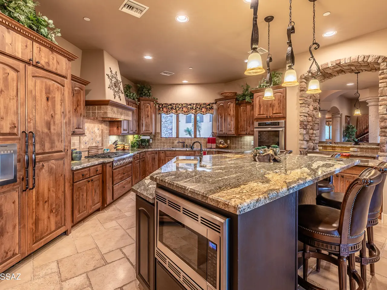 Extraordinary custom Canyon Pass home- exquisite craftsmanship that offers comfortable luxury living. Grand great room concept living - each window highlights a beautiful view. This residence is surrounded by the beauty of the Tortolita & Catalina Mountains, mesmerizing city lights, sunset glows and beautiful morning sunrises. Sprawling porch/patio sitting areas - relax in the glow of the majestic under porch fireplace, enjoy the relaxing pool, host a BBQ, hypnotize yourself in the city lights. Single story - no steps. Fabulous garage - great for car collectors. 3 beautiful fireplaces - great room, primary bedroom, under porch. If you love cooking you'll love this gourmet kitchen - and the adjoining entertainers bar has old world charm. All bedrooms are oversized w/private baths.