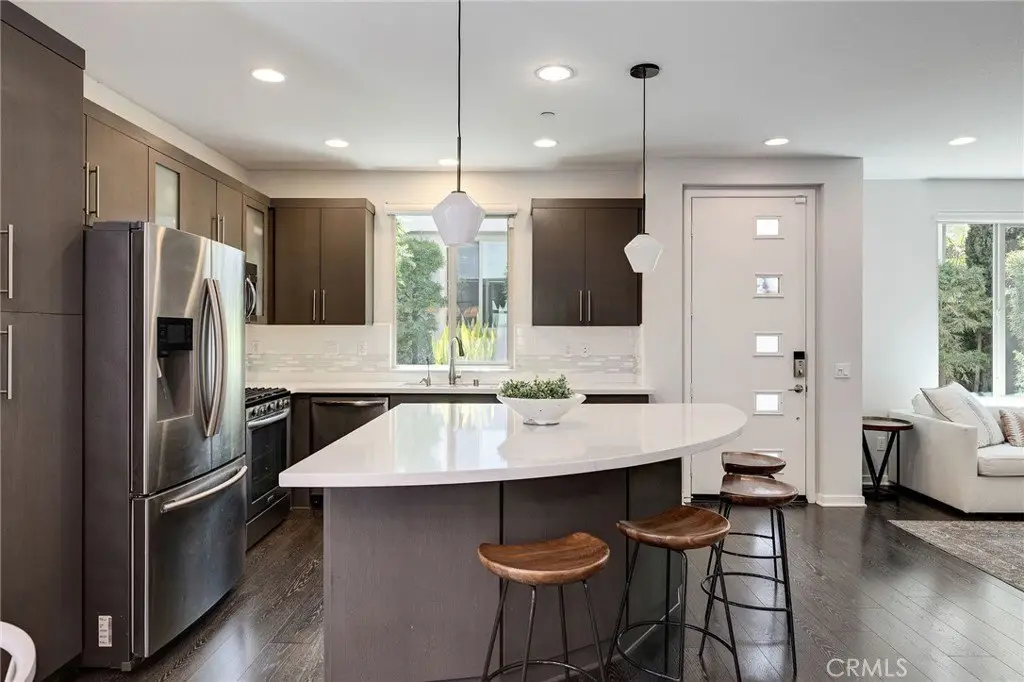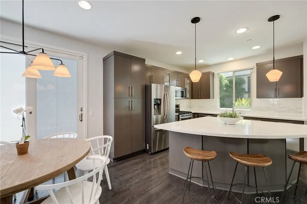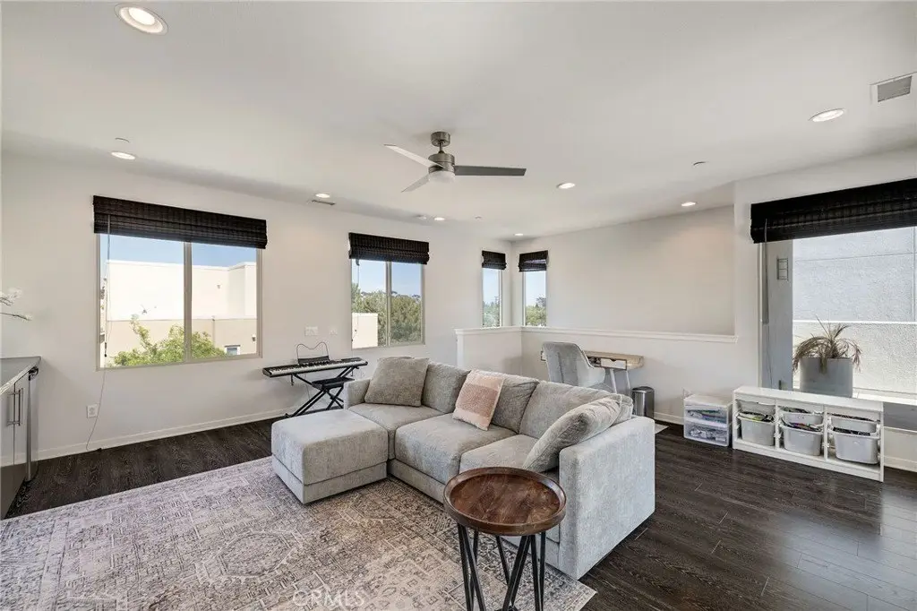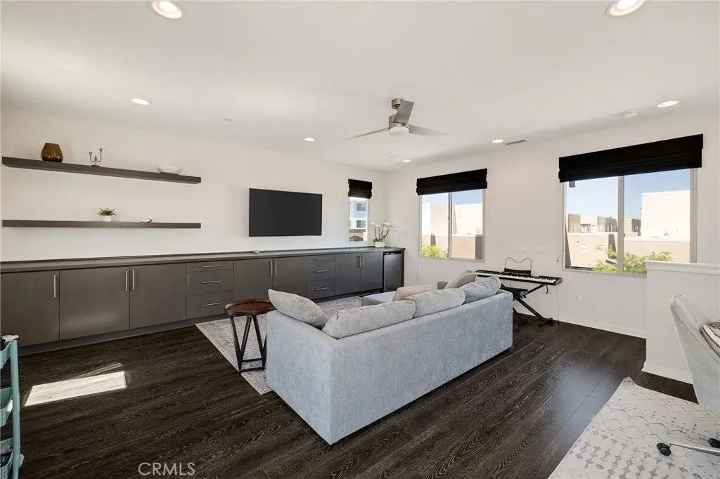 Enjoy a refined modern lifestyle in the prestigious gated community of ThreeSixty South Bay. This detached Terrace home offers privacy with no shared walls, low HOA dues and a thoughtfully designed layout suited for both everyday living and entertaining. Step into the open living area bathed in natural light seamlessly connected to a stylish kitchen featuring flat-front cabinetry, quartz countertops, stainless steel appliances and a spacious center island perfect for daily meals or gatherings with friends. The dining area opens to a secluded, south-facing patio, just the spot for a bistro set or container garden. A guest powder room and direct access to the attached two car garage with storage complete the first floor. Upstairs, all three bedrooms are located on the second level, along with a versatile landing area currently utilized as a home office. The primary suite features a walk-in closet with custom built-ins and a dedicated contemporary bathroom with dual sinks, while two additional bedrooms share a full Jack-and-Jill bathroom. The laundry room is conveniently situated nearby. The third floor offers an airy media room or secondary living area with a soaring ceiling, abundant built-in cabinetry, a bar top and a beverage fridge - perfect for movie nights, working from home or simply relaxing. A wall of windows opens to a generous deck that extends indoor comfort into an inviting outdoor setting. True to its Terrace namesake, this standout space captures the essence of elevated South Bay style. Additional highlights include central air conditioning, a nest thermostat, reverse osmosis water filtration and a smart security system. As a ThreeSixty South Bay resident, you’ll enjoy access to five star resort-style amenities including two pools with cabanas, a full gym, sports courts, dog parks, a playground and a clubhouse set within a secured community located in the top rated Wiseburn School District. All of this, minutes from LAX, the beach, major freeways, shops and restaurants. The perfect place to call home just in time for summer!