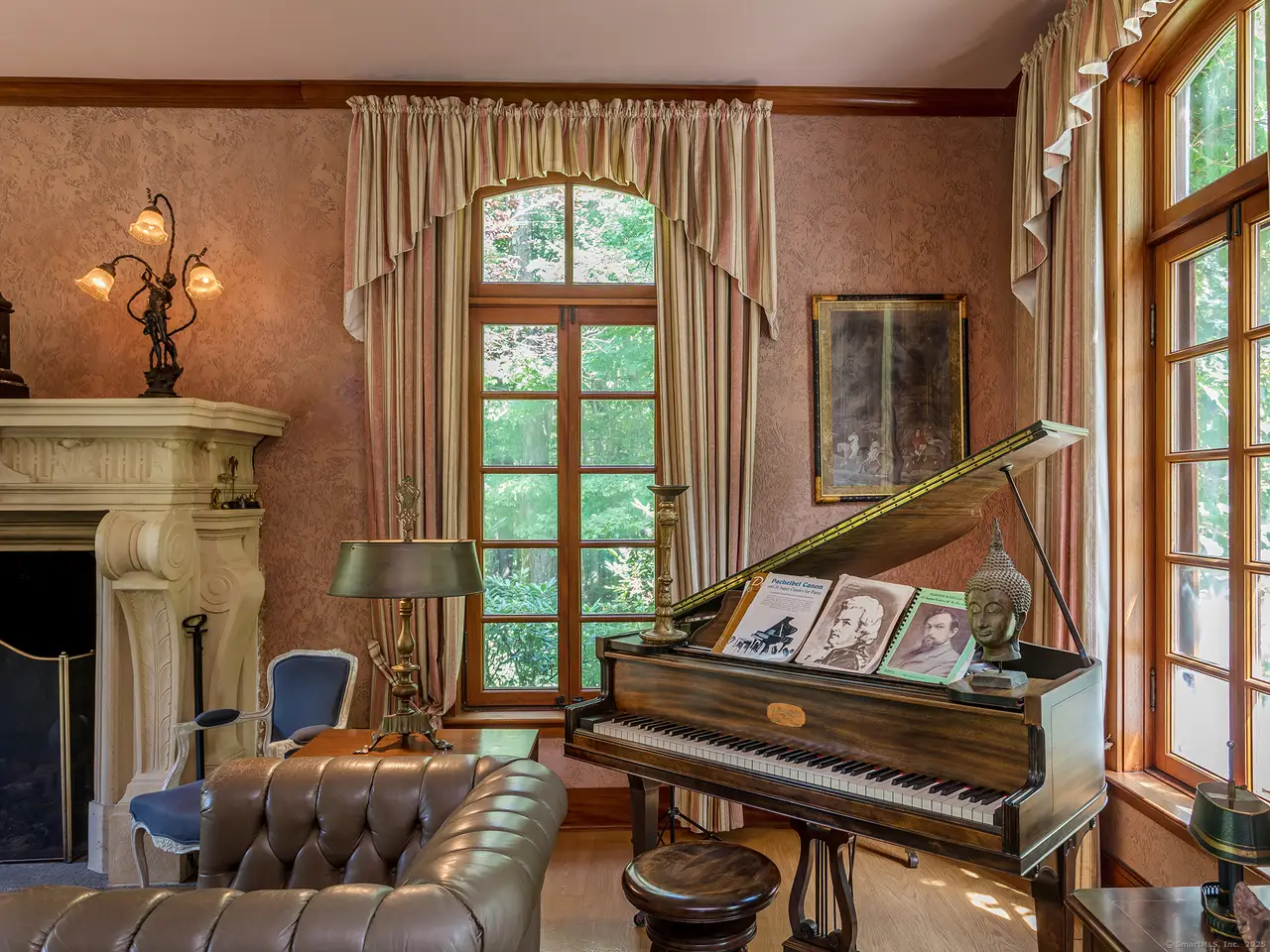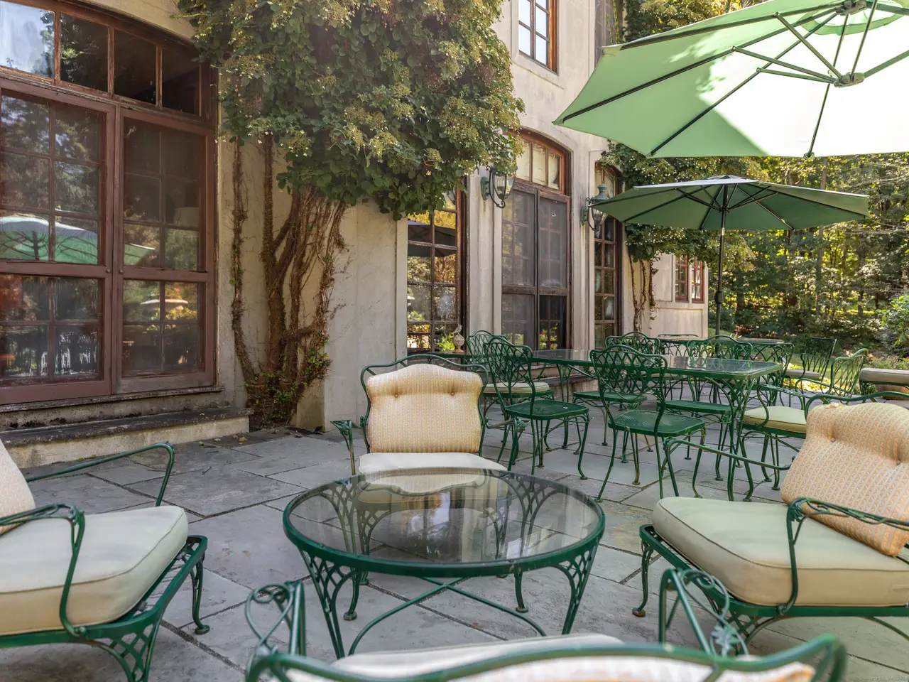 Perfect country home impressively set in private location abutting White Memorial land trust and vineyard. Designed with impeccable taste and style and built of the highest quality and standards. In keeping with its romantic European style, the home boasts lofty ceilings, marble floors, french doors, limestone fireplaces and mahogany millwork throughout. Perfect for entertaining as dining and living spaces open onto stone terrace with western views and overlooking pond and grounds. Established gardens, ivy clad walls and old world stone work. Chef's kitchen with room for eat-in country table. Stainless steel countertops and professional grade appliances. Master suite with beautifully crafted built-ins. Well appointed master bath with marble throughout. Major feature includes a newly built 1 bedroom attached in-law apartment that can be rented. One owner, very well maintained and exactly one mile from the Litchfield town Green. Perfect for full time OR weekends. Co-agent related to owner.