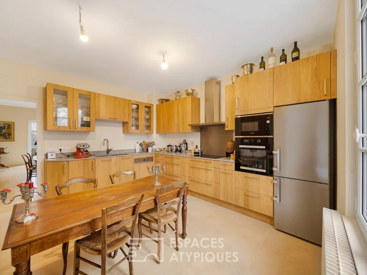 Located at the gates of Beaune, this house from the 60s has benefited from a perfect renovation. It offers bright and functional main living spaces, complemented by a wellness area including a jacuzzi, hammam and sauna. Largely renovated, the house is built around a large majestic entrance hall, serving a beautiful kitchen, a large living space facing due south and a master suite. The fitted and equipped kitchen, recently renovated, will delight cooking enthusiasts: the wooden layout makes it warm. The living rooms and dining room have direct access to the south-facing terrace: the fireplace is ideal for long winter evenings. The ground floor presents a final surprise with a complete relaxation area including a sauna, a hammam and a jacuzzi, all with a green view of the garden. An office with a separate entrance will be a major asset in the case of a liberal profession, or self-employed. The first floor is divided into four bedrooms and an office: one of the bedrooms has its own bathroom while another bathroom completes this family floor. The basement has several spaces: a workshop, two parking spaces, two cellars, and a laundry room. An independent guest house overlooking the main courtyard will allow you to receive family and friends in complete peace. The garden and the swimming pool have optimal exposure. Additional information * 11 rooms * 5 bedrooms * 1 floor in the building * Outdoor space : 2662 SQM * Property tax : 4 000 € Energy Performance Certificate Primary energy consumption d : 175 kWh/m2.an High performance housing