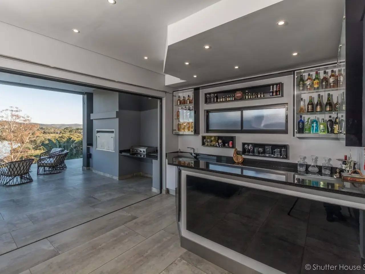 New Release! Exclusive Riverside Masterpiece GÇô Modern Luxury Meets Tranquil Living Experience the perfect fusion of elegance, innovation, and natural beauty in this extraordinary double-story residence, perfectly positioned to capture sweeping river views. From the moment you step through the striking glass entrance, youGÇÖre greeted by expansive, sunlit living spaces that effortlessly balance comfort and sophistication GÇö ideal for both relaxed family living and impressive entertaining. The gourmet kitchen is a chefGÇÖs dream, showcasing top-of-the-line Siemens and Bosch appliances, sleek Niemann Acrylux cabinetry, and premium finishes throughout. Step outside to the ultimate entertainment haven, featuring a built-in braai and a stunning rim-flow pool overlooking the river. The luxurious main ensuite provides a serene private retreat with panoramic views, complemented by four additional designer bedrooms, a cozy pajama lounge, and five elegantly appointed bathrooms. Cutting-edge features include: Security: 13-camera surveillance and smart alarm system Connectivity: High-speed Wi-Fi and Cat6 networking Sustainability: 15 kVA solar system with lithium storage Efficiency: LED lighting, climate control, and premium insulation Entertainment: Fully integrated home theatre system This rare riverside retreat redefines modern luxury GÇö a sanctuary where architectural brilliance meets effortless living.