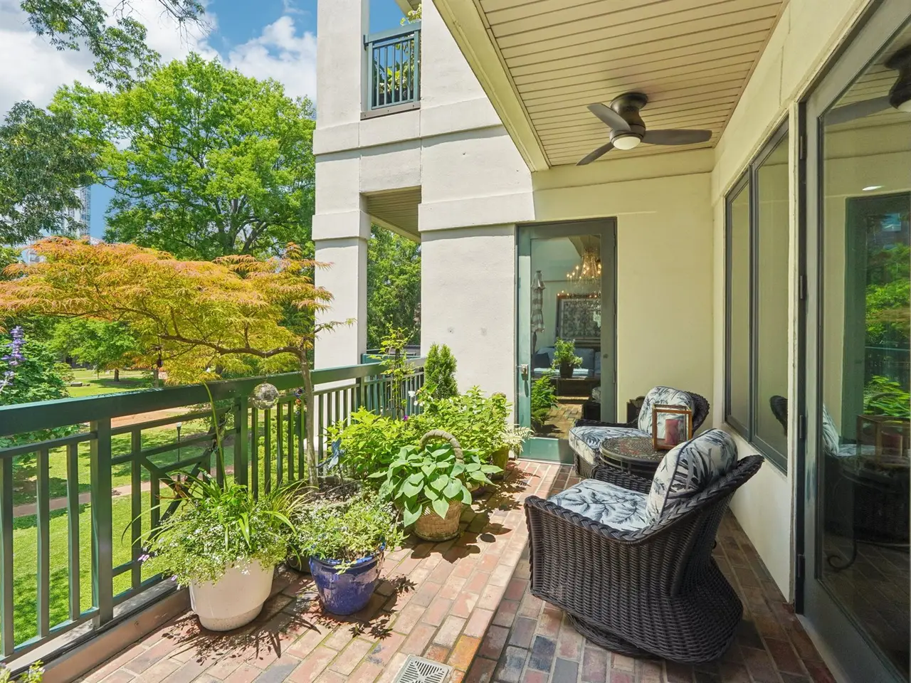 Discerning buyers who know this market just wait for one of these south facing homes to come on the market. Settlers Place is a 22 unit boutique community located in Historic 4th Ward overlooking the lush greenery and stately trees of Settlers Cemetery. 3 private patios offer a treehouse-like feel and skyline views. The home is refined, sophisticated and casually elegant. Many recent renovations show the quality and care these owners have invested here. From the expansive great room with coffered ceiling and room for a baby grand piano to the spacious owners suite, the rooms are all bright and look out to lush garden-scapes. The kitchen features Wolf gas cooking and a Sub-Zero refrigerator. Dramatic granite and every detail catches your eye. Conveniences include secure entry and parking, electric car charging and dedicated storage space on site. If you make this your home, you can take extended time away by just locking your door and heading out. You will always be happy to come back!