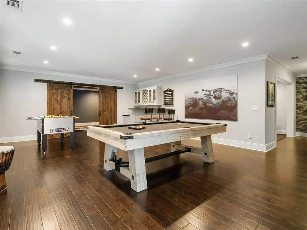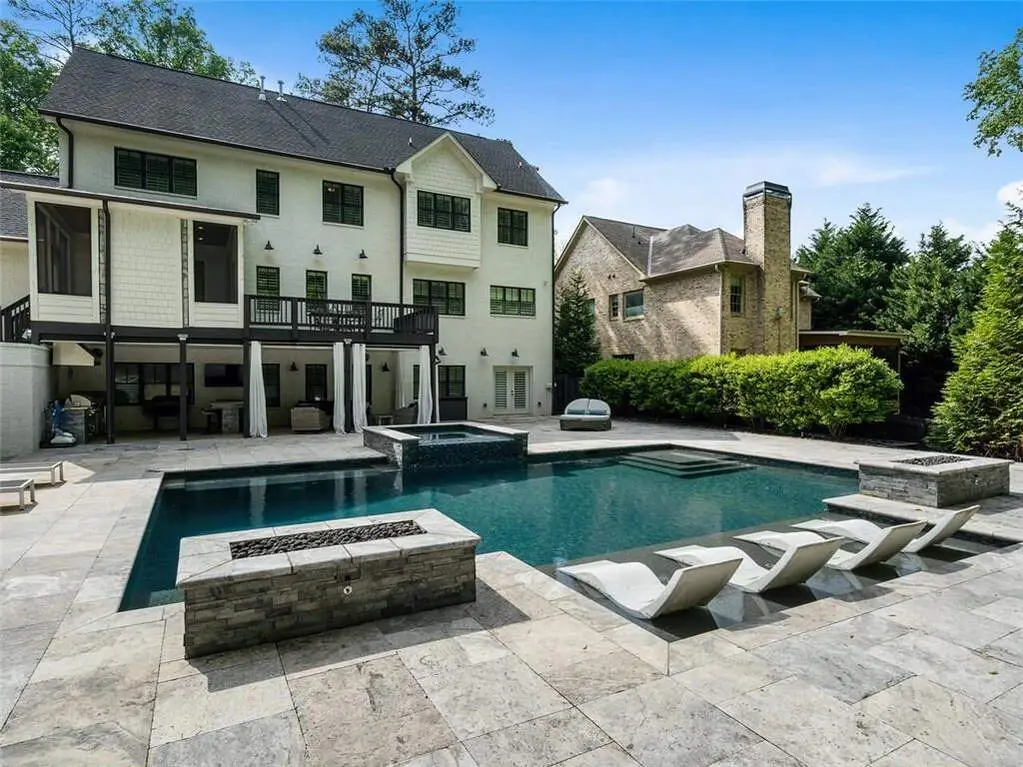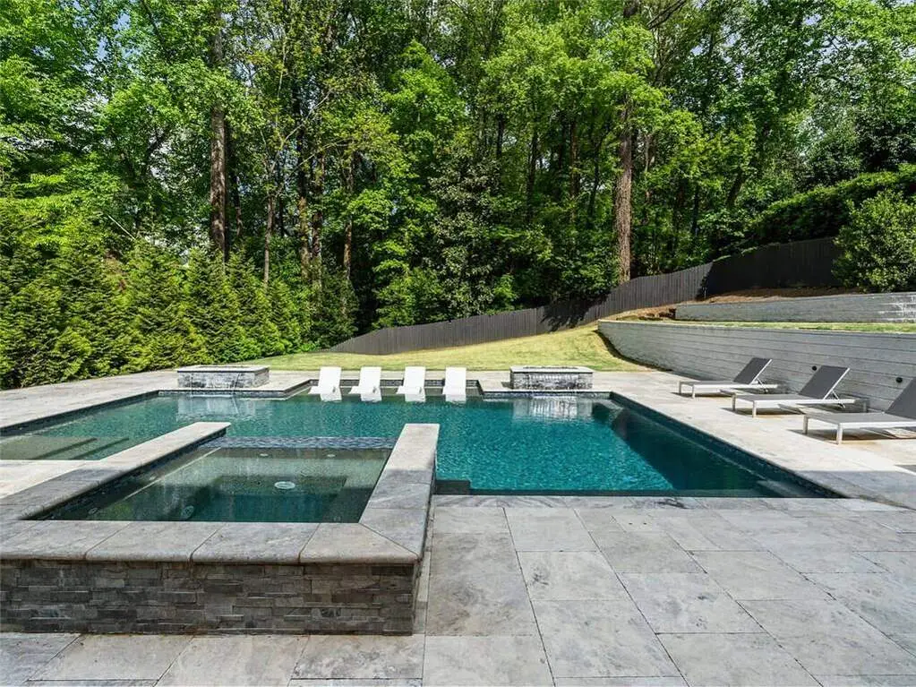 Situated on a level +/-1 acre lot in sought-after Sarah Smith School District, this thoughtfully designed home offers your own private oasis featuring a heated pool and spa with UV and ozone filtration, tanning ledge, and striking water and fire features perfect for year-round enjoyment. Inside, 10-foot ceilings and hardwood floors set a warm tone throughout. The chef's kitchen is equipped with an oversized island, marble countertops, Viking appliances, and a walk-in pantry, and it opens to a spacious living area and breakfast room. A screened patio with outdoor fireplace and a deck extends the living space outdoors. The main level also includes a separate dining room with wet bar, a home office with French doors, and a guest suite. Upstairs, the primary suite features a marble bathroom with soaking tub, rain shower, double vanities, and an oversized walk-in closet. Three additional bedrooms, a laundry room, and a flexible bonus room round out the upper floor. The finished terrace level is built for entertaining, complete with a home theater, game room with bar, gym, mudroom and an additional bedroom and bath. Outside, an outdoor kitchen with travertine flooring overlooks the pool, surrounded by mature landscaping and a fenced yard. A 3-car garage and whole-house water filtration system add everyday convenience to this Buckhead home.