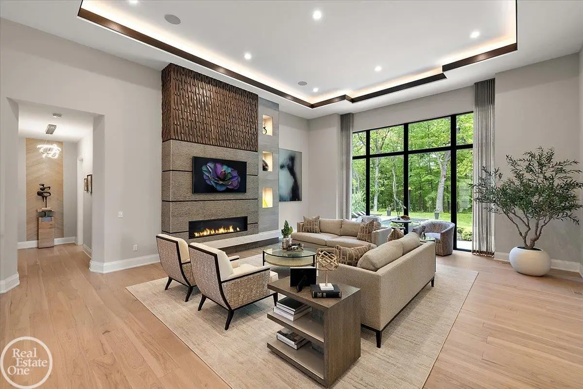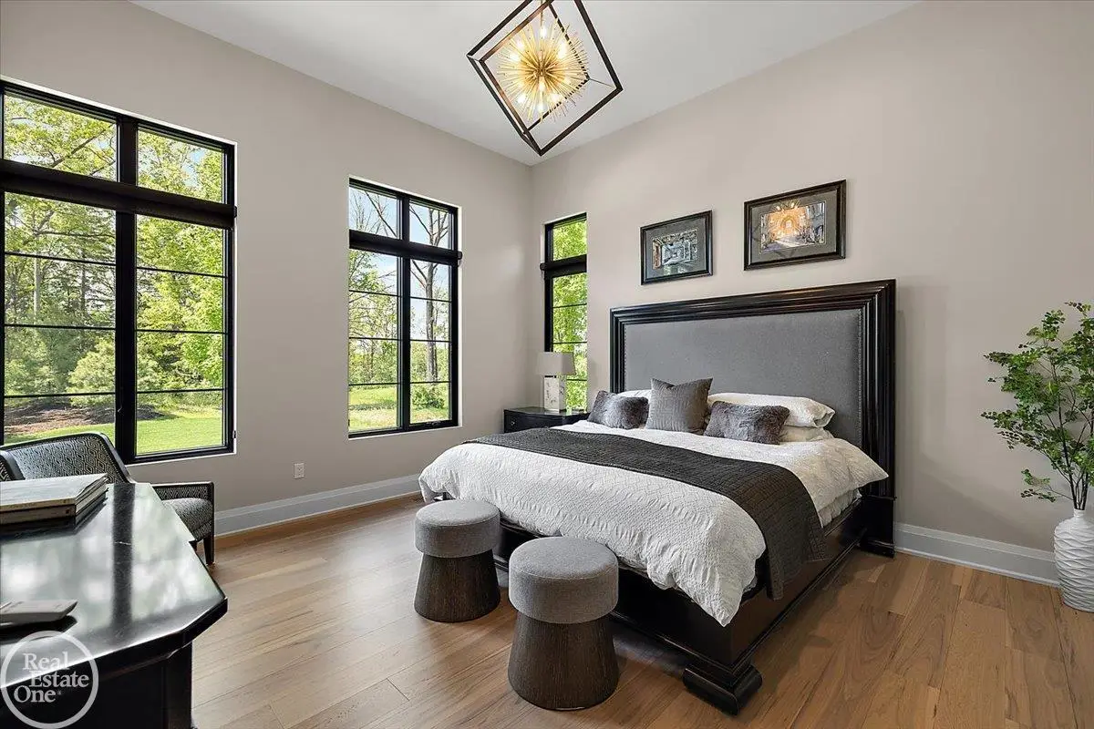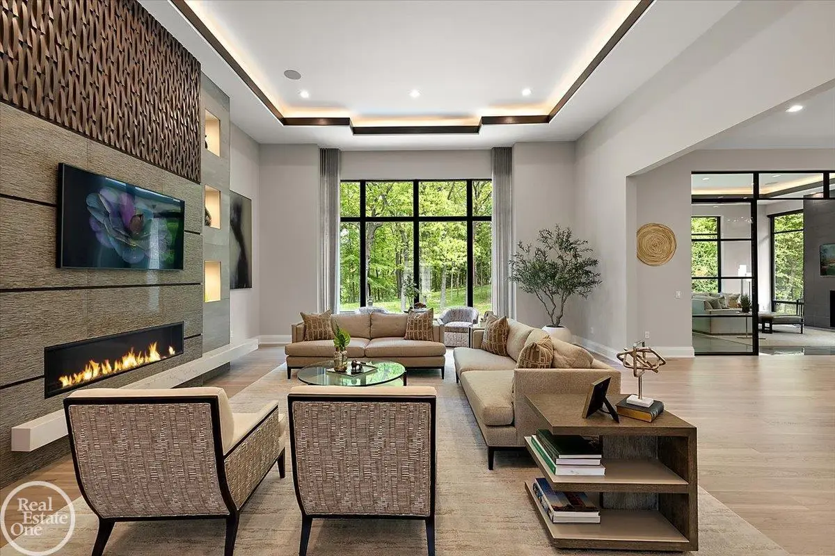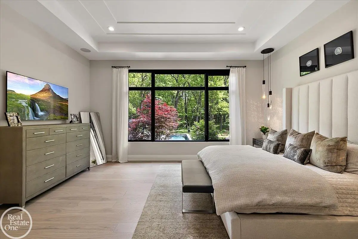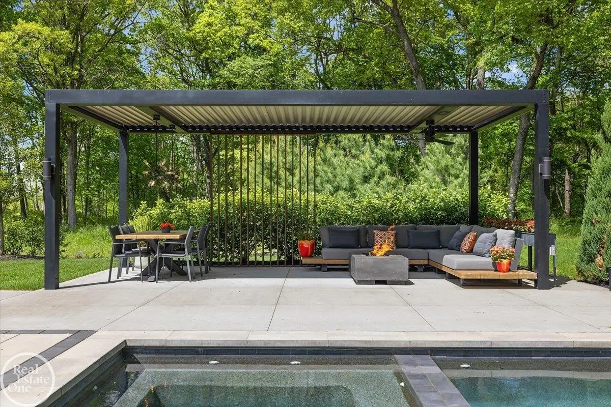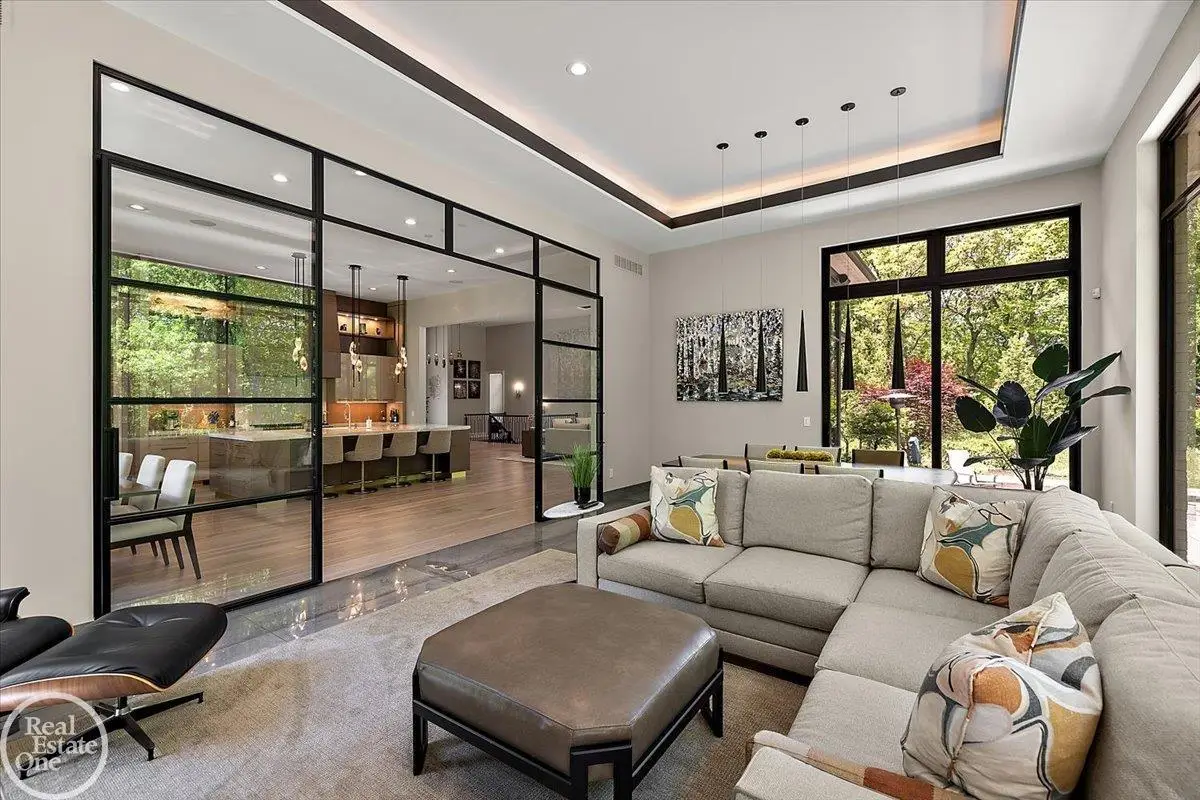 Experience unparalleled modern luxury in this custom-built 2021 Cranbrook masterpiece. Featured in Detroit Design Magazine, this home showcases exquisite interior design by Tutto Interiors, boasting the finest materials and craftsmanship throughout. Situated on 3 private wooded acres, this residence offers a serene escape with an urban edge. The open floor plan, highlighted by soaring 14-foot ceilings and expansive walls of windows, floods the home with natural light and breathtaking views. The gourmet kitchen, equipped with Thermador appliances, is an entertainer's dream. Relax in the stunning great room with its floating fireplace or unwind in the four-seasons glass room, featuring an industrial loft aesthetic and a natural fireplace. The primary suite offers a spa-like experience with a luxurious bath, steam shower, and dual walk-in closets, all overlooking the tranquil wooded landscape. The finished walk-out lower level leads to a 35x12 inground pool, complete with a custom pergola and firepit, perfect for outdoor gatherings.