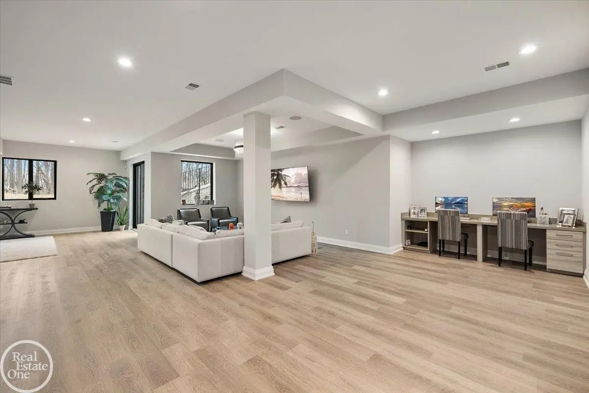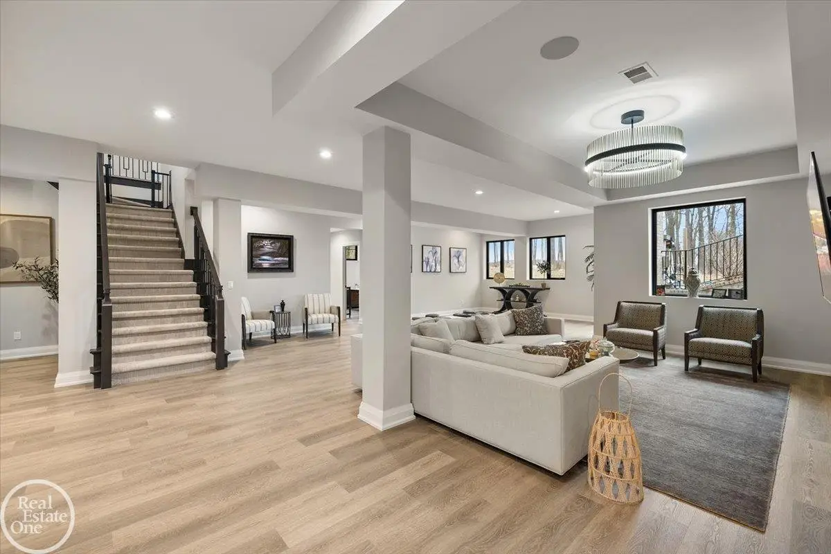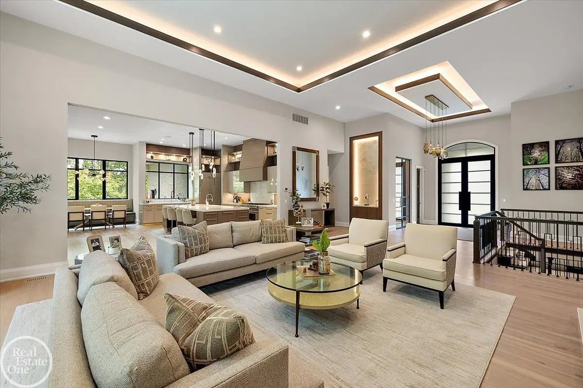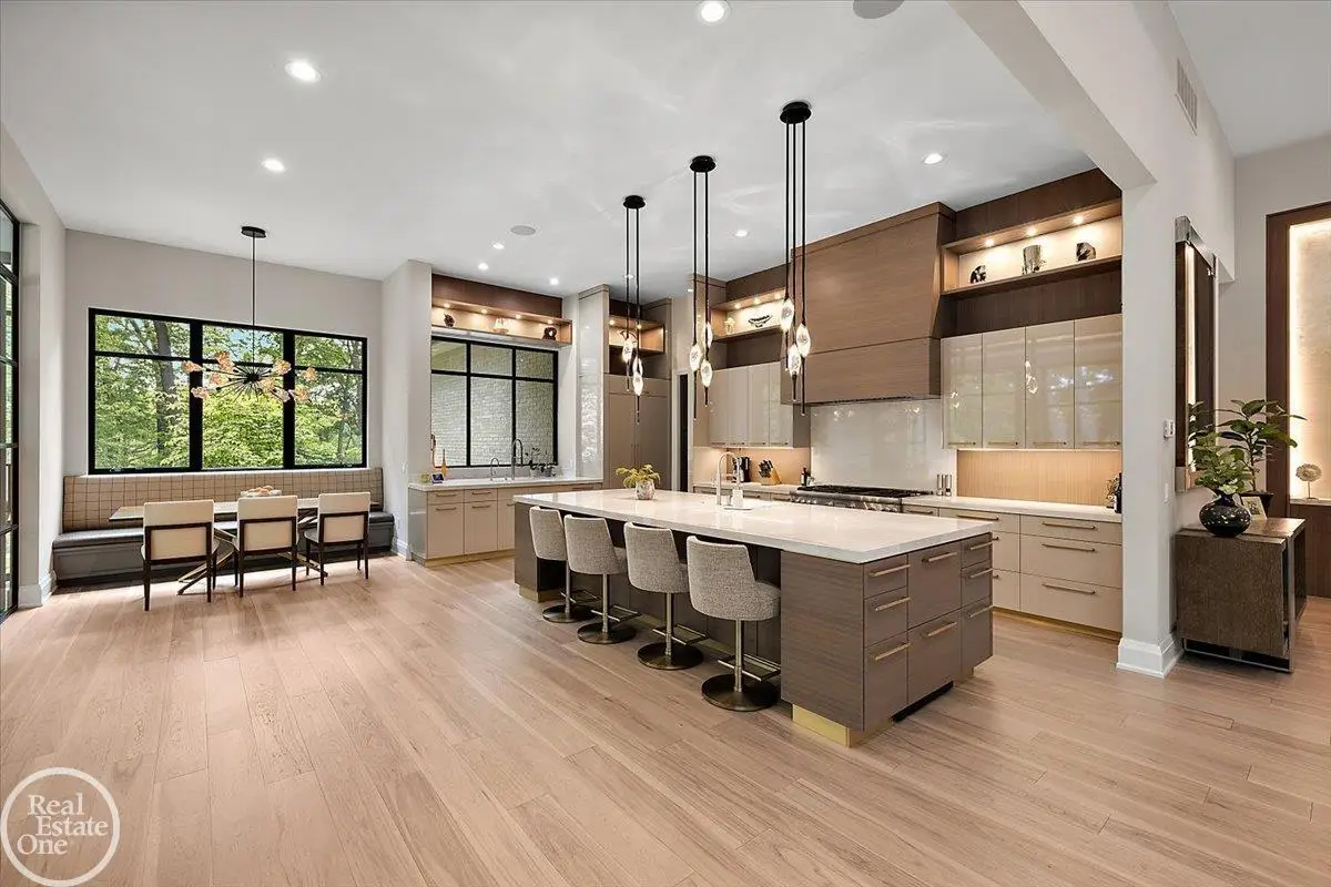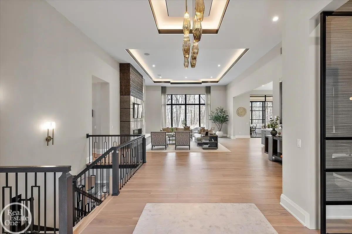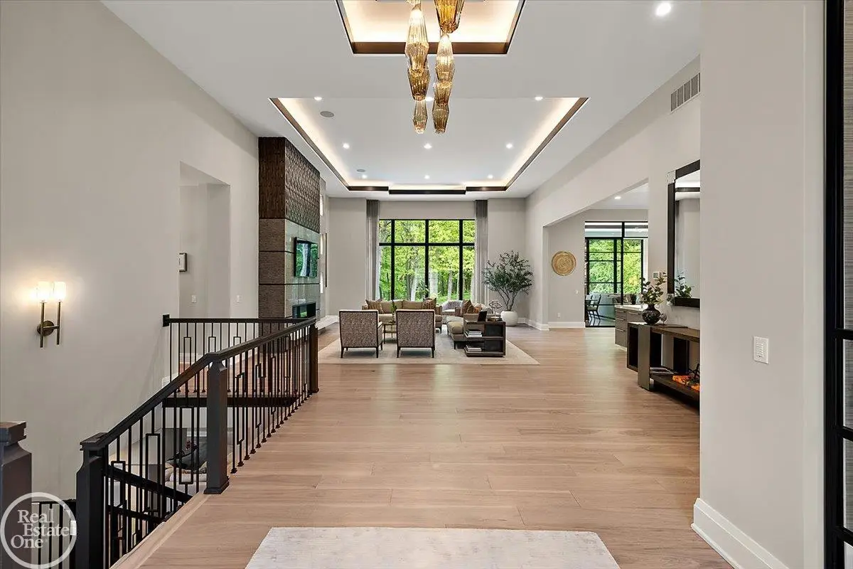 Experience unparalleled modern luxury in this custom-built 2021 Cranbrook masterpiece. Featured in Detroit Design Magazine, this home showcases exquisite interior design by Tutto Interiors, boasting the finest materials and craftsmanship throughout. Situated on 3 private wooded acres, this residence offers a serene escape with an urban edge. The open floor plan, highlighted by soaring 14-foot ceilings and expansive walls of windows, floods the home with natural light and breathtaking views. The gourmet kitchen, equipped with Thermador appliances, is an entertainer's dream. Relax in the stunning great room with its floating fireplace or unwind in the four-seasons glass room, featuring an industrial loft aesthetic and a natural fireplace. The primary suite offers a spa-like experience with a luxurious bath, steam shower, and dual walk-in closets, all overlooking the tranquil wooded landscape. The finished walk-out lower level leads to a 35x12 inground pool, complete with a custom pergola and firepit, perfect for outdoor gatherings.