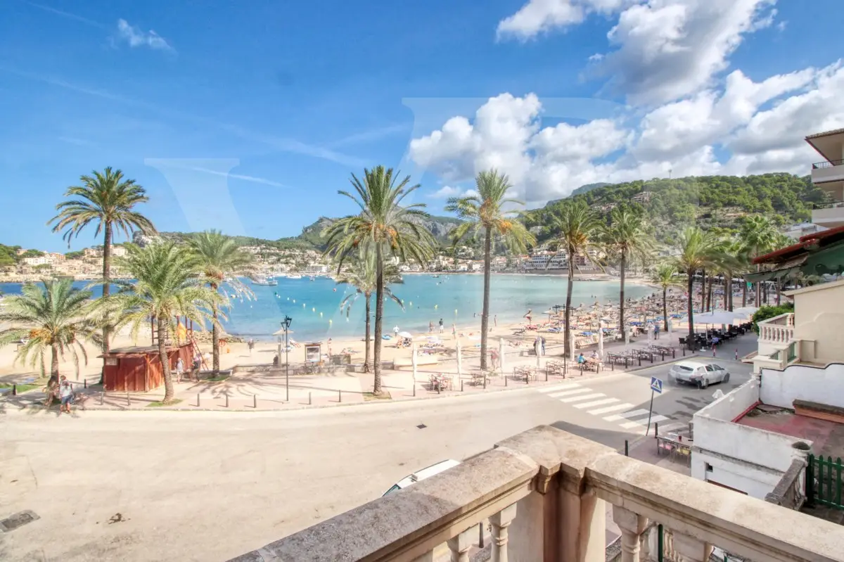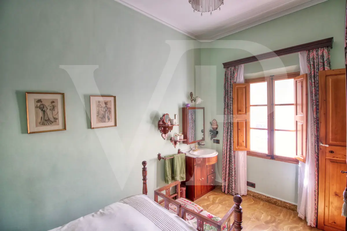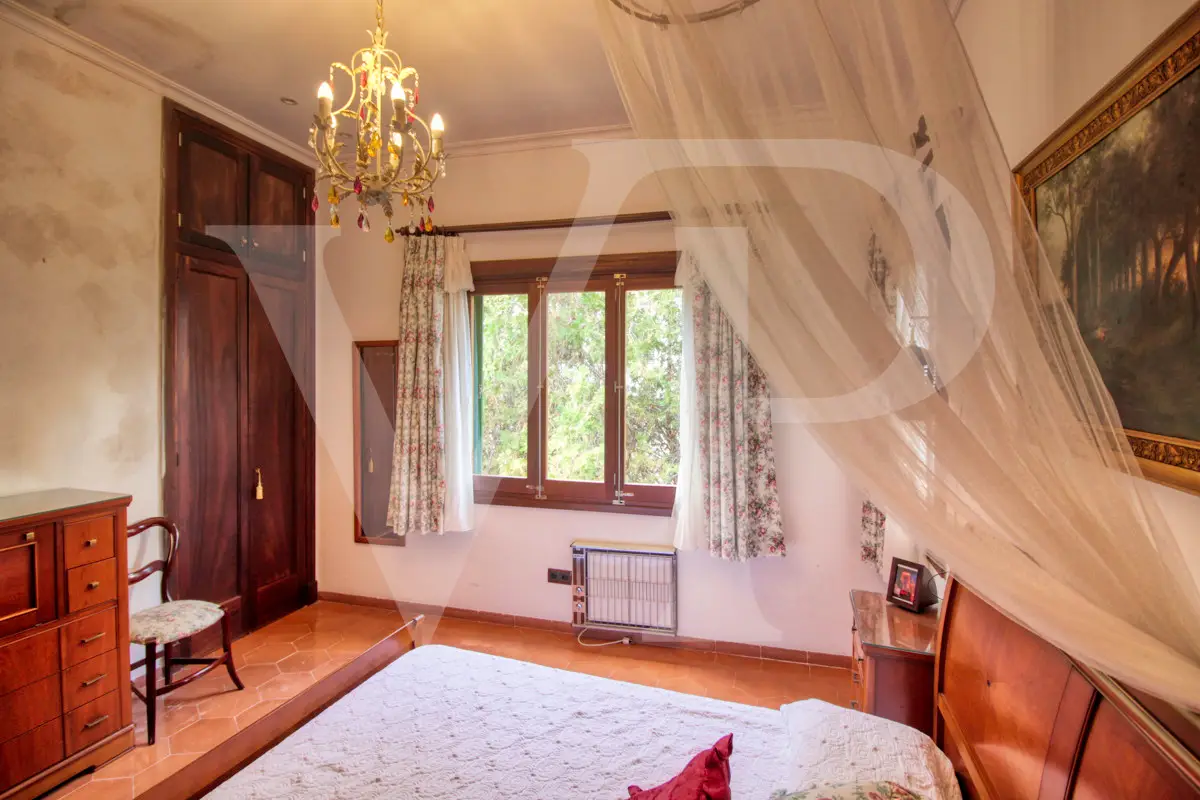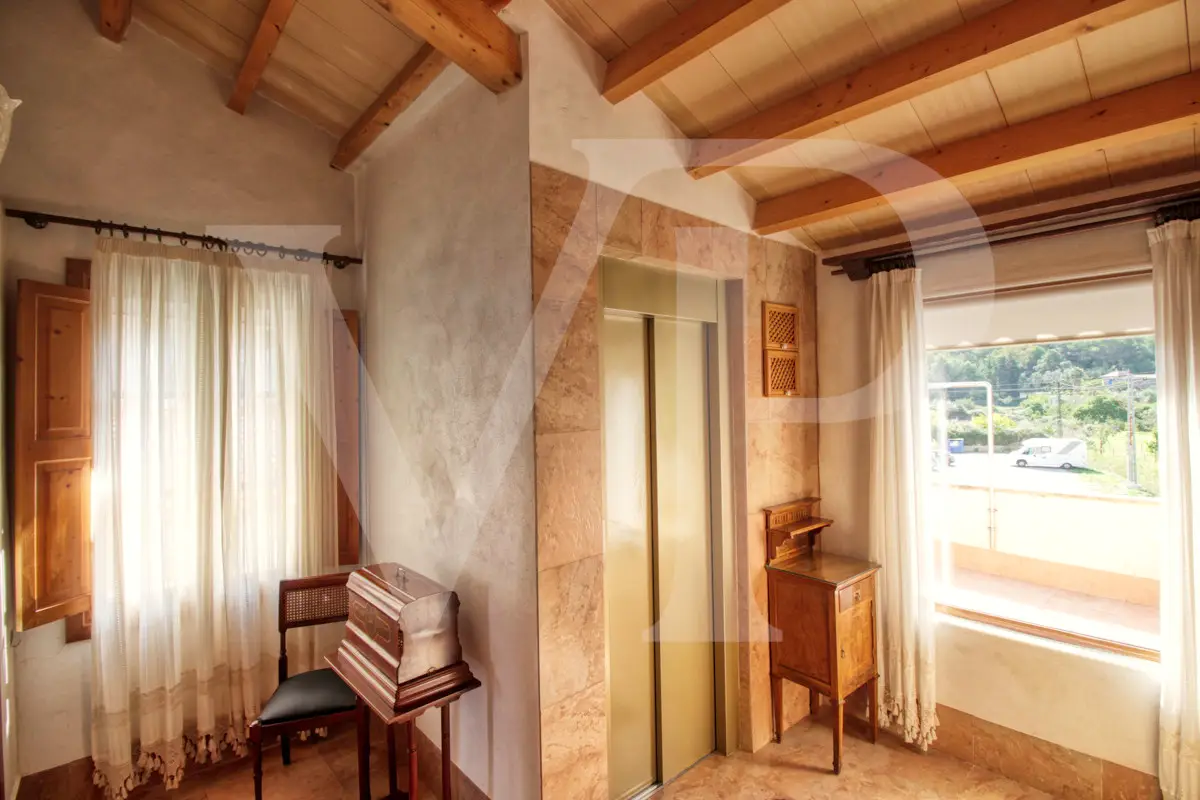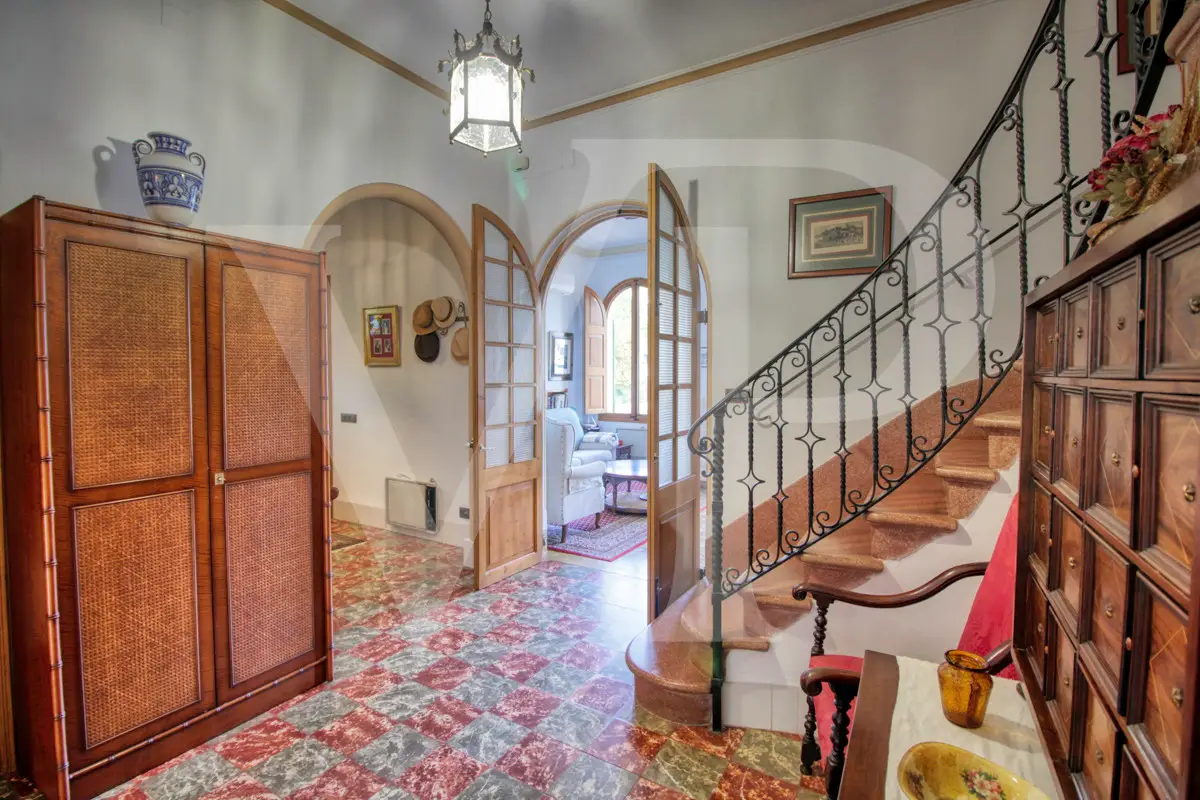 Fantastic corner house in a quiet location with easy parking, located in the first row in front of Platja d'en Repíc in Puerto de Sóller. The property has a plot of 400 square meters with a historic manor house of almost 400 square meters with garden and private parking space. On the first floor with more than 129 square meters through the main direct access from the outside, we find a cozy entrance hall with arch that connects the distributor with the beautiful spiral staircase, a large living room with fireplace and large curved windows with direct exit to the large front terrace of 24 square meters with balustrade of seas from where you can enjoy the fantastic sea views and sunsets. A renovated area with a modern and bright dining room with balcony, hallway with elevator, modern equipped kitchen, laundry room with direct access to the large rear terrace and a modern bathroom. Another area with two single bedrooms with sink, one double bedroom, large bathroom very old but well preserved. From this floor there is access via stairs or a lift to the rear terrace with barbecue area, the garden and the ground floor. On the second floor, from which you can enjoy wonderful sea views, are the other three double bedrooms, all with balconies and two of them with sinks. The beautiful ground floor of 150 square meters preserves all its rustic style, rustic kitchen with wooden furniture, a living room or dining room, storage room, small cellar and pantry with the bottom of the stairs, room with original sink with bathroom and separate shower, an office or library , garage and with access to the large front terrace. Very high ceilings with beautiful stucco on the upper two floors, original tiles, large stained glass windows and curved Mallorcan shutters and antique doors made of old northern wood. The bedrooms are equipped with large closets, two of which have built-in wardrobes. Vaulted ceilings on the ground floor in a rustic style with 60cm wide stone walls and terracotta floors. It has many terraces and balconies, central air conditioning in the new area, elevator and staircase with access to the rear terrace. There is the possibility of remodeling only the interior spaces, the façade will be protected from any alteration in order to preserve the architectural heritage of the area.
