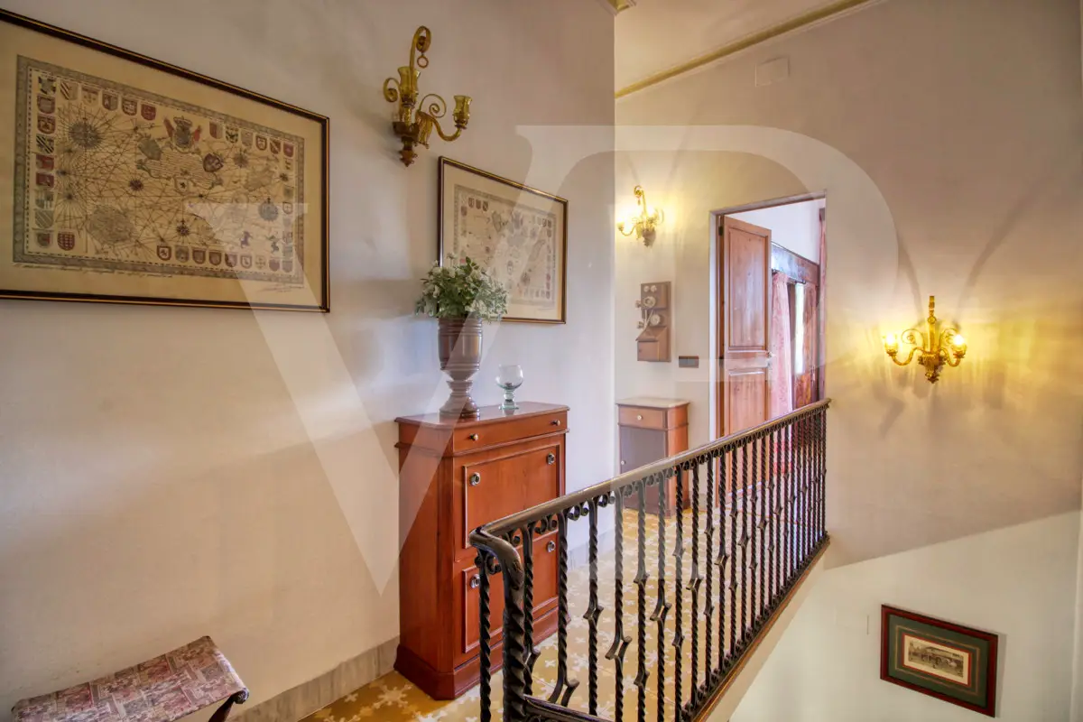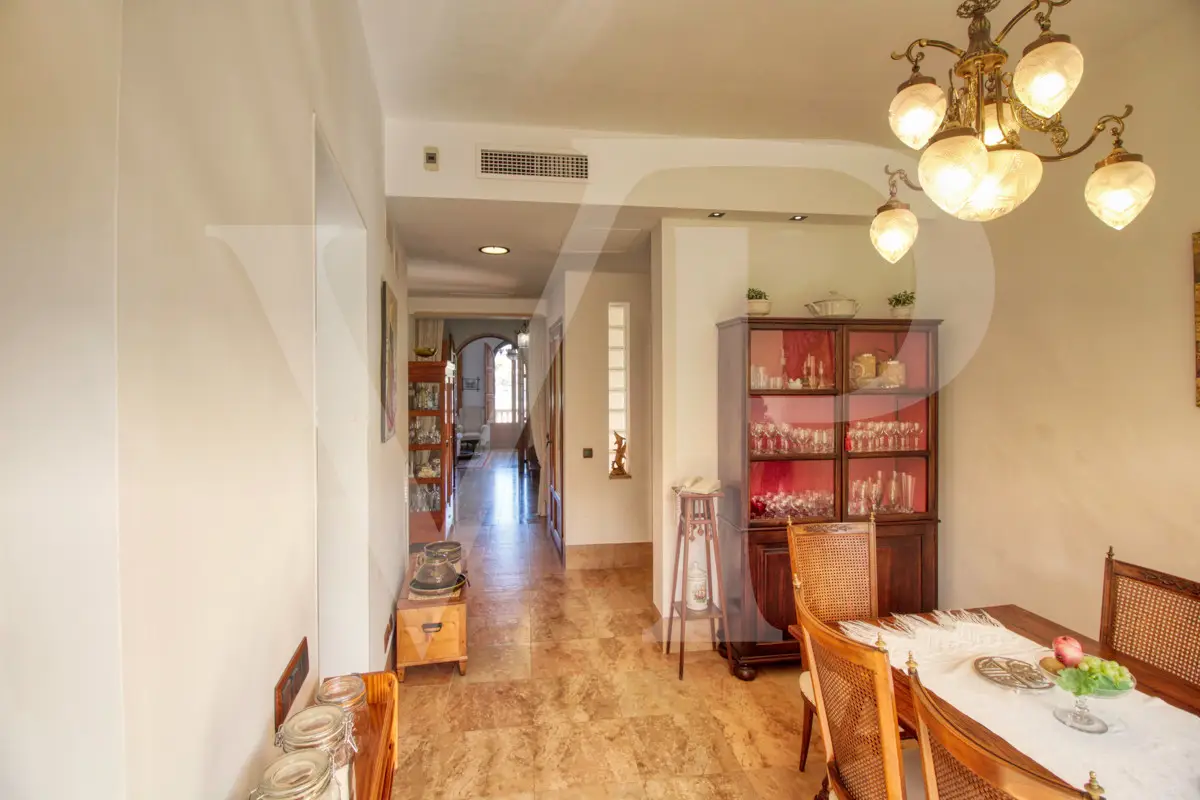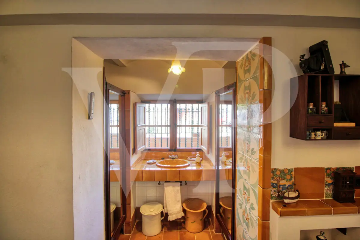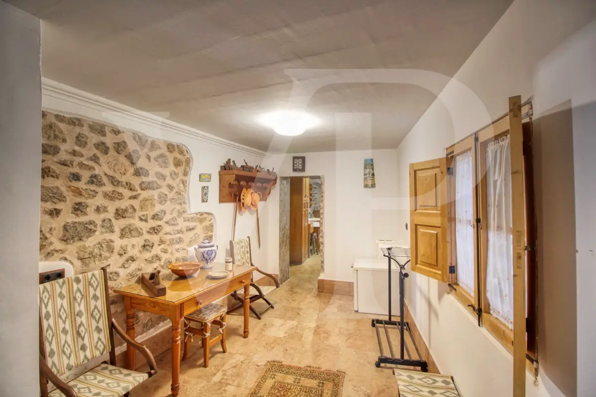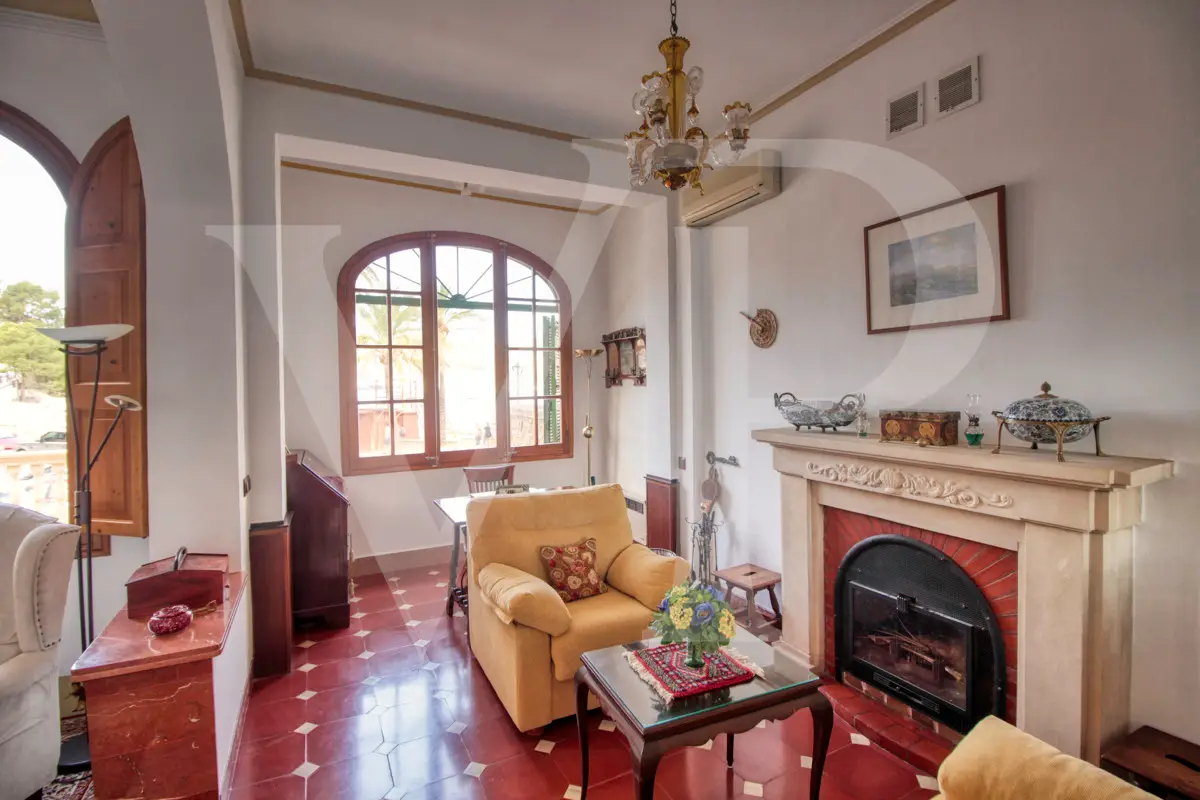Fantastic corner house in a quiet location with easy parking, located in the first row in front of Platja d'en Repíc in Puerto de Sóller. The property has a plot of 400 square meters with a historic manor house of almost 400 square meters with garden and private parking space. On the first floor with more than 129 square meters through the main direct access from the outside, we find a cozy entrance hall with arch that connects the distributor with the beautiful spiral staircase, a large living room with fireplace and large curved windows with direct exit to the large front terrace of 24 square meters with balustrade of seas from where you can enjoy the fantastic sea views and sunsets. A renovated area with a modern and bright dining room with balcony, hallway with elevator, modern equipped kitchen, laundry room with direct access to the large rear terrace and a modern bathroom. Another area with two single bedrooms with sink, one double bedroom, large bathroom very old but well preserved. From this floor there is access via stairs or a lift to the rear terrace with barbecue area, the garden and the ground floor. On the second floor, from which you can enjoy wonderful sea views, are the other three double bedrooms, all with balconies and two of them with sinks. The beautiful ground floor of 150 square meters preserves all its rustic style, rustic kitchen with wooden furniture, a living room or dining room, storage room, small cellar and pantry with the bottom of the stairs, room with original sink with bathroom and separate shower, an office or library , garage and with access to the large front terrace. Very high ceilings with beautiful stucco on the upper two floors, original tiles, large stained glass windows and curved Mallorcan shutters and antique doors made of old northern wood. The bedrooms are equipped with large closets, two of which have built-in wardrobes. Vaulted ceilings on the ground floor in a rustic style with 60cm wide stone walls and terracotta floors. It has many terraces and balconies, central air conditioning in the new area, elevator and staircase with access to the rear terrace. There is the possibility of remodeling only the interior spaces, the façade will be protected from any alteration in order to preserve the architectural heritage of the area.