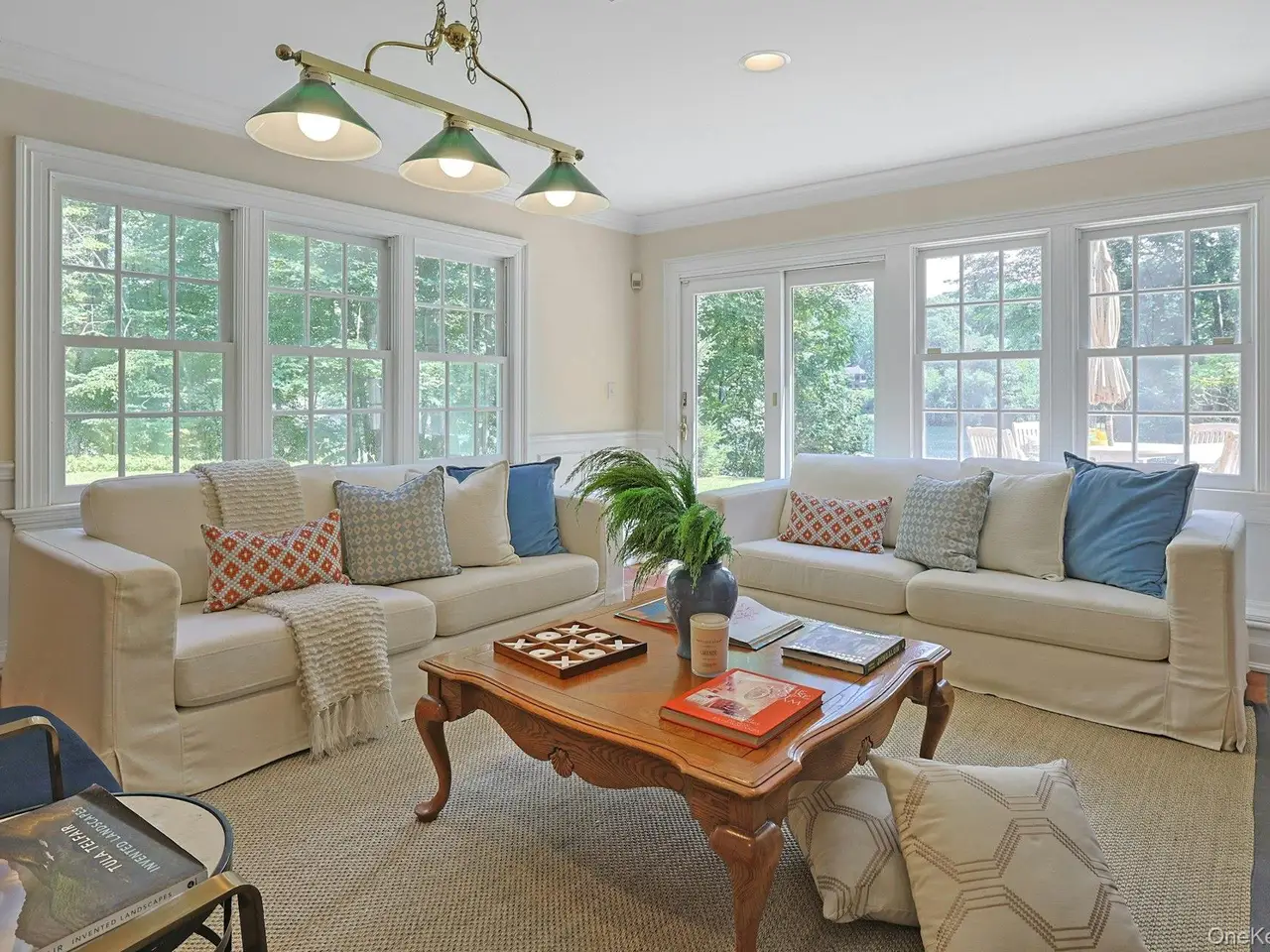 A dazzling opportunity to own an epic property in Armonk’s coveted Windmill Farm community, privately set behind its own gate on 1.2 acres. This rare North Lake waterfront home offers just under 5,300 square feet of living space and over 220 feet of shoreline on 22-acre North Lake, with a private dock for swimming, boating, and fishing, plus spectacular views from almost every room. A lovely, gently sloping lawn stretches from the house to the water’s edge, creating a serene, park-like setting. Thoughtfully custom-built with quality finishes, the home features a charming rocking chair front porch, sun-filled open spaces, and a comfortable flow ideal for both lively entertaining and everyday family living. Two stone patios overlook the lake - perfect for summer gatherings - while a beautiful balcony off the primary bedroom is an inviting spot to enjoy your morning coffee or a good book. A sandy beachfront invites you to build sandcastles, sink your toes in the warm sand, and savor the simple joys of lakefront living. From summer kayaking to winter ice-skating, every season offers a new way to enjoy this one-of-a-kind setting - just minutes to Byram Hills schools, downtown Armonk, and Metro-North, and only an hour from NYC.