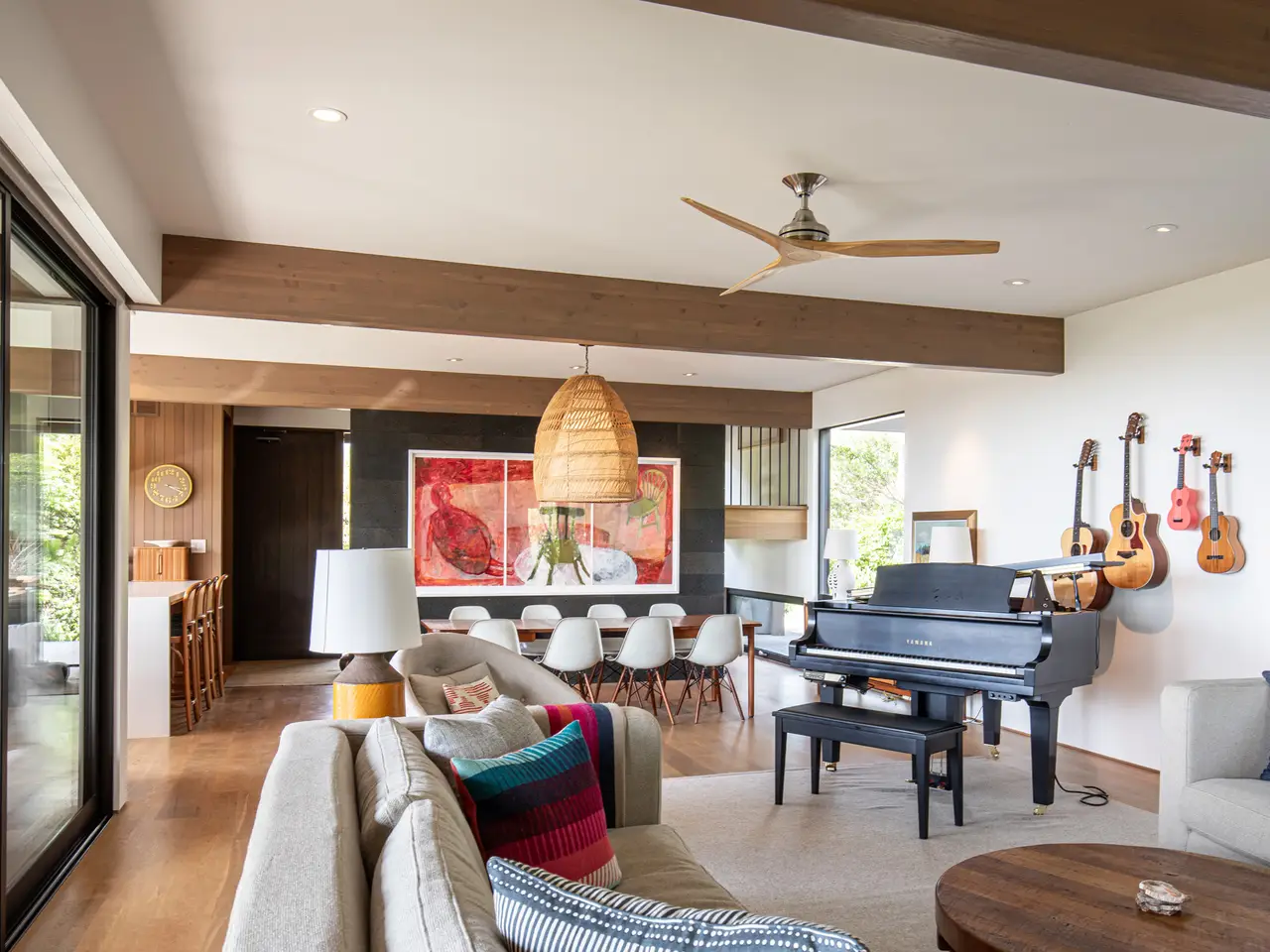 If architecture is a language and the built form its voice, then a great architect is, ultimately, a master storyteller. 29 Kolonahe is evidence of such mastery from architect Ron Radziner, co-founder of renowned firm Marmol Radziner. This upcountry Maui home, built by legendary craftsman John Cahill, is an enduring, livable work of art—and Marmol Radziner’s first house in Hawaii. At the edge of a dramatic tropical valley, a triad of structures rises from an impeccably landscaped garden: main house, art studio and office, and carport and music studio. Glass, cedar, and honed lava playfully direct sunlight throughout the day—from its morning appearance to its dramatic sunset finale. Outside, gardens of native 'Ohi'a lehua, Koa, Puakenikeni, 'A'ali'i, Alahe'e and orchards of banana, papaya, mango, lychee, longan, citrus, avocados and more adorn the hillside. Listening to the voices of the land, the site, and the vision of his clients (fine artist, musician, and actor), Radziner created an oasis of modern design, inspired artistry, and native landscaping that simply feels good to live in. Radziner’s design at 29 Kolonahe tells a story of beauty, ease, and delight: the power of inhabiting a space that’s brilliantly crafted in alignment with the land where it is situated. Experience it yourself. This property is a Residential CPR and includes 1.719 acres of land.