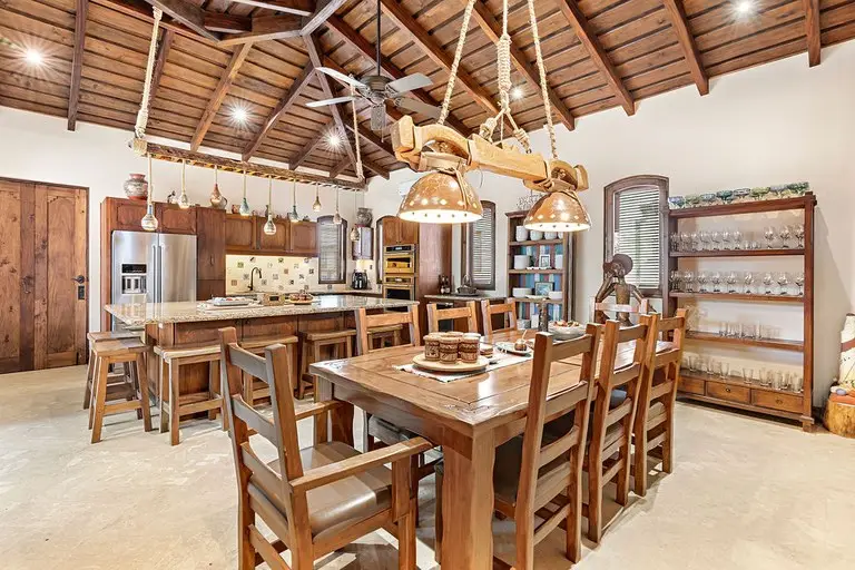 This custom built five bedroom, 6.5 bathroom home exudes luxury and old-world culture at its finest. In addition, this home is all about location, location, location!!! Casa Maya is located in the heart of the highly coveted beachfront community of Las Catalinas, Costa Rica. Enjoy all of the restaurants, stores, shops, and even the warm waves of Playa Danta Beach, all of which are only a one-minute walk in any direction from this home. As you enter Casa Maya, you will be met with an enchanting courtyard, plunge pool, and the sounds of water from the pool fountains. This courtyard is the heart of the home, and there are large pocket  doors that open seamlessly to the living and kitchen area, bringing the outdoors in. The kitchen/living/dining areas have an open concept where you can comfortably entertain and pay tribute to the home’s authentic fixtures that double as works of art. For example, the backsplash and stairs consists of handmade Honduran tiles made by the Lenca peoples (some of the first people known to inhabit Honduras before colonial times), a large dining table for eight complimented by a lighting feature made from an original yolk  created by a Chorotegan  artisan, vaulted ceilings made of Costa Rican hardwood, and an oversized island with a 6-person breakfast bar adorned with clay lamps that give homage to Navajo Native American art. You will see similar tributes to peoples and cultures of Central America, including the Mayan culture, throughout this home.All five bedrooms have en-suite baths.  The principal bedroom is extremely private, located on its own floor, and has a large private balcony overlooking the town. Moreover, the composition of the bedrooms in this home makes it very versatile. First, three of the bedrooms have a King size bed and one of the rooms in the main house feature  full size bunk beds with trundles and pull out sofas, so that this home comfortably sleeps 16. Second, there are two bedrooms located downstairs , both are lock-off one-bedroom apartments. Both  apartments can be fully integrated with the main home, or can be locked off and used as a separate apartment, complete with its own kitchenettes and can be used either alone or together they connect in the middle with a second laundry room but have separate  private entrances, perfect for extended family or for use as a long or short-term rental.  Even more, these apartments are ADA compliant for those with limited mobility, ensuring that everyone can enjoy one of the most popular beach towns in all of Costa Rica.  Las Catalinas is a high-end beach town that is reminiscent of a Mediterranean village and surrounded by 1000 areas of dry tropical forests. These forests are home to abundant wildlife and hiking and biking trails, all with excellent ocean view points along the way. Homeowners also have access to the Las Catalina’s Beach Club, which features two pools, a lap pool, a bar and restaurant, a boutique clothing and gift shop, and an air-conditioned gym. Las Catalinas regularly features events, including triathlons, movie nights, and festivals. Las Catalinas is only a 10-minute drive to the new Flamingo Marina, which is now accepting boats into its harbor. It is a 15-minute drive to the private schools of La Paz and the Costa Rica International Academy (“CRIA”), and is a 45-minute drive from the Daniel Oduber International Airport in Liberia, Costa Rica.