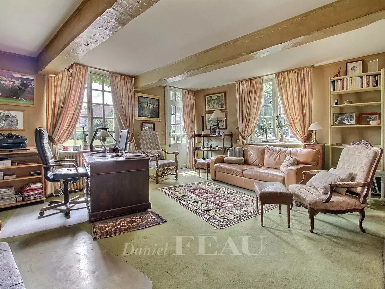 This elegant late 19th century property is located in the heart of Tourgeville just a few minutes from world-famous Deauville and the coast. Set in 5500 sqm of landscaped grounds, it includes a main house offering about 225 sqm of living space as well as a convertible 100 sqm attic, a near 120 sqm former cider press ideal for storage or a workshop, a half-timbered guest house, a caretaker’s house (both with a living room, a kitchen and a bedroom), a beautiful brick-built wine cellar, a half-timbered car port and seven horse boxes. Superb features include a magnificent period fireplace and an elegant slate façade. A rare opportunity in a peaceful environment in the immediate vicinity of the amenities and just a short distance from the sea. Information regarding the environment is available on http://www.georisques.gouv.fr In accordance with the Tracfin Law, proof of identity shall be required for all visits.