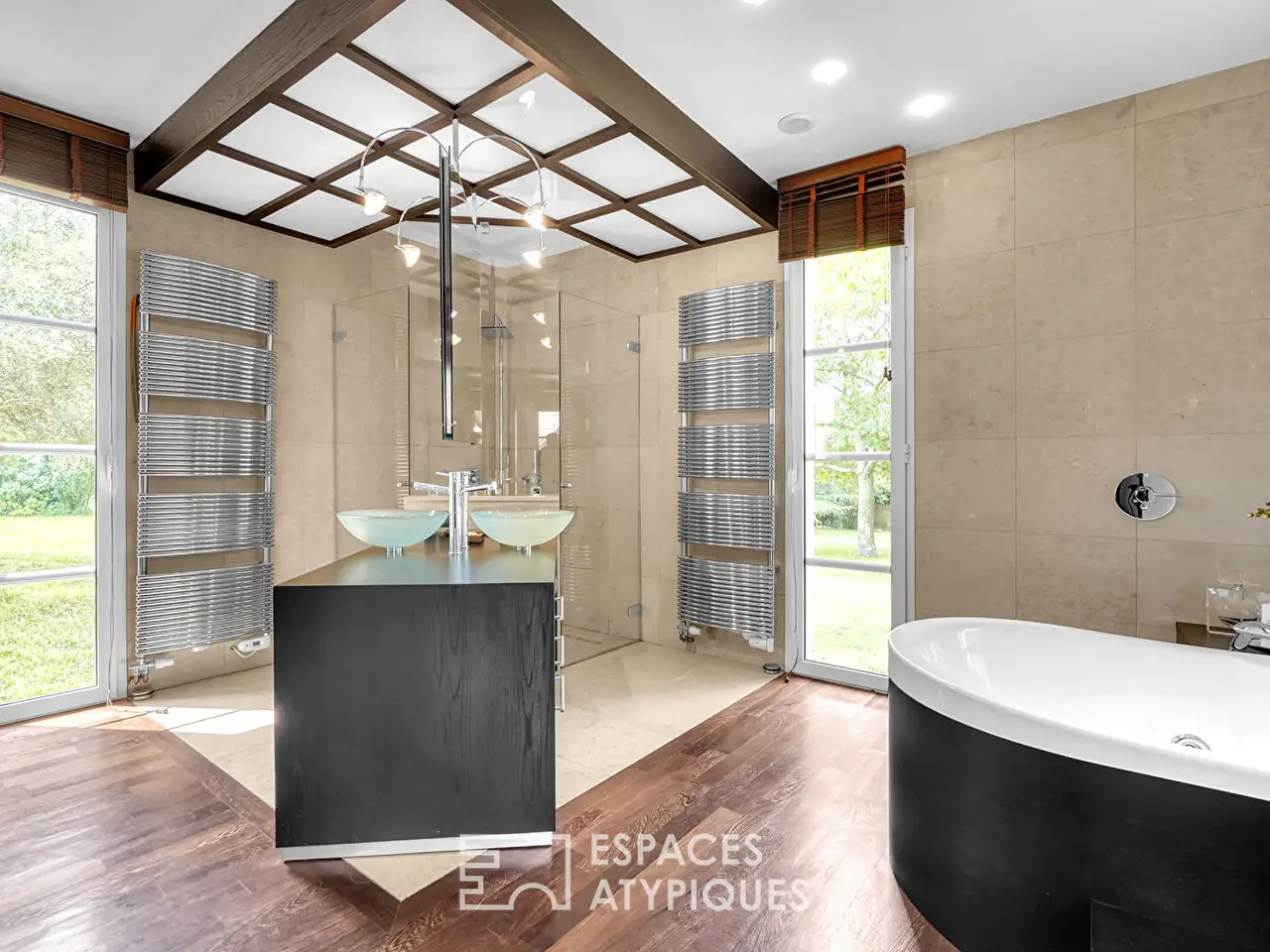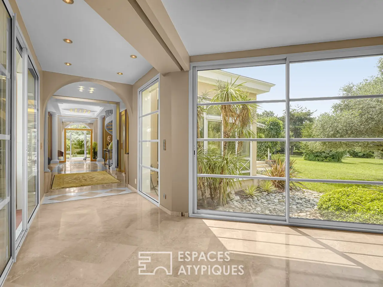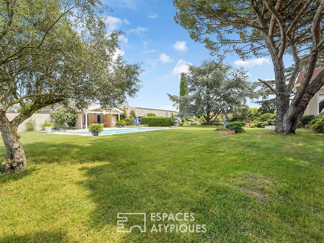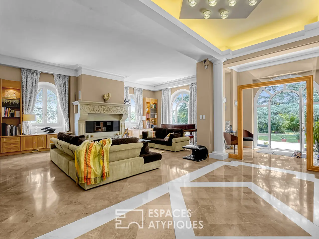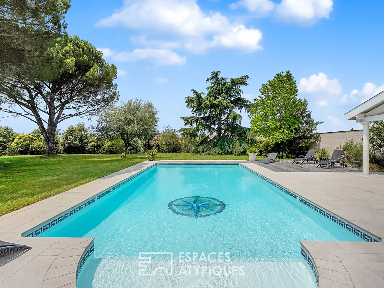 Propriete d'exception proche du centre-ville This former 330sqm hunting lodge dating from 1881 perfectly combines the charm of the old with the contemporary on a prime location in Tournefeuille. Beyond the gate, the unique architecture of this property of character and the different stages of construction are gradually revealed. As soon as you enter, the volumes are striking. On the right wing, a modern kitchen is naturally extended by a dining room. The living room is one of the centerpieces of the property. The fireplace dresses it with elegance. The numerous openings to the outside allow you to take full advantage of the 4,000sqm park. An architect intervened in the extension of the original building. A glass walkway provides access to the secondary lounge used as a projection room. A first sleeping area is offered on the ground floor with a 50sqm master suite. The original staircase, the true backbone of the hunting lodge, leads to the floor dedicated to rest. Four bedrooms including 1 suite as well as two bathrooms make up this level. A basement, accessible from the house and from outside, offers parking spaces, offices, wine cellar and laundry room. The exterior is not left out, nature spreads over more than 4,000sqm to constitute a magnificent green setting. A heated swimming pool and its pool house blend perfectly into the landscape. This splendid property steeped in history has been brought back to life in a popular area of western Toulouse. Possibility of acquiring in addition: - 1900sqm of building land, plotted and individual entrance. - Former stables with a surface area of 220sqm by 600sqm, ideal for vehicle collectors or for a second home. Well with watering. Parking for collector vehicles. Toulouse - Blagnac Airport 10 minutes ENERGY CLASS: C / CLIMATE CLASS: C. Estimated average amount of annual energy expenditure for standard use, established from energy prices for the year 2022: between EUR2,850 and EUR3,950. REF. 6855 Additional information * 9 rooms * 5 bedrooms * 4 bathrooms * 1 floor in the building * Outdoor space : 4100 SQM * Parking : 5 parking spaces * Property tax : 4 560 €