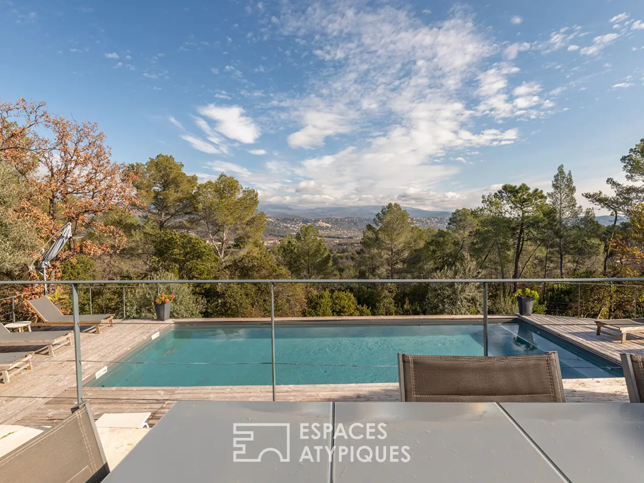 Architect's house with panoramic viewNestled on a plot of 4,800 sqm, this 228 sqm architect-designed house seduces with its exceptional panorama of the hilltop villages of Tourrettes and Fayence, with the majestic mountains of the Prealps of the Azur as a backdrop.Entirely renovated with high-end materials and remarkable attention to detail, this mainly single-storey villa requires no work and offers a refined and serene living environment.From the entrance, the living space of approximately 60 sqm opens onto a spacious dining room with open kitchen, where large bay windows capture the light and reveal a breathtaking view of the surrounding mountains. The warm and intimate living room is enhanced by a fireplace with insert, creating a friendly and comforting atmosphere. A spiral staircase leads to a mezzanine converted into an office, ideal for teleworking or a reading space.The sleeping area offers spacious bedrooms, all open to the outside, thus extending the harmony between interior and nature. To the west, two suites each have their own bathroom. To the east, a sumptuous master suite seduces with its custom-made dressing room and its elegant bathroom, equipped with a bathtub and a shower. A fourth bedroom and an independent bathroom complete this space.In the extension, a glass veranda bathed in light all year round is an ideal additional room to enjoy the mild winters of the south of France.Outside, several terraces allow you to appreciate the sweetness of life according to the seasons, while a 10×5 meter above-ground swimming pool invites you to relax in front of an exceptional panorama.A double garage accessible from the house, an outdoor parking lot equipped with two electric charging stations, an automatic gate and a chalet complete the services of this property.Enhanced by a breathtaking view and impeccable comfort, this architect-designed house will appeal to lovers of unique places in search of an exceptional living environment.ENERGY CLASS: A (37kWh/m2/year) / CLIMATE CLASS: A (1 kg CO2/m2/year)Estimated average amount of annual energy expenditure for standard use, established from 2021 energy prices between 570 euros and 830 euros.REF. 9558Additional information* 8 rooms* 4 bedrooms* 1 bathroom* 3 shower rooms* Outdoor space : 4840 SQM* Parking : 4 parking spaces* Property tax : 2 301 €Energy Performance CertificatePrimary energy consumptiona : 37 kWh/m2.anHigh performance housing*37kWh/m2.an1*kg CO2/m2.anA*B*C*D*E*F*GExtremely poor housing performance* Of which greenhouse gas emissionsa : 1 kg CO2/m2.anLow CO2 emissions*1kg CO2/m2.anA*B*C*D*E*F*GVery high CO2 emissionsEstimated average amount of annual energy expenditure for standard use, established from energy prices for the year 2021 : between 570 € and 830 €Agency feesThe fees include VAT and are payable by the vendorMediatorMediation Franchise-Consommateurswww.mediation-franchise.com29 Boulevard de Courcelles 75008 ParisInformation on the risks to which this property is exposed is available on the Geohazards website : www.georisques.gouv.fr
