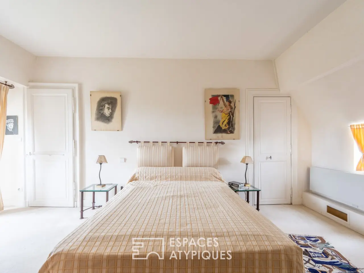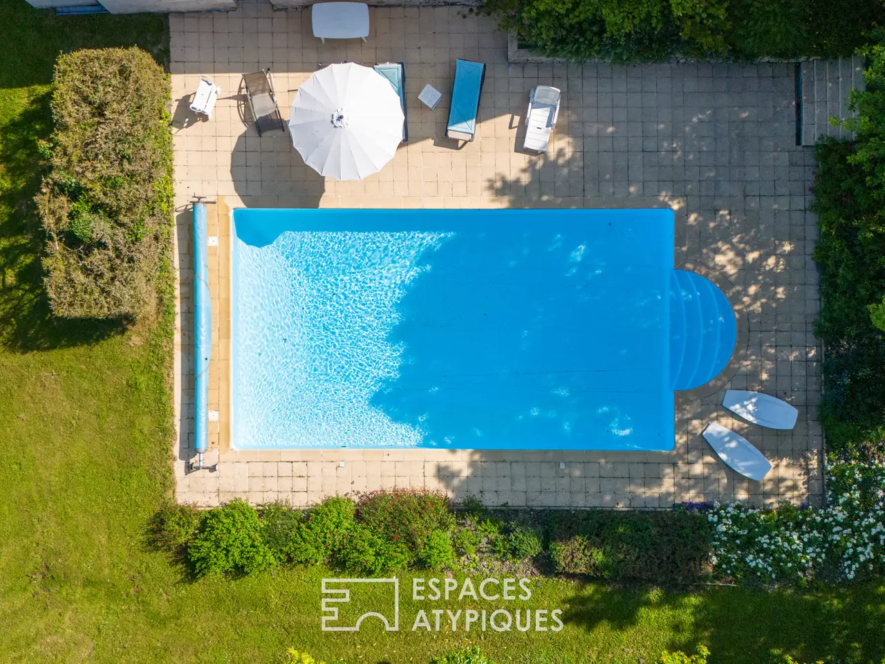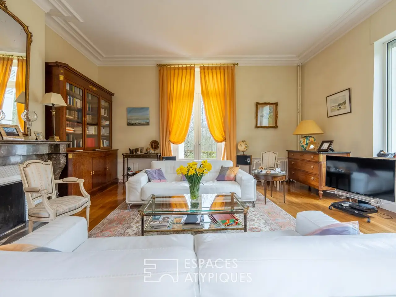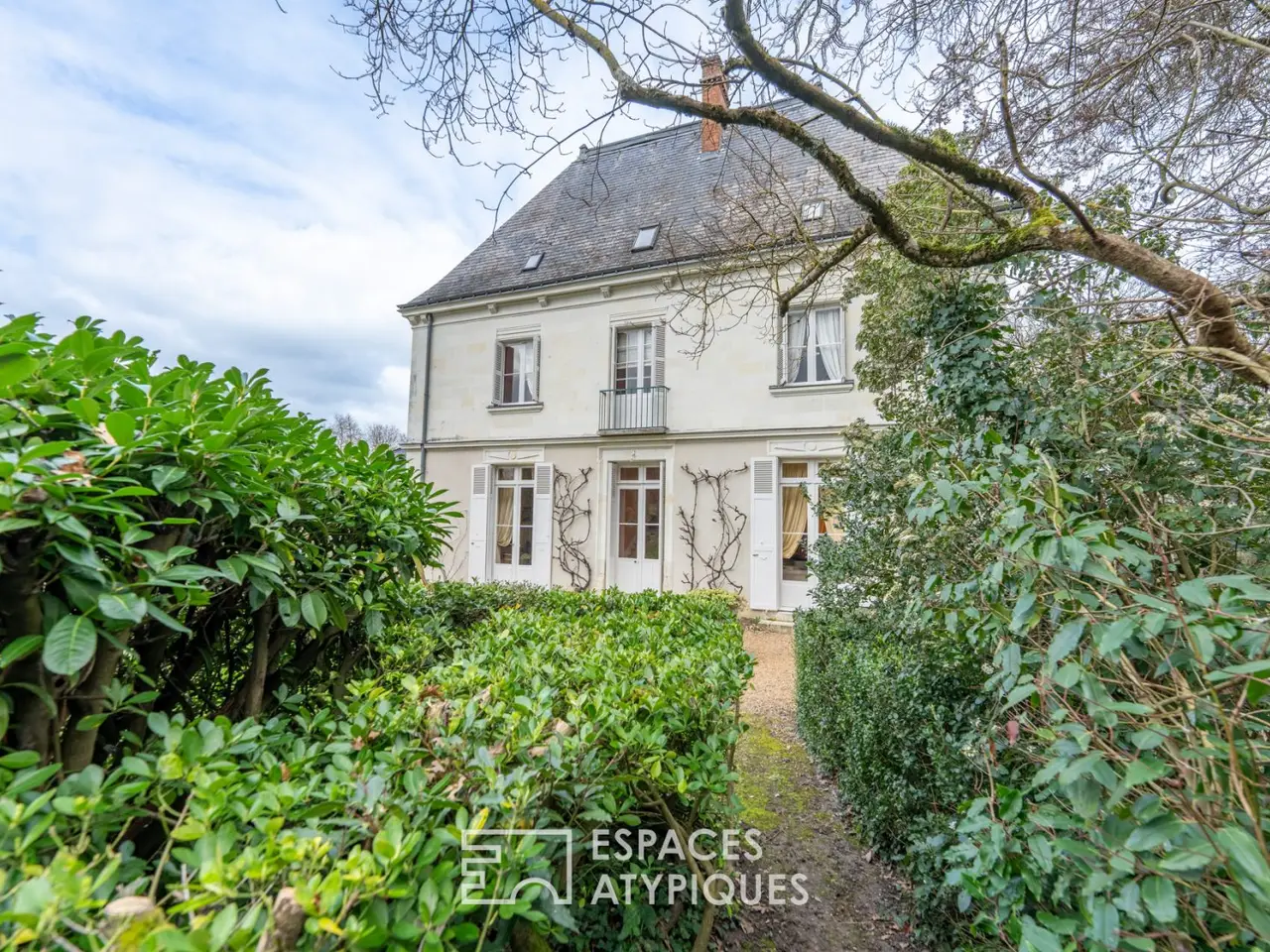 At the gates of Tours, in a sought-after and peaceful residential area, lies this rare character property in the region, consisting of a 18th or early 19th century mansion, as well as older outbuildings, historically linked to vineyard culture and its 'noble joue', evidenced by the old press still present and the remarkable cellar, set in a wooded park of over 7000m2. The main building, approximately 210m2, is arranged over two levels. The ground floor opens onto a majestic entrance, revealing the central solid wood staircase, the heart of the house, as well as on either side, the bright living room, and dining room, each embodying the architectural codes of the manor house: bourgeois moldings, light parquet floors, and beautiful marble stone fireplaces. These living spaces, with their through layout, invite you to enjoy the idyllic wooded park. The independent, recently fitted and equipped kitchen is an extension of the dining room and benefits from a functional utility room. The first floor opens onto two beautiful bedrooms, each with its own bathroom, as well as a final bedroom, currently used as an office, and its storage room. A first sleeping area with high-quality features, in line with the house's style. The second and top floor, under the roof, while offering a generous ceiling height thanks to the converted attic, is equipped with two large suites of over 20m2 each, as well as an independent full bathroom. The cellar, hidden in its park, is extraordinary: access is via about twenty steps in tuffeau stone, and it comprises a main nave with five lateral vaulted cellars on each side. Fully vaulted over 28 meters, inscriptions from the 16th century can be observed. Its wooded park extends to a pleasant swimming pool area, enhanced by a 15th century outbuilding of approximately 60m2, which could serve as a pool house during the summer, with its perfectly preserved bread oven, a bedroom, a bathroom, and a beautiful kitchen open to the living room. The sublime park, designed and maintained with passion by the owners, promises fabulous moments. A vegetable garden area offers a quality of life at the city's doorstep, with a pleasant view of a golf course. 8 minutes from the city center of Tours, 15 minutes from the TGV station. Shops within a 2-minute drive. File and photos available upon request. ENERGY CLASS: F / CLIMATE CLASS: F. Estimated annual energy cost for standard use between €5280 and €7200 as of 01/01/2021. Housing with excessive energy consumption. REF. eat3275 Additional information * 9 rooms * 5 bedrooms * Floor : 2 * Outdoor space : 7000 SQM * Property tax : 4 000 €