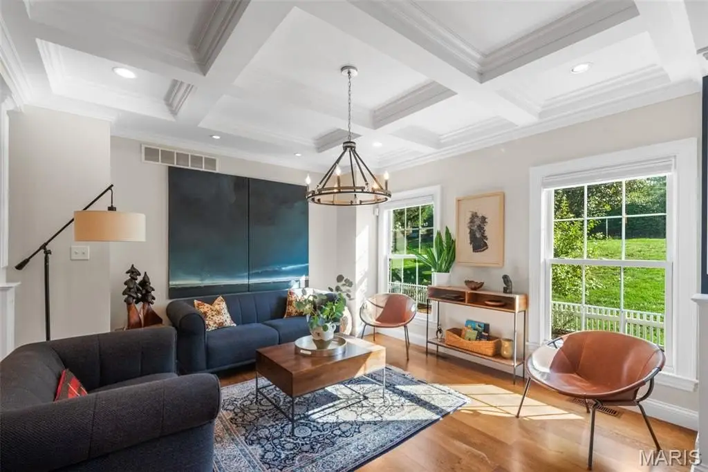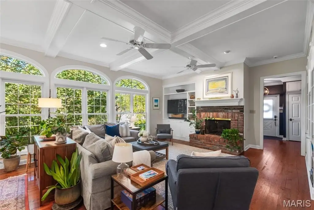 This New England inspired beauty is sure to win your heart! Nestled on a private 1.24 acre lot, this 4345 sq ft, 5 bedroom home is unique in its understated elegance. The showpiece of the home is the lovely sun drenched great room with a wall of Palladian windows overlooking the graceful yard. Architectural features abound, and blend with the dazzling open kitchen with Danby marble countertops, stainless appliances, outstanding built ins, and cozy hearth; all reminiscent of a country inn. Enter the multi use open living room where one can enjoy a reading nook , visiting area, or elegant dining. Adjoining the living room is a lovely half bath, and entry to the covered deck. The convenient first floor primary bedroom has a walk in closet, ensuite luxurious bath with marble countertops, soaking tub, separate shower, and a laundry room. There are 2 staircases to the second floor, which contains 4 ample bedrooms, some with walk in closets, and 2 full updated baths. The lower level with half bath has walk out access and boasts abundant uses for gatherings, hobbies, and recreation. Enjoy entertaining on the delightful covered deck with charming gazebo area and newer built in gas grill overlooking the lovely landscaped yard. There is a 2 car garage, mud room, sprinkler system, and alarm system. What a great location in Parkway West schools, convenient to Town and Country "Town Square" with a variety of shops, restaurants, walking paths and "meet and greet" venues! Don't miss this fantastic home!
