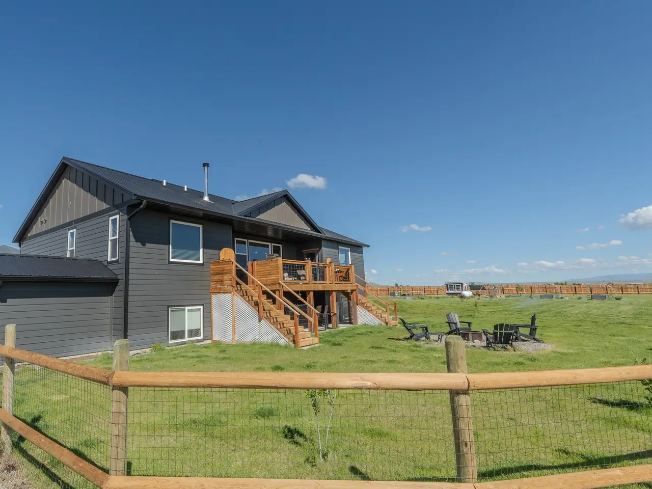 Rustic meets modern in this stunning 2021 custom-built ranch, where clean design and timeless materials reflect both craftsmanship and care. With 4 bedrooms, 4 bathrooms, an additional office with its own entrance, and a walk-up daylight basement, this 3,600 sq ft home is fresh, inviting, and filled with light. The chef’s kitchen is a true centerpiece—spacious, stylish, and made for gathering—opening to a large main floor deck that overlooks Canyon Ferry Lake and breathtaking mountain sunsets. Every room feels intentional and well-loved, infused with warmth, beauty, and a lived-in ease. Set on approximately 40 acres with two wells and irrigation water rights, this property is ideal for horses or cattle. A solar-equipped barn with tack room, automatic waterers, and corrals supports your rural lifestyle, while native pasture and fencing make it ready to go. Option to purchase additional acreage if buyer is interested. (see supplemental remarks) With a 3-car attached garage, thoughtful finishes throughout, and just 5 minutes drive to access thousands of acres of BLM land, this is more than a home—it’s a place to live freely, laugh often, and create something lasting. Don't forget the easy access to all that western Montana has to offer, from geology and history, to the most wild and remote recreation! You can't go wrong here! Features House: 4600 sqft 4 bedrooms: primary upstairs, plus one; two large bedrooms downstairs 3 full bathrooms, 1 half bath in laundry room Primary bathroom has shower and separate walk in bathtub 2 wells; one at the house, one at the barn Bulkhead entrance to daylight basement Counter and sink to downstairs bonus living area - potential for multi-generational living Wood stove downstairs Solid surface counters in chef’s kitchen, electric stove Huge pantry Half bath/laundry room Hot tub 3 car garage, with large heated office with separate entrance Fenced ~1ac around home, new trees and shrubs planted UG sprinklers Chicken coop with electricity Dog door from garage into fenced yard 1000 gal propane tank Barn: Solar panels on both sides of the roof 12 ft overhead door 2 Covered storage areas Large tack room Several horse stalls outside Automatic waterers Heated pump house with pressure tank