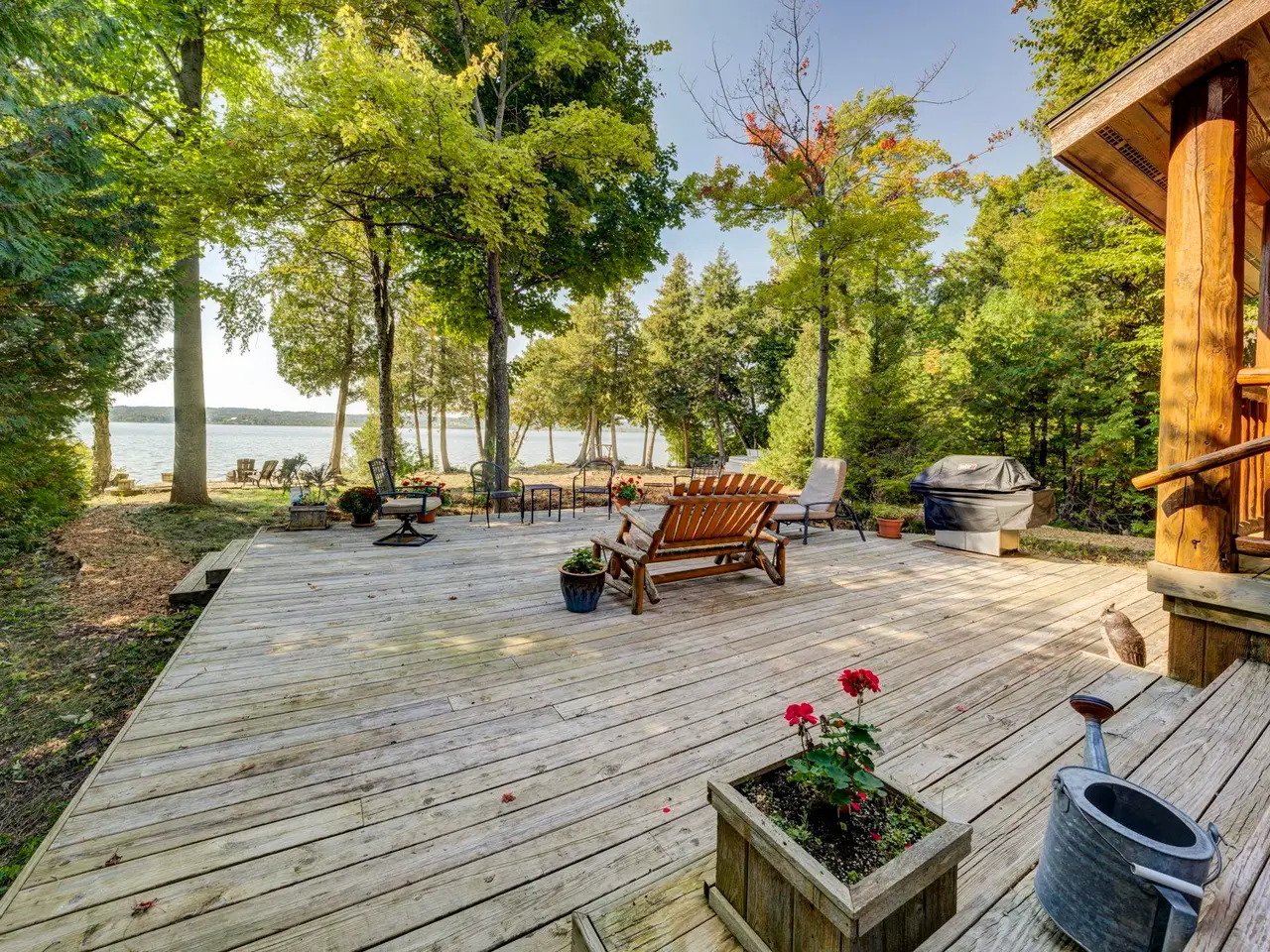Discover a hidden treasure on South Lake Leelanau, featuring a contemporary log cottage with stunning views of 150 feet of secluded waterfront. This beautifully designed getaway offers a serene atmosphere that captivates you every moment. Nestled at the end of a private drive shared with just two other homes, the tranquility here is remarkable. If you have been seeking a captivating location at the center of all the enjoyable experiences that Leelanau County has to offer, you must visit this property. Experience the ambiance that speaks directly to your heart. Showings will commence on Saturday, September 27. Don't miss out on this unique opportunity.