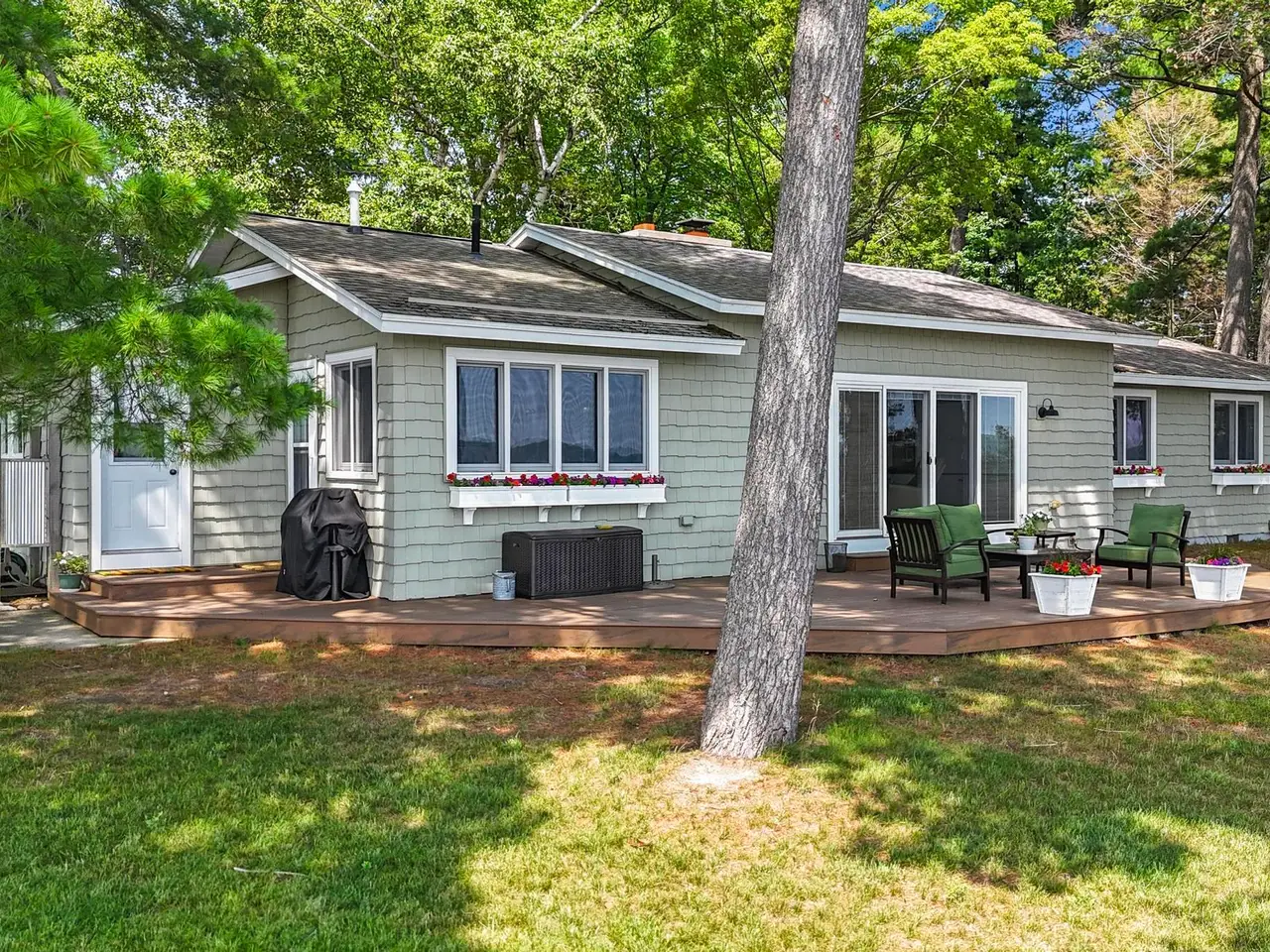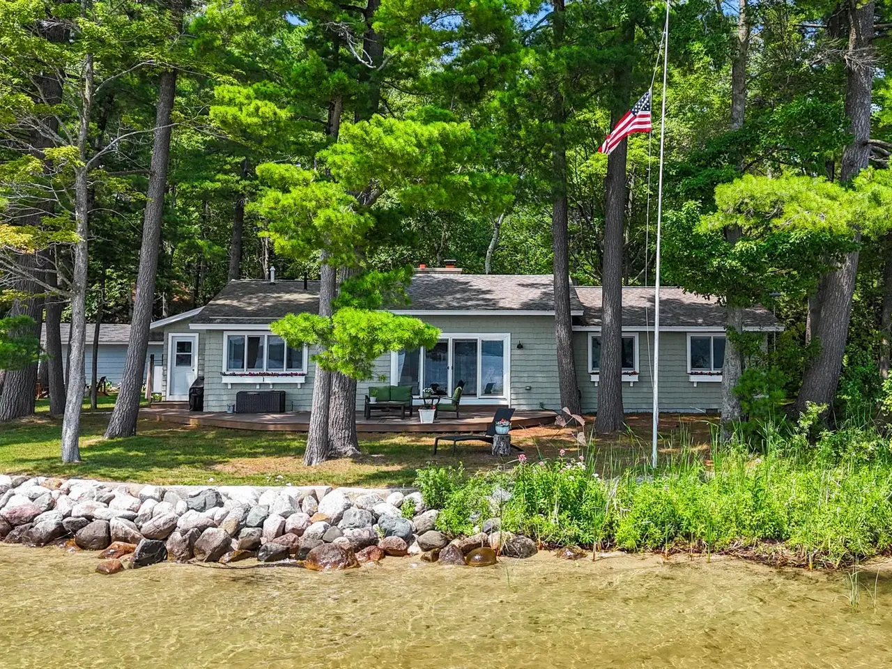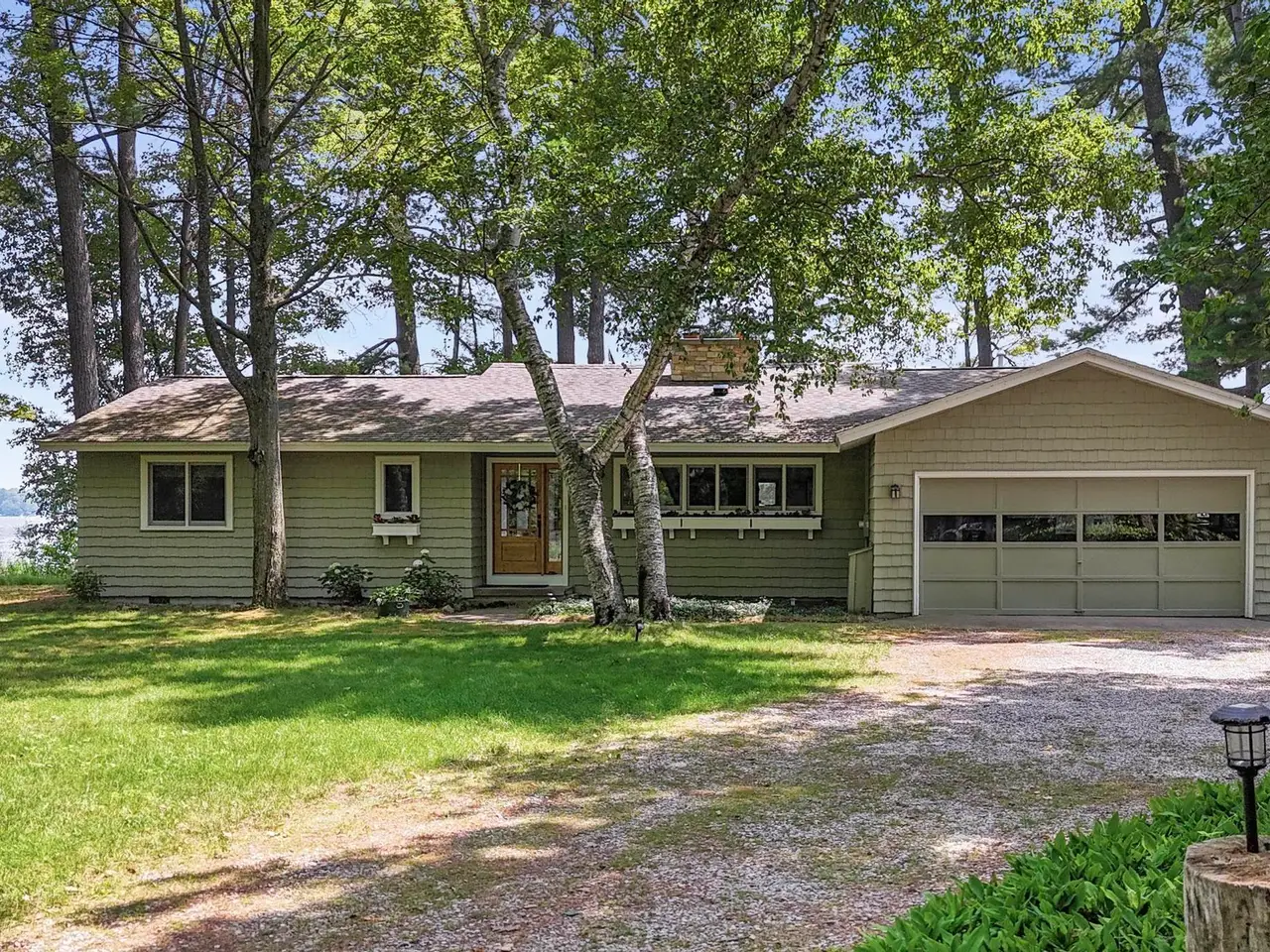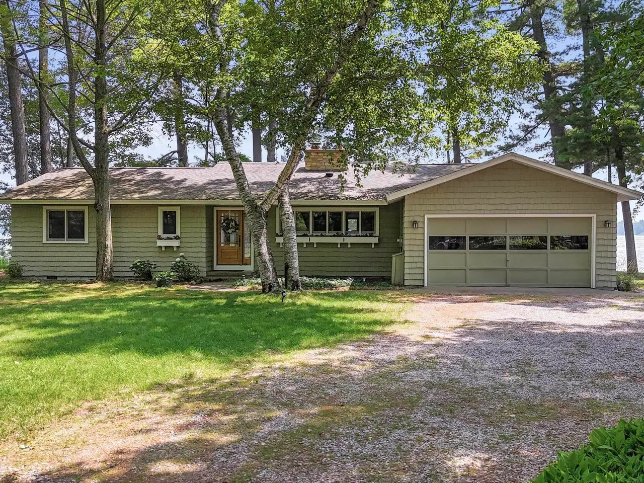 Welcome to The Point on Long Lake, one of the most extraordinary and sought-after properties in Northern Michigan. With an impressive 316 feet of private frontage and surrounded on three sides by crystal-clear water and sandy shallows, this is a truly breathtaking setting with panoramic 180-degree lake views that will take your breath away. Tucked beneath a canopy of mature, towering trees that provide just the right amount of shade and privacy, this secluded retreat is a nature lover's dream. Nesting loons return year after year, a soft breeze drifts across the point, and the waters are teeming with bass and walleye--making it one of the best fishing spots on the lake. The home offers 3 bedrooms and 2 bathrooms with a comfortable, timeless design. The vaulted living room features a soaring wood-burning fireplace clad in stacked stone, and hardwood floors run throughout the main living area. Every space is designed to bring the outside in--especially the quaint dining room with the original pine wood walls, wrapped in windows and water views. Additional amenities include an attached 2-car garage, plus a detached boat house garage for all your lake gear and toys. With three private docks on the property, you'll have space for boats, kayaks, and lakeside lounging. This is the kind of Northern Michigan property that rarely becomes available--a peaceful retreat just 8 miles from downtown Traverse City, offering both seclusion and convenience. The Point isn't just a property; it's a once-in-a-generation opportunity to own a truly special piece of Long Lake. The Point is a sanctuary, a lifestyle, and a legacy. Don't let it slip away.
