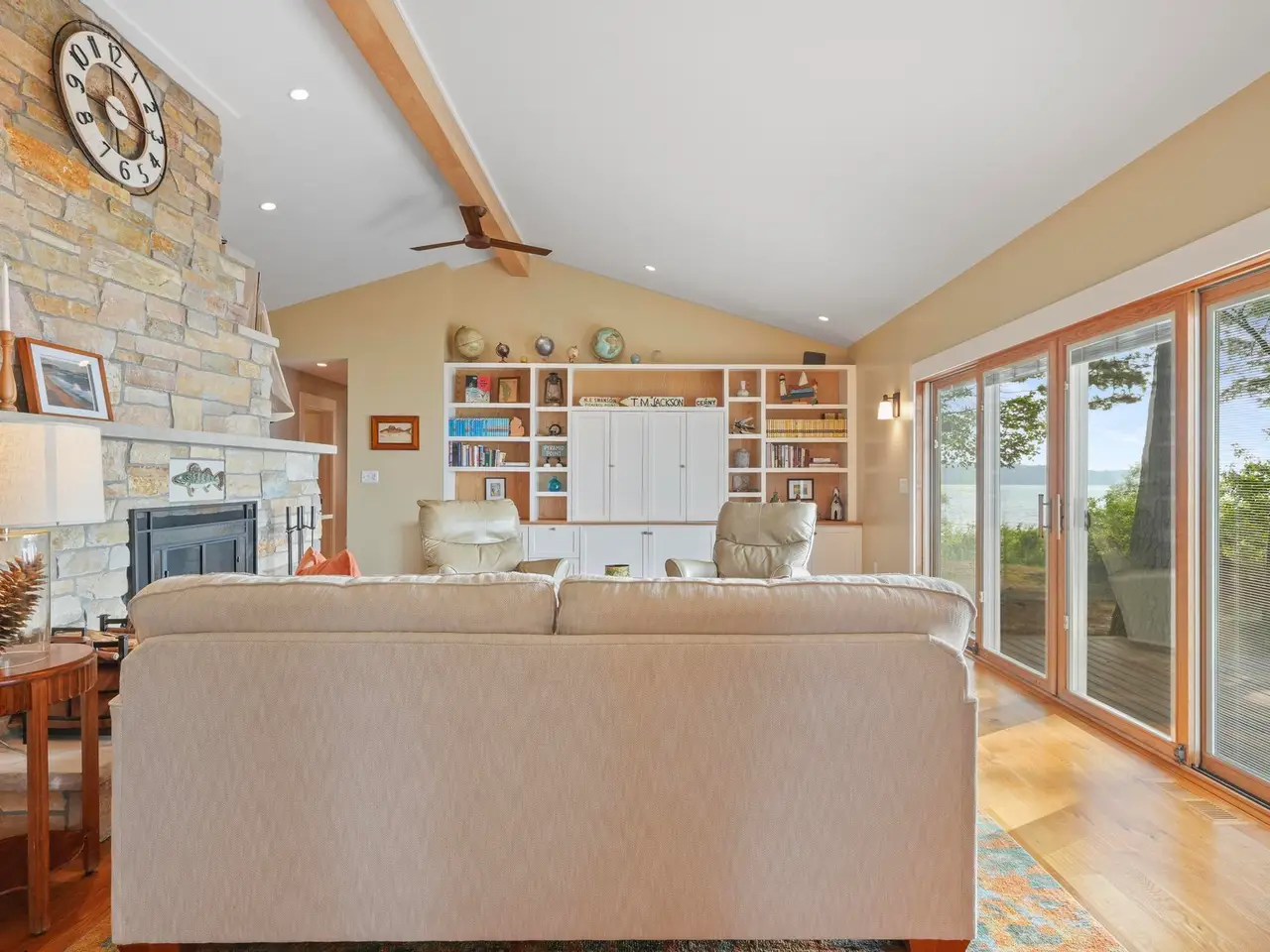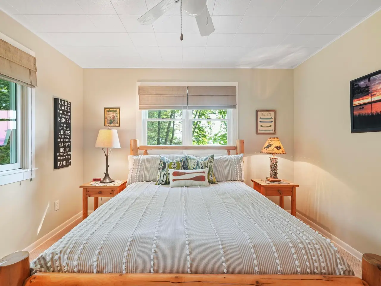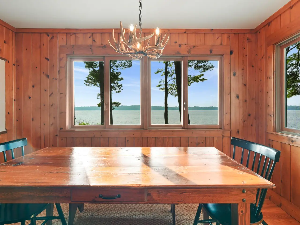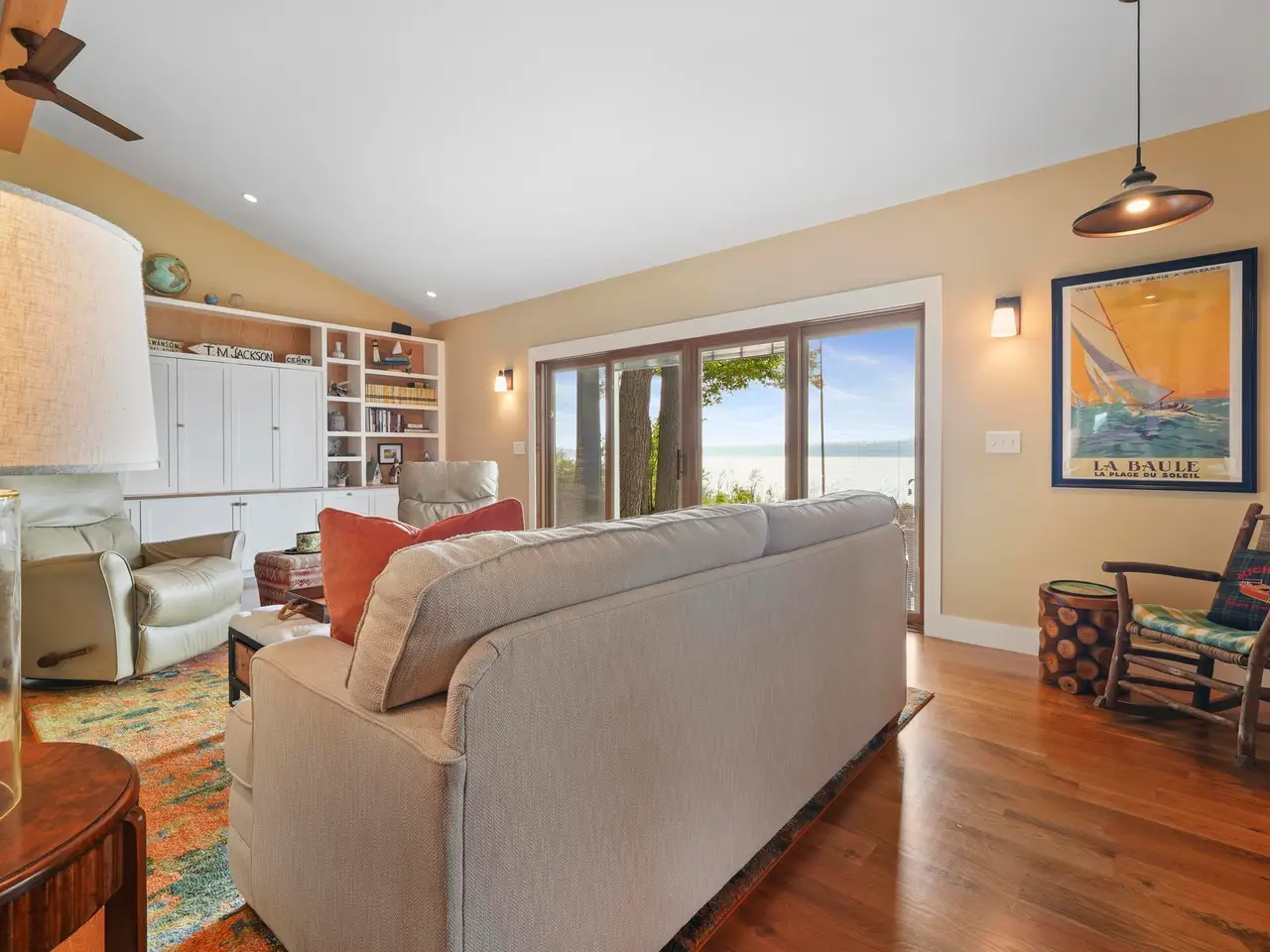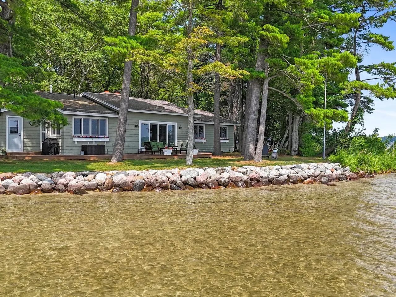 Welcome to The Point on Long Lake, one of the most extraordinary and sought-after properties in Northern Michigan. With an impressive 316 feet of private frontage and surrounded on three sides by crystal-clear water and sandy shallows, this is a truly breathtaking setting with panoramic 180-degree lake views that will take your breath away. Tucked beneath a canopy of mature, towering trees that provide just the right amount of shade and privacy, this secluded retreat is a nature lover's dream. Nesting loons return year after year, a soft breeze drifts across the point, and the waters are teeming with bass and walleye--making it one of the best fishing spots on the lake. The home offers 3 bedrooms and 2 bathrooms with a comfortable, timeless design. The vaulted living room features a soaring wood-burning fireplace clad in stacked stone, and hardwood floors run throughout the main living area. Every space is designed to bring the outside in--especially the quaint dining room with the original pine wood walls, wrapped in windows and water views. Additional amenities include an attached 2-car garage, plus a detached boat house garage for all your lake gear and toys. With three private docks on the property, you'll have space for boats, kayaks, and lakeside lounging. This is the kind of Northern Michigan property that rarely becomes available--a peaceful retreat just 8 miles from downtown Traverse City, offering both seclusion and convenience. The Point isn't just a property; it's a once-in-a-generation opportunity to own a truly special piece of Long Lake. The Point is a sanctuary, a lifestyle, and a legacy. Don't let it slip away.