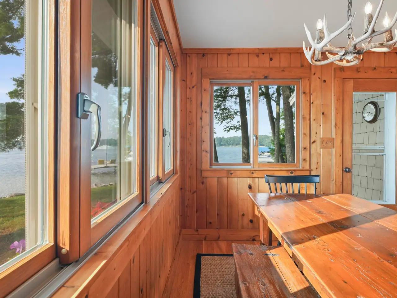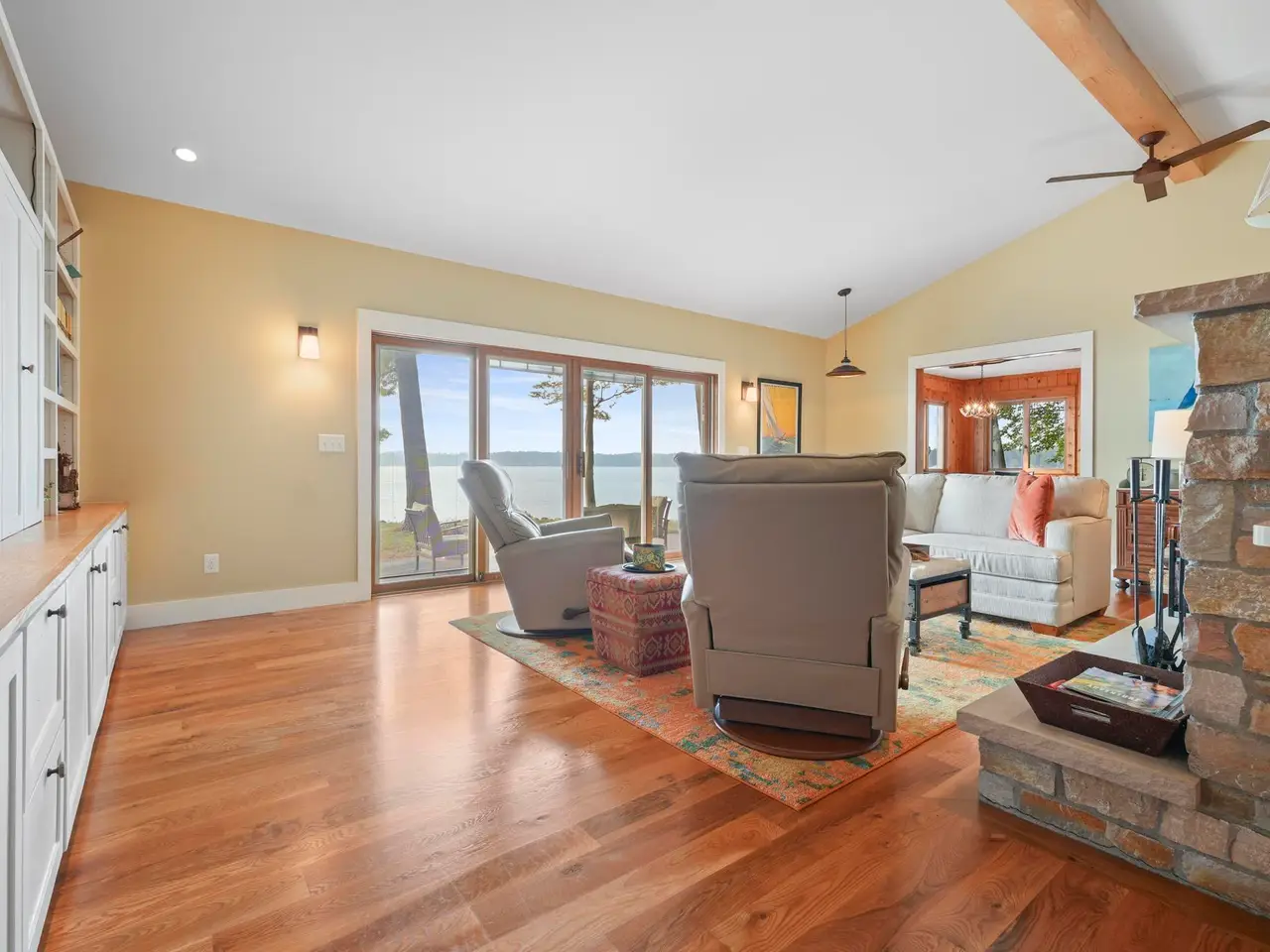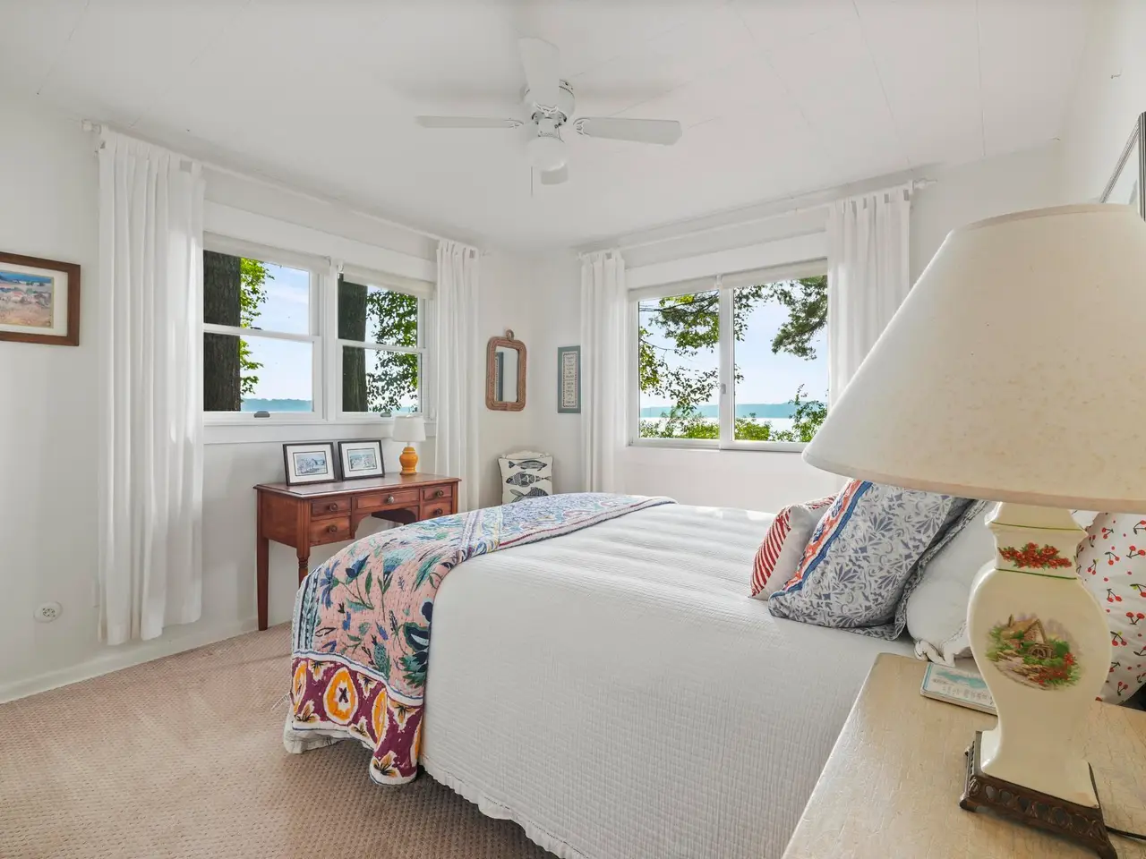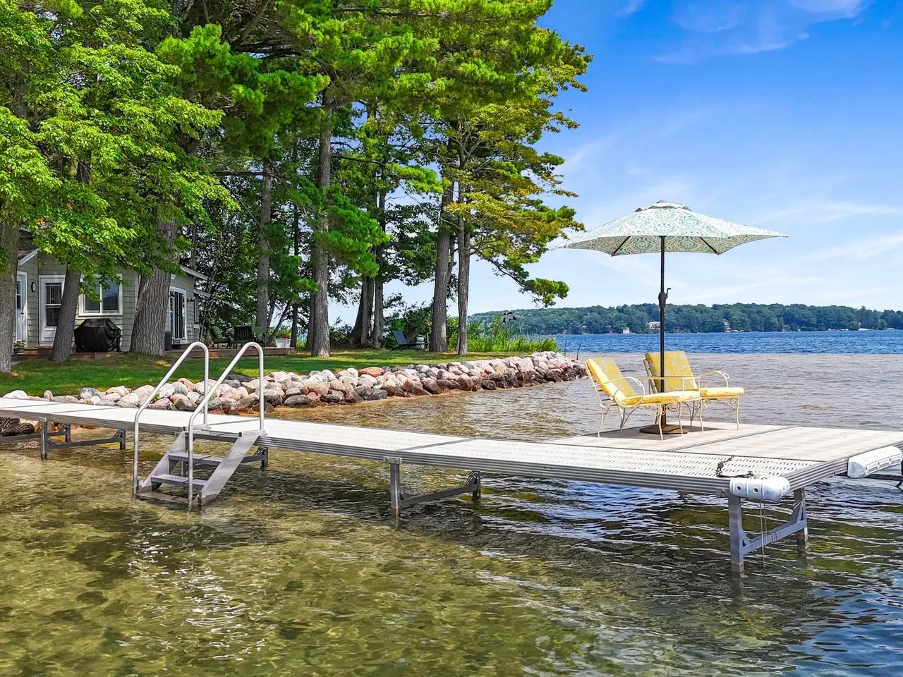 Welcome to The Point on Long Lake, one of the most extraordinary and sought-after properties in Northern Michigan. With an impressive 316 feet of private frontage and surrounded on three sides by crystal-clear water and sandy shallows, this is a truly breathtaking setting with panoramic 180-degree lake views that will take your breath away. Tucked beneath a canopy of mature, towering trees that provide just the right amount of shade and privacy, this secluded retreat is a nature lover's dream. Nesting loons return year after year, a soft breeze drifts across the point, and the waters are teeming with bass and walleye--making it one of the best fishing spots on the lake. The home offers 3 bedrooms and 2 bathrooms with a comfortable, timeless design. The vaulted living room features a soaring wood-burning fireplace clad in stacked stone, and hardwood floors run throughout the main living area. Every space is designed to bring the outside in--especially the quaint dining room with the original pine wood walls, wrapped in windows and water views. Additional amenities include an attached 2-car garage, plus a detached boat house garage for all your lake gear and toys. With three private docks on the property, you'll have space for boats, kayaks, and lakeside lounging. This is the kind of Northern Michigan property that rarely becomes available--a peaceful retreat just 8 miles from downtown Traverse City, offering both seclusion and convenience. The Point isn't just a property; it's a once-in-a-generation opportunity to own a truly special piece of Long Lake. The Point is a sanctuary, a lifestyle, and a legacy. Don't let it slip away.