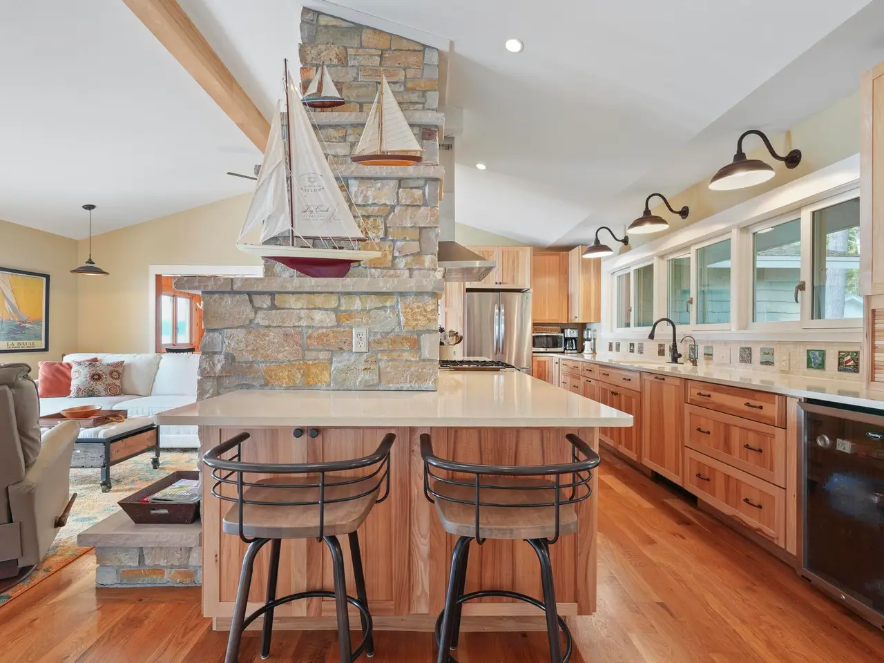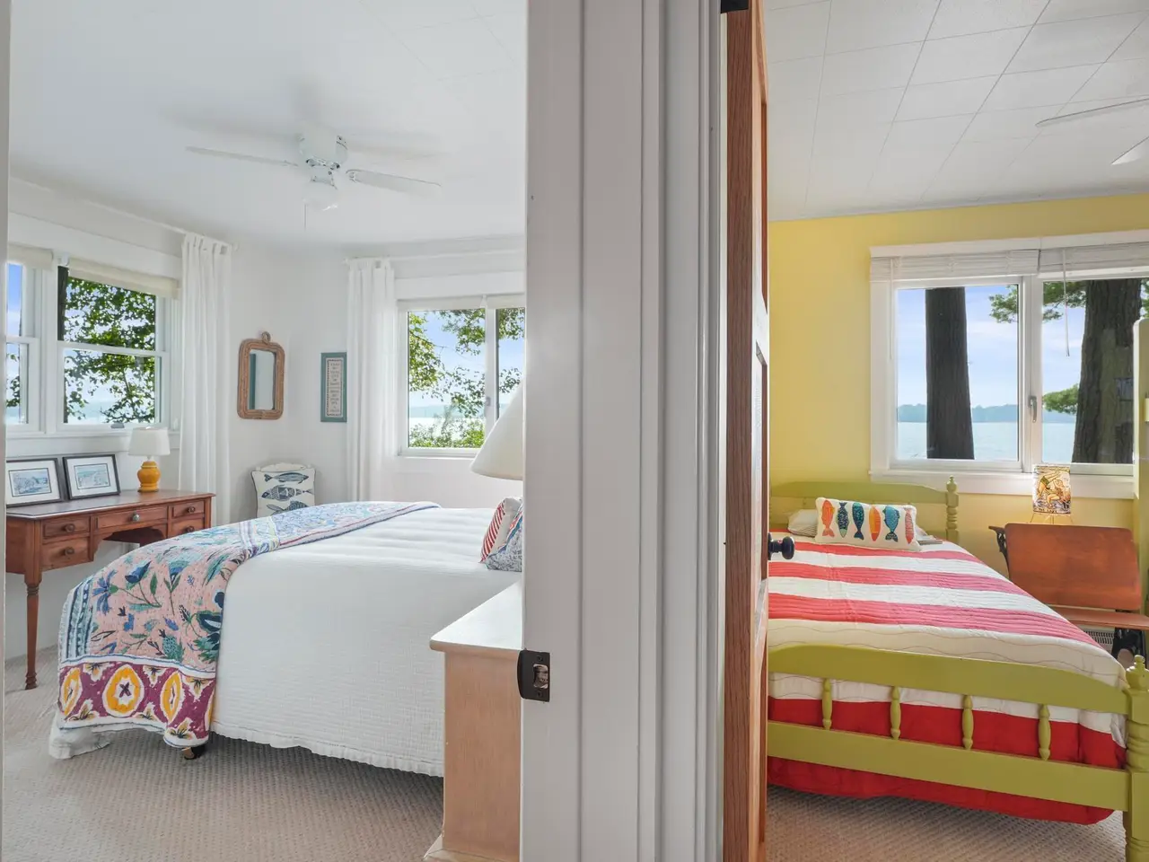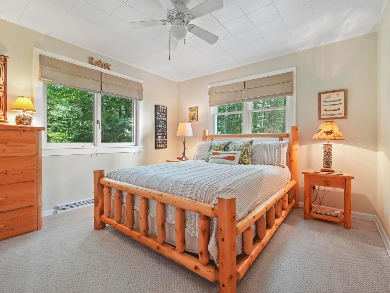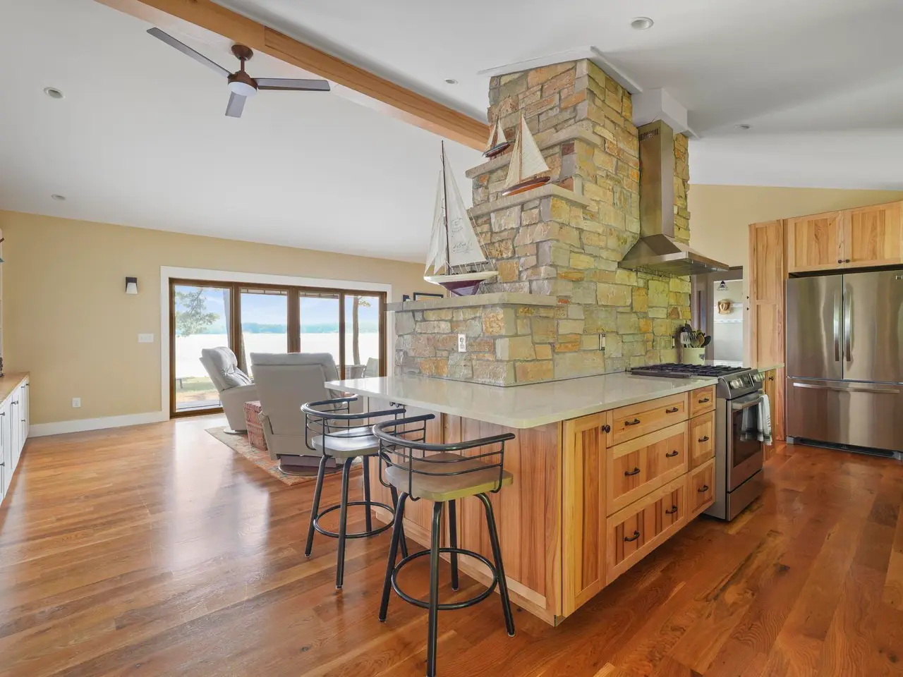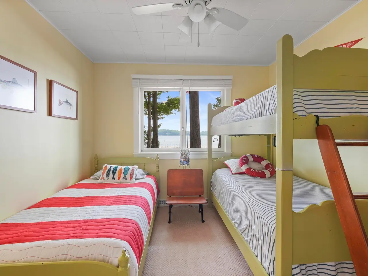 Welcome to The Point on Long Lake, one of the most extraordinary and sought-after properties in Northern Michigan. With an impressive 316 feet of private frontage and surrounded on three sides by crystal-clear water and sandy shallows, this is a truly breathtaking setting with panoramic 180-degree lake views that will take your breath away. Tucked beneath a canopy of mature, towering trees that provide just the right amount of shade and privacy, this secluded retreat is a nature lover's dream. Nesting loons return year after year, a soft breeze drifts across the point, and the waters are teeming with bass and walleye--making it one of the best fishing spots on the lake. The home offers 3 bedrooms and 2 bathrooms with a comfortable, timeless design. The vaulted living room features a soaring wood-burning fireplace clad in stacked stone, and hardwood floors run throughout the main living area. Every space is designed to bring the outside in--especially the quaint dining room with the original pine wood walls, wrapped in windows and water views. Additional amenities include an attached 2-car garage, plus a detached boat house garage for all your lake gear and toys. With three private docks on the property, you'll have space for boats, kayaks, and lakeside lounging. This is the kind of Northern Michigan property that rarely becomes available--a peaceful retreat just 8 miles from downtown Traverse City, offering both seclusion and convenience. The Point isn't just a property; it's a once-in-a-generation opportunity to own a truly special piece of Long Lake. The Point is a sanctuary, a lifestyle, and a legacy. Don't let it slip away.