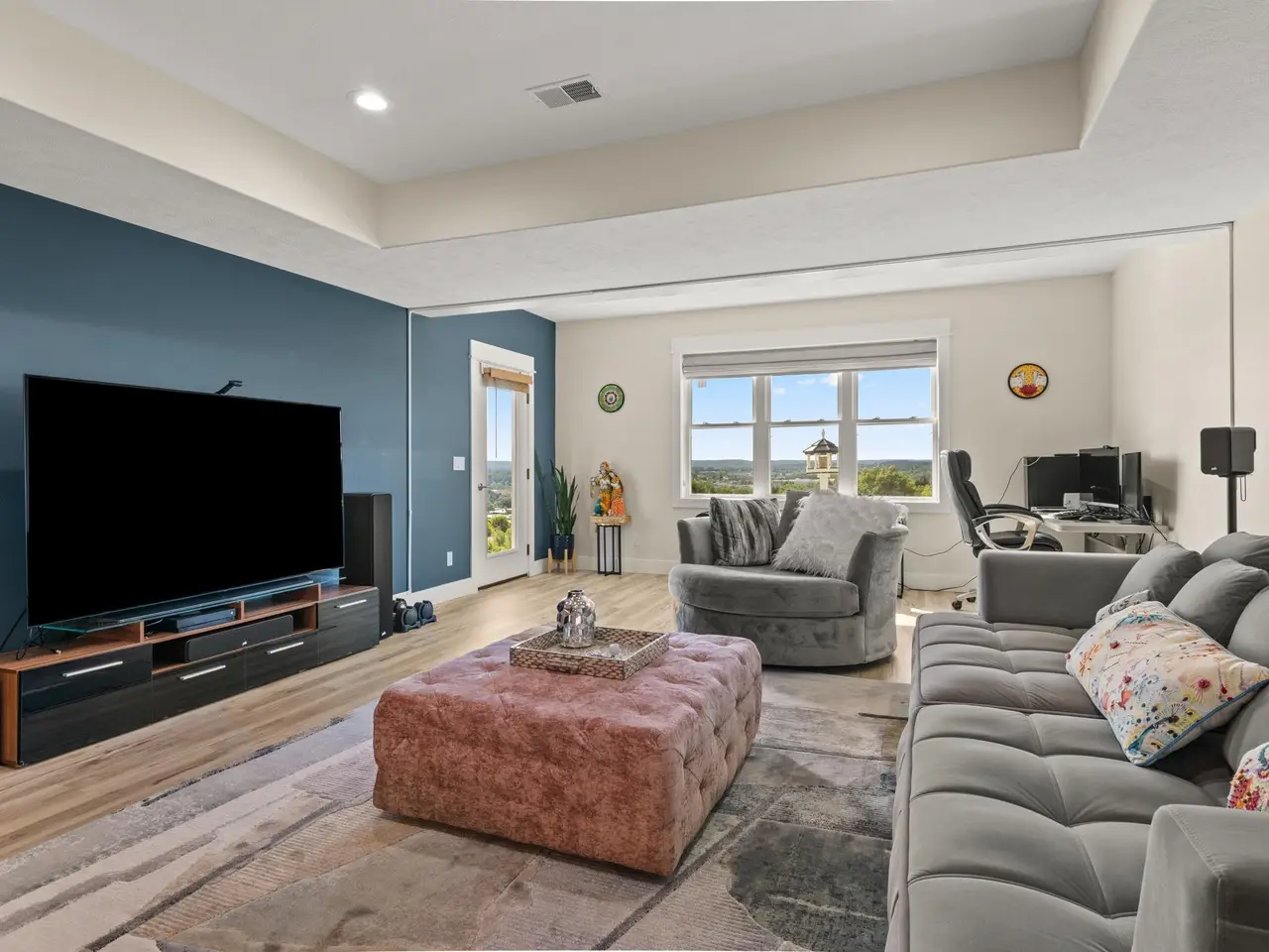 Welcome to Eagles View -- One of Traverse City's Premier Communities! This like-new, one-owner custom-built home offers the perfect blend of style, comfort, and functionality in one of Traverse City's most desirable developments. Its sweeping views make a stunning, picturesque backdrop. Thoughtfully designed with attention to detail throughout, this residence provides the ease of main-floor living in an open and inviting layout. The spacious primary suite features a private bath and a walk-in closet. The primary bedroom has a trayed ceiling to add to the luxurious look. The bright and modern kitchen is equipped with granite countertops, stainless steel appliances, a large island, a pantry, and extra shelving. The living and dining areas showcase a trayed ceiling, a stunning stone-surround gas fireplace, and double...yes, double sliding doors that open to a private rear patio -- perfect for relaxing or entertaining. Luxury vinyl plank flooring runs through the main living areas, and the home includes central air conditioning for year-round comfort. All of the bathrooms have tile flooring. The main floor also offers a convenient laundry room just off the attached two-car finished garage. The finished lower-level walk-out includes two additional bedrooms, a full bathroom, a spacious family room, a recreational area, and ample storage space. Professionally landscaped by Living Art Landscapes, the yard is equipped with irrigation and provides a serene outdoor oasis. This home is ideally located just minutes from downtown Traverse City, Munson Medical Center, shopping, schools, and numerous hiking and biking trails.