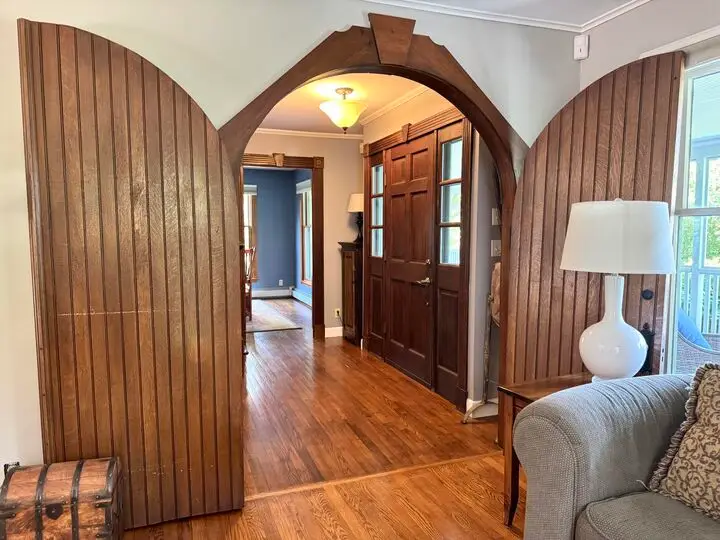 This stunning oceanfront cottage, situated on 3.85 acres at Majestic Point with views of Mount Desert Island, features breathtaking vistas and luxurious amenities throughout. The spacious 4-bedroom, 2.5-bath residence boasts a chef's kitchen equipped with a Sub Zero refrigerator, a Wolf stove, multiple sinks and a butcher block, as well as radiant heat. Three brick fireplaces add to the charm of the living room, den, and master bedroom. The expansive front porch overlooks Mount Desert Narrows and Western Bay, ideal for kayaking and paddle boarding. Additional stand alone garage is heated and insulated. The private location offers a serene setting to enjoy coastal Maine's natural beauty and recreation.