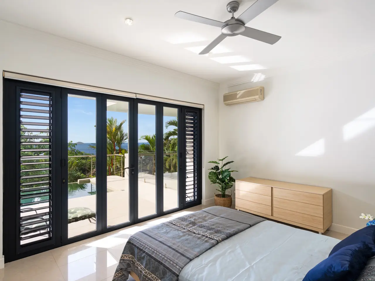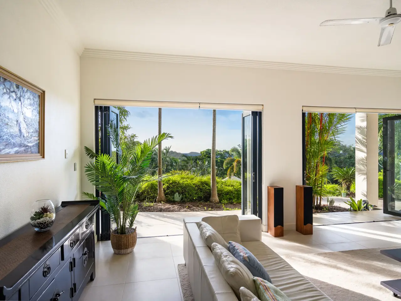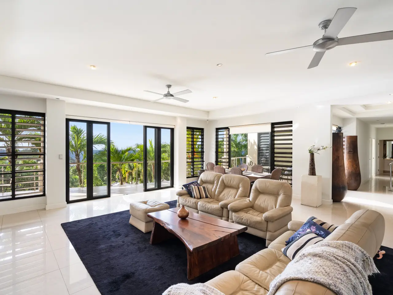 Set in a highly sought-after gated estate, affording sweeping ocean views from its elevated vantage, this exceptional two-level residence exudes understated contemporary luxury. With high-end custom finishes and generosity of scale and detail, the layout comprises multiple interior and exterior living spaces, a central courtyard, and defined bedroom wings, including an private master suite. Privately positioned and designed to capitalise on the natural light and breezes, the superior appointments and minimalist aesthetic of this outstanding property create an impressive marriage of style and functionality. - Massive floorplan set over two levels, with over 600m2 under roof - Spectacular panoramic ocean views from almost every room - Sweeping open plan living, high ceilings, abundant natural light & breezes - Kitchen with high-end appliances, ocean views & servery to balcony - Three defined bedroom wings, including large master with ensuite and WIR - Multiple living areas, 5th bedroom/study plus gym - Large swimming pool with infinity edge and stunning views - Oversized two-car garage with height for caravans, plus two-car carport - Established low-maintenance tropical gardens - Elevated 1,450 square meter block with uninterrupted ocean views - Exclusive location in secure gated estate, pathway access to beach