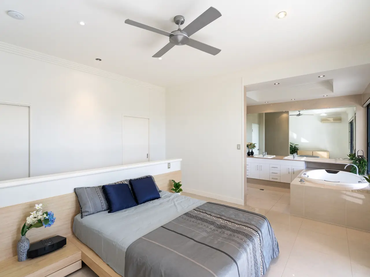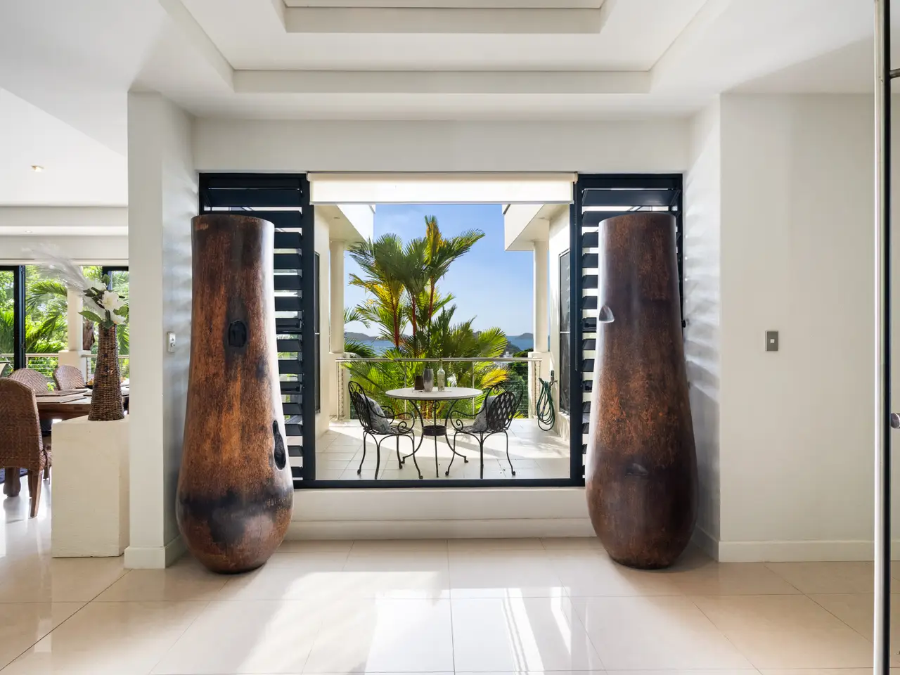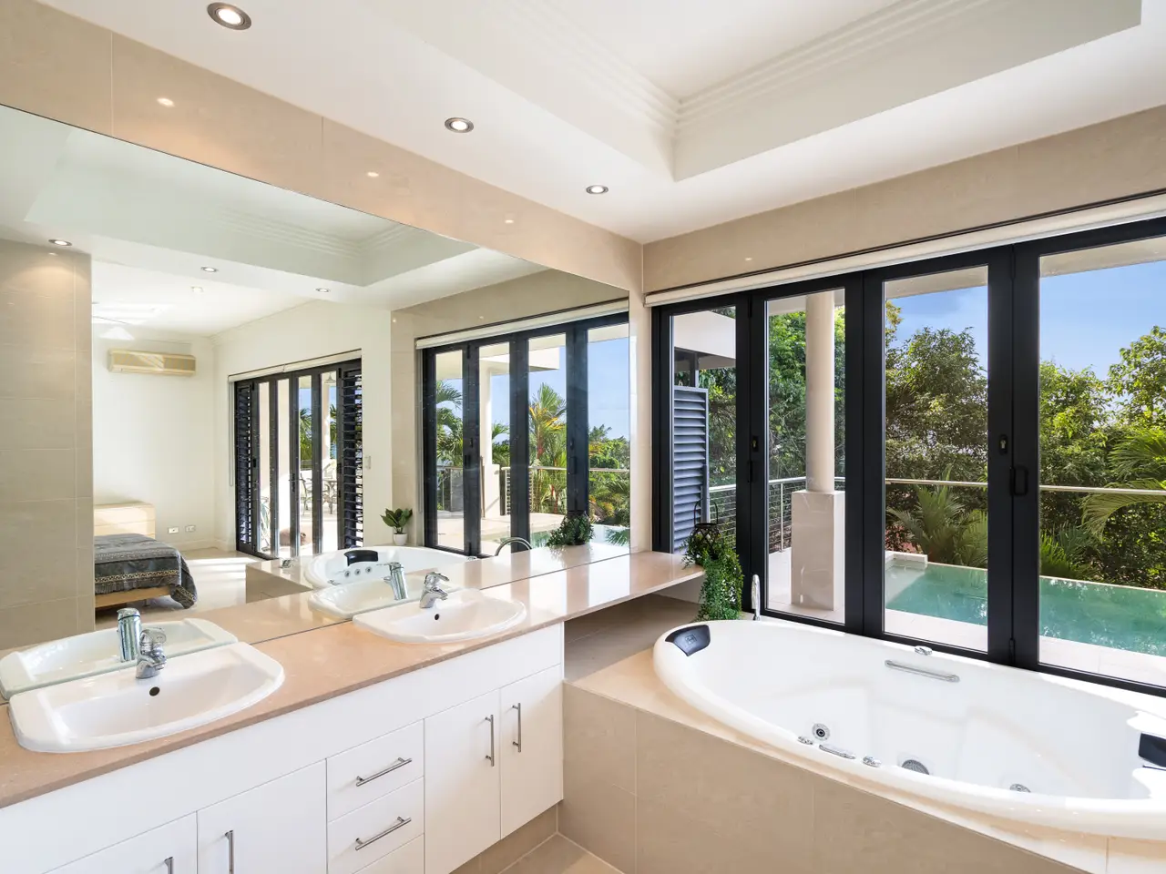 Set in a highly sought-after gated estate, affording sweeping ocean views from its elevated vantage, this exceptional two-level residence exudes understated contemporary luxury. With high-end custom finishes and generosity of scale and detail, the layout comprises multiple interior and exterior living spaces, a central courtyard, and defined bedroom wings, including an private master suite. Privately positioned and designed to capitalise on the natural light and breezes, the superior appointments and minimalist aesthetic of this outstanding property create an impressive marriage of style and functionality. - Massive floorplan set over two levels, with over 600m2 under roof - Spectacular panoramic ocean views from almost every room - Sweeping open plan living, high ceilings, abundant natural light & breezes - Kitchen with high-end appliances, ocean views & servery to balcony - Three defined bedroom wings, including large master with ensuite and WIR - Multiple living areas, 5th bedroom/study plus gym - Large swimming pool with infinity edge and stunning views - Oversized two-car garage with height for caravans, plus two-car carport - Established low-maintenance tropical gardens - Elevated 1,450 square meter block with uninterrupted ocean views - Exclusive location in secure gated estate, pathway access to beach