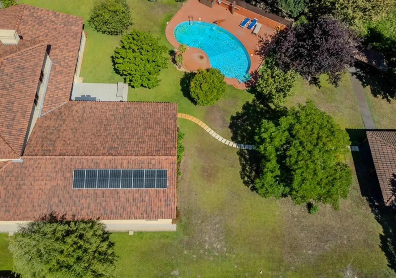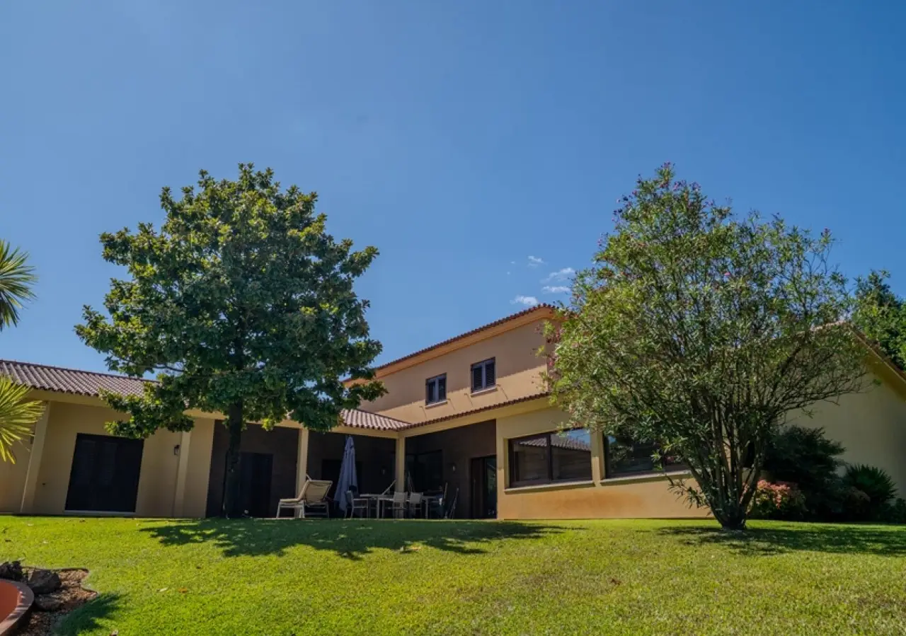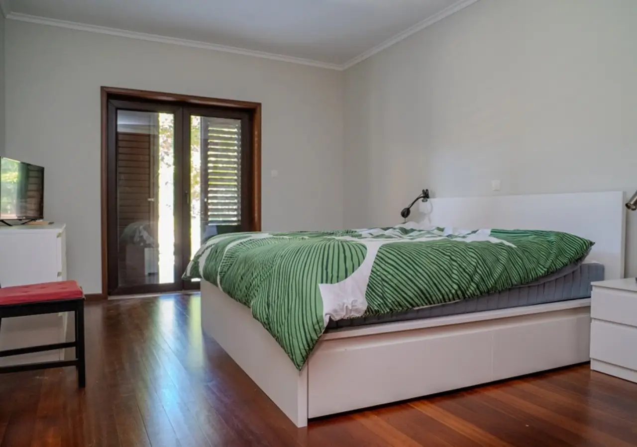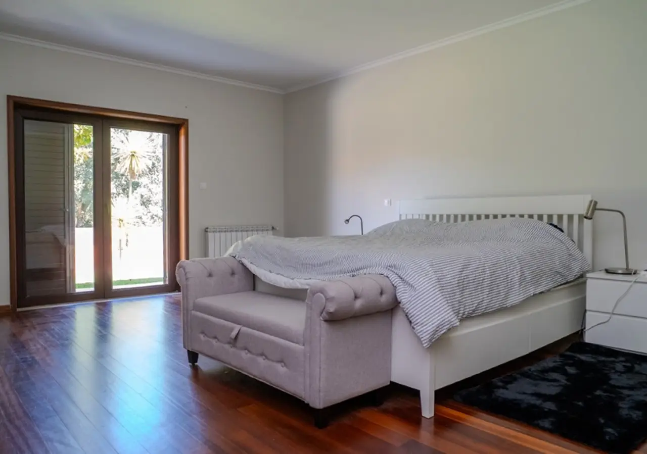 Fantastic villa with garden and swimming pool for sale in Trofa. The house is mainly on the first floor, with a generous living room with a fireplace, a guest bathroom and a kitchen with a pantry. This social area is complemented by a pleasant lawned garden with a swimming pool, as well as an outdoor dining area. As for the private area, the villa has five bedrooms, two of which are en-suite. On the upper floor there is a games room with a support bathroom. Set on a magnificent plot, this villa is ideal for outdoor leisure time with family or friends. 15 minutes from Porto and Francisco Sá Carneiro Airport. CHARACTERISTICS: Plot Area: 3 000 m2 | 32 292 sq ft Deployment Area: 443 m2 | 4 768 sq ft Building Area: 458 m2 | 4 930 sq ft Bedrooms: 5 Bathrooms: 5 Garage: 2 Energy efficiency: B FEATURES: House clad in hood; Support porch with barbecue; Solar panels; Central heating with heat pump; Borehole for pool and garden irrigation; Outdoor laundry, storage and space for technical area; Closed garage for 2 cars.