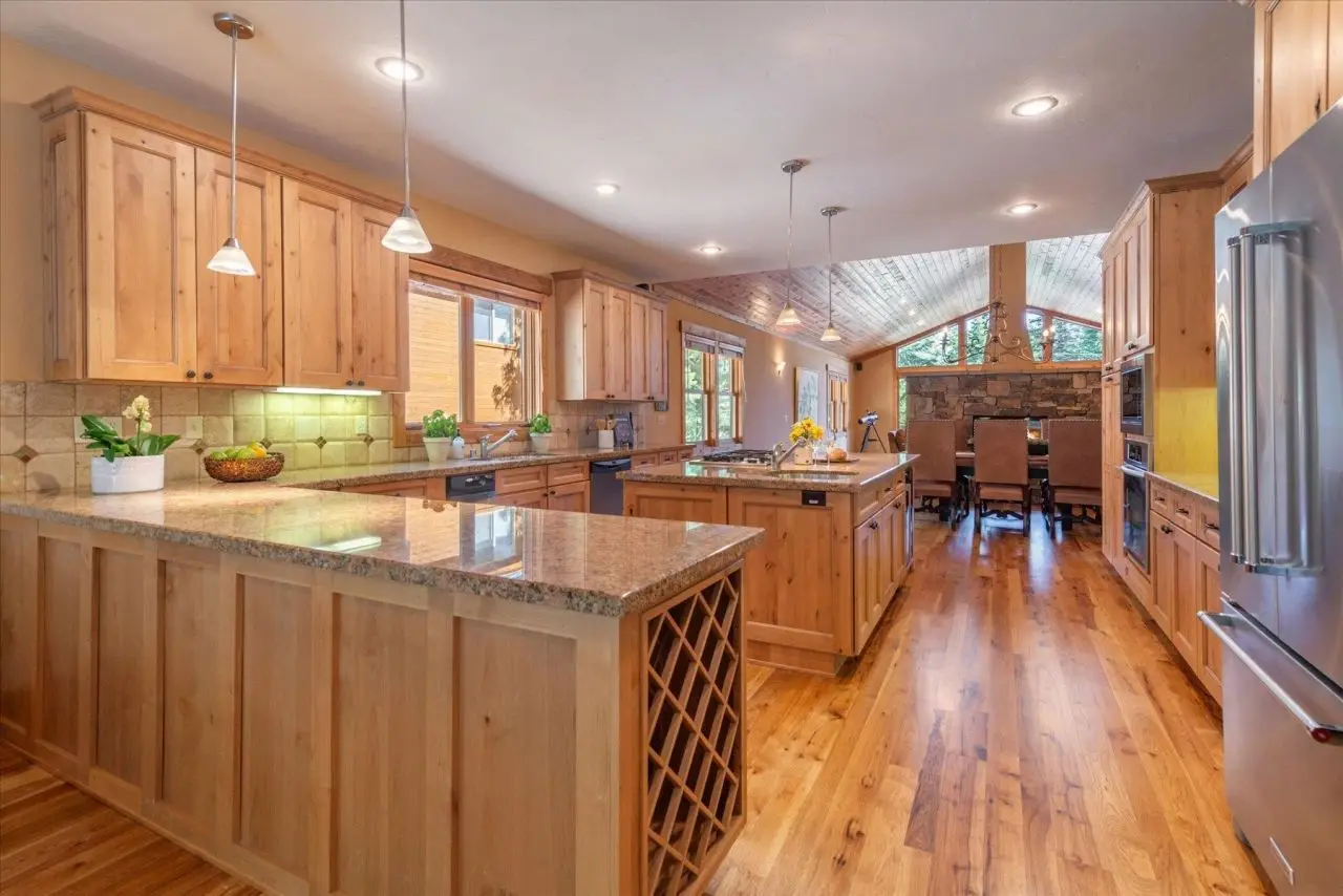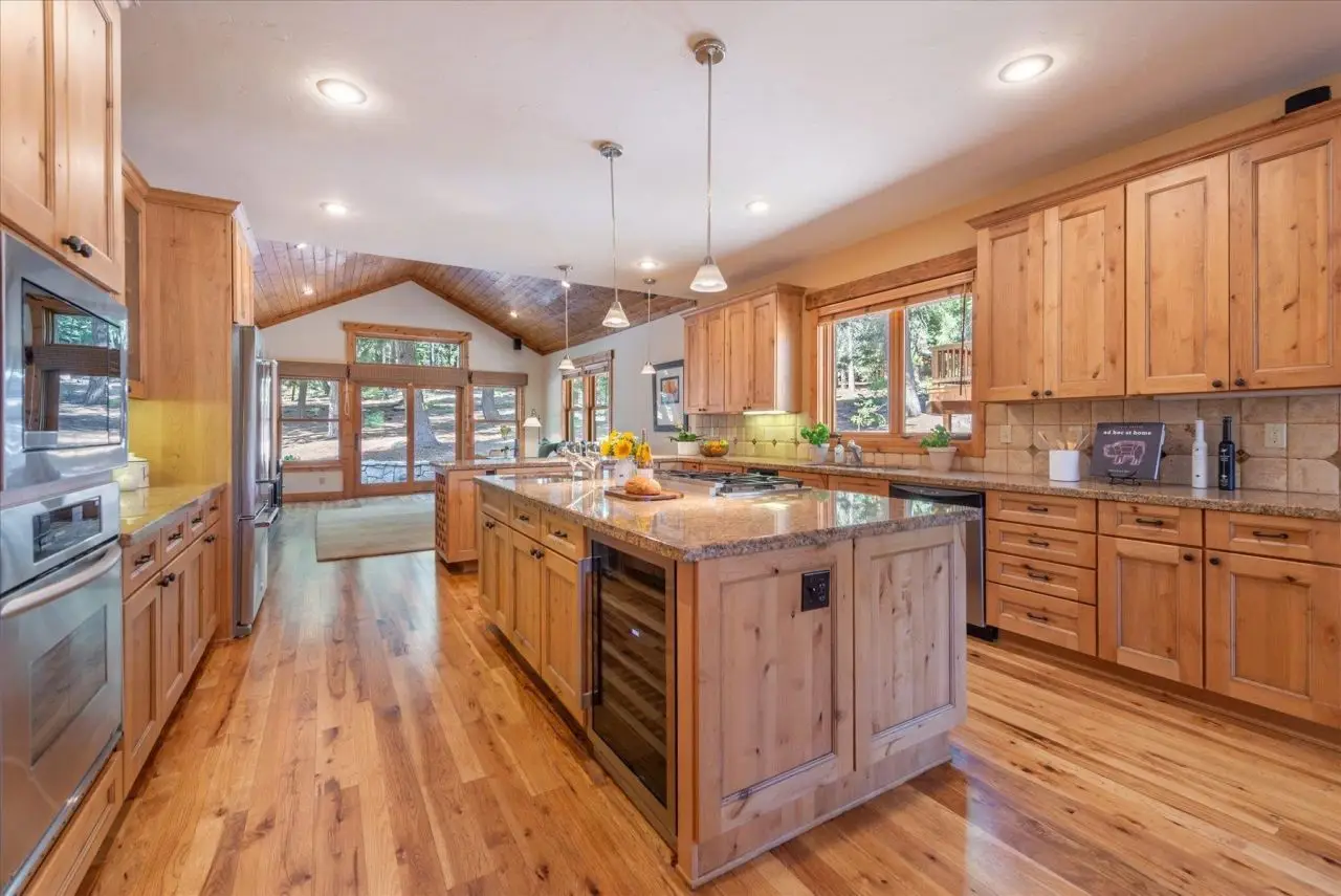 Classic mountain architecture, custom design and craftsman finishes bring style and warm ambiance to this beautiful retreat. Enjoy the private enclave of 13701 Hansel Avenue, located in Tahoe Donner, Truckee. This spacious, large scale chalet offers plenty of space for full time or vacation living. Designed for mostly single level living, enjoy the beautiful great room with its gorgeous, granite fireplace, hickory flooring, large dining area and stunning chef's kitchen highlighting extensive use of granite countertops. Relax and enjoy the family room and its easy access to the serene rear, new deck, landscaped grounds and peaceful, private setting. You'll love watching the alpenglow from the large spa! The primary suite brings your own deck access, a large bathroom and big walk-in closet. A second guest suite and third bedroom plus bathroom are on this main living level. The lower level brings a large mudroom, full laundry facilities, the perfect bunk room for kids (or working remotely!) and a guest bathroom. An added plus - the extensive AV system will delight! Year 'round, you'll love the oversized garage with plenty of storage areas and easy access. Polished to perfection and offering stunning exterior appeal with a turnkey opportunity, this is the mountain escape your family has been awaiting!