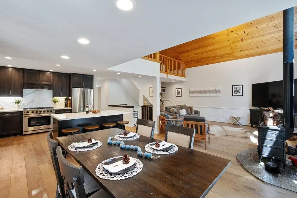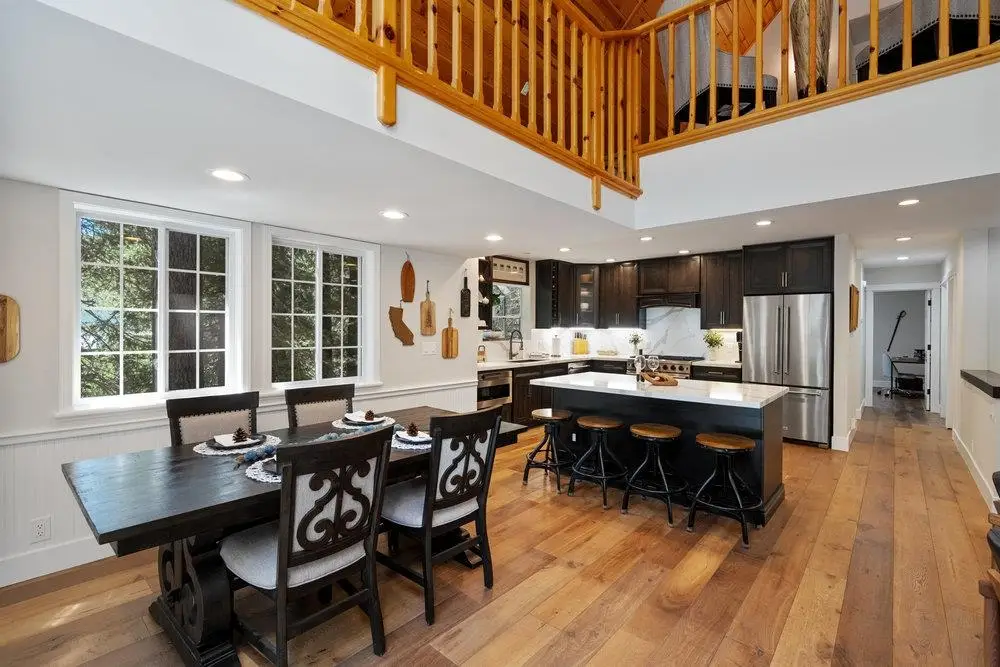 60K PRICE REDUCTION!! Nestled in a picturesque forested setting, this stunning mountain modern home exemplifies both elegance and comfort. Meticulously updated and maintained by its owners, the residence boasts remarkable design elements throughout. Upon entering, you are greeted by a sun-drenched great room featuring beautiful hardwood flooring, soaring vaulted ceilings, and an array of custom touches that enhance the overall aesthetic. The modern kitchen is a culinary delight, equipped to satisfy the needs of any chef. With five spacious bedrooms, including two ensuite options, and four full baths, there is ample room for family and guests alike. Additional highlights of the home include a versatile loft, a convenient laundry room, a relaxing hot tub, and generous storage options, all complemented by an oversized garage. The back deck offers serene forest views, creating a perfect space for relaxation and outdoor enjoyment. The property adjoins a greenbelt, providing an extra layer of privacy, while the flat, level driveway ensures easy access during winter months. As a member of the Tahoe Donner Homeowners Association, residents can take advantage of the spectacular four-season amenities that enhance the overall living experience.