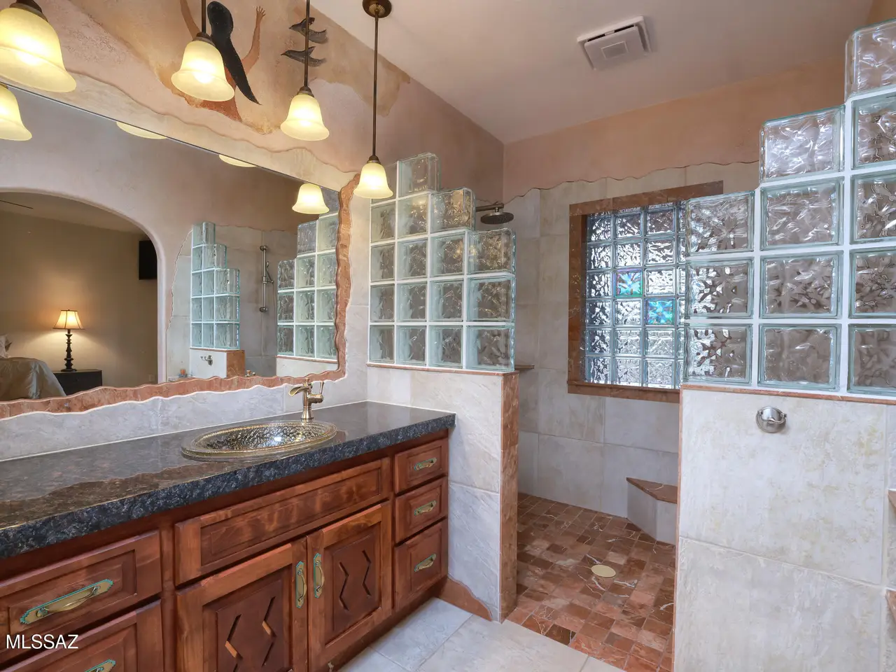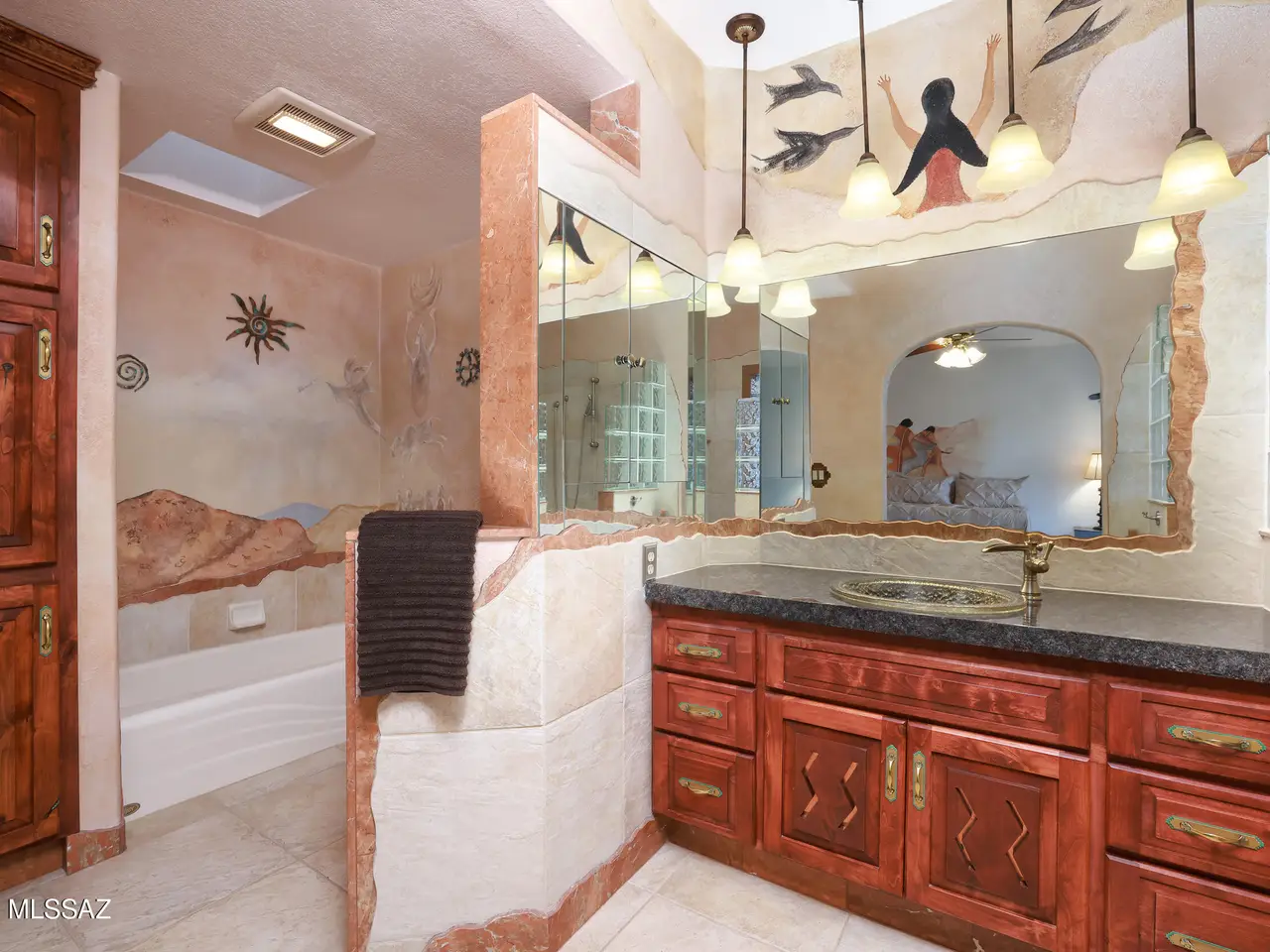 Beautiful, Southwest style block home showcases quality craftsmanship & decorative finishes. Incredible views of the Catalina & Rincon Mtns on 3.3 acres. 2 Owners' Suite's each with private sitting room & full baths, plus 2 add'l bedrooms & baths. Kitchen has alder cabinets, custom hardware, double ovens, 2 stovetops & more. Spacious office with private entry. Oversized 3-car garage with laundry & large storage room. Backyard, an entertainer's dream with a sparkling pool, poolside ramada, outdoor shower, Blackstone grill, covered patios, pizza oven & garden shed. Beyond the enclosed yard, discover an Artist Studio, Chicken Coop & Workshop/4th Garage. Zoned as Horse Property. Near Saguaro National Monument & Agua Caliente parks, golf, hiking & biking. Tanque Verde Schools. Low HOA