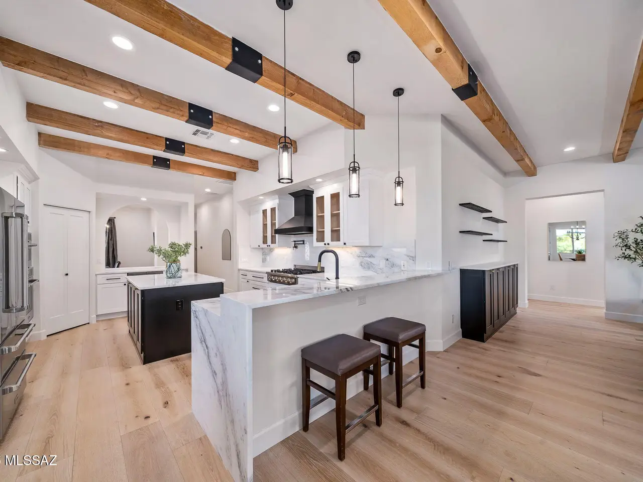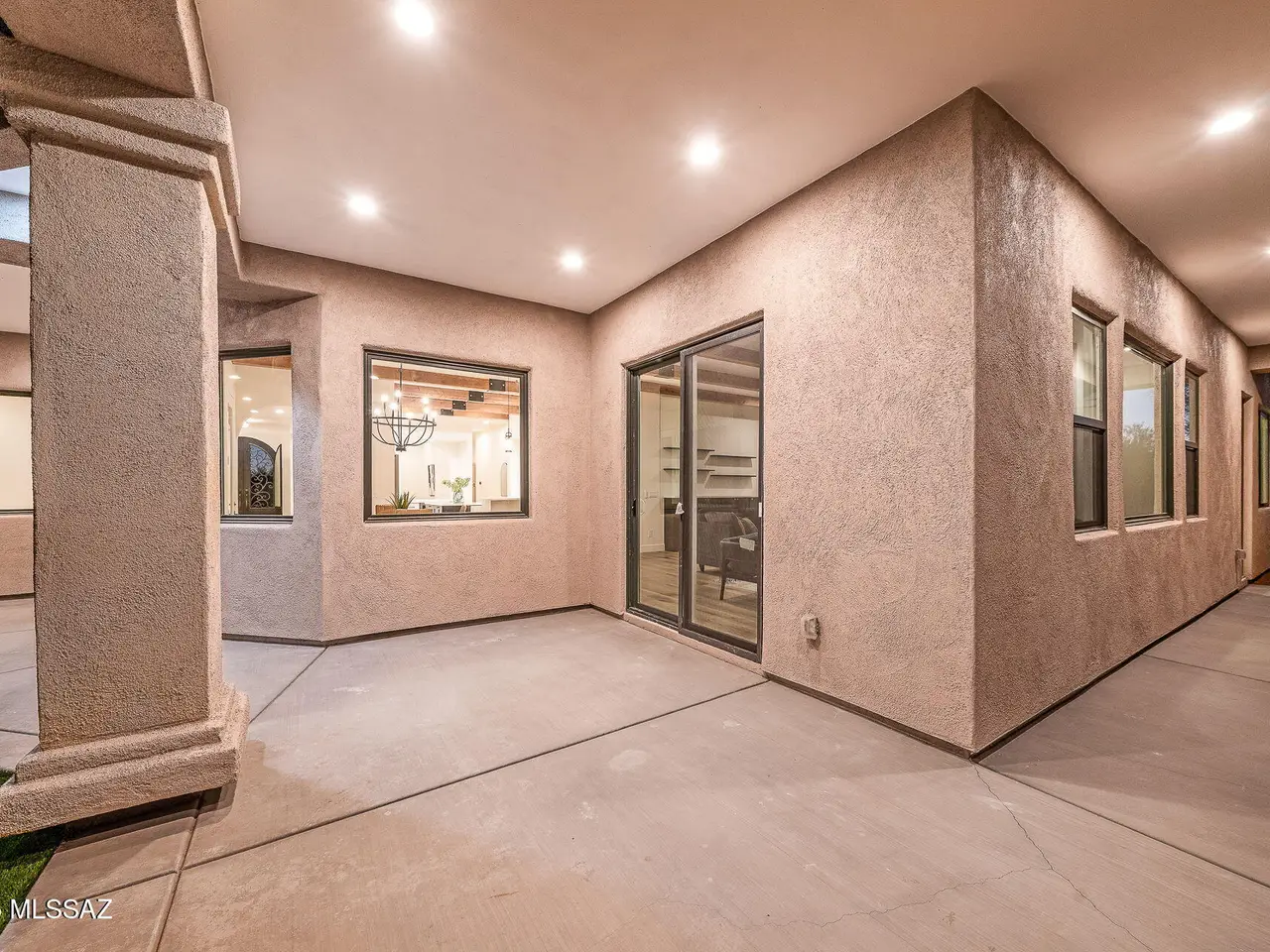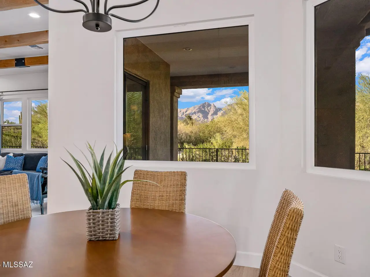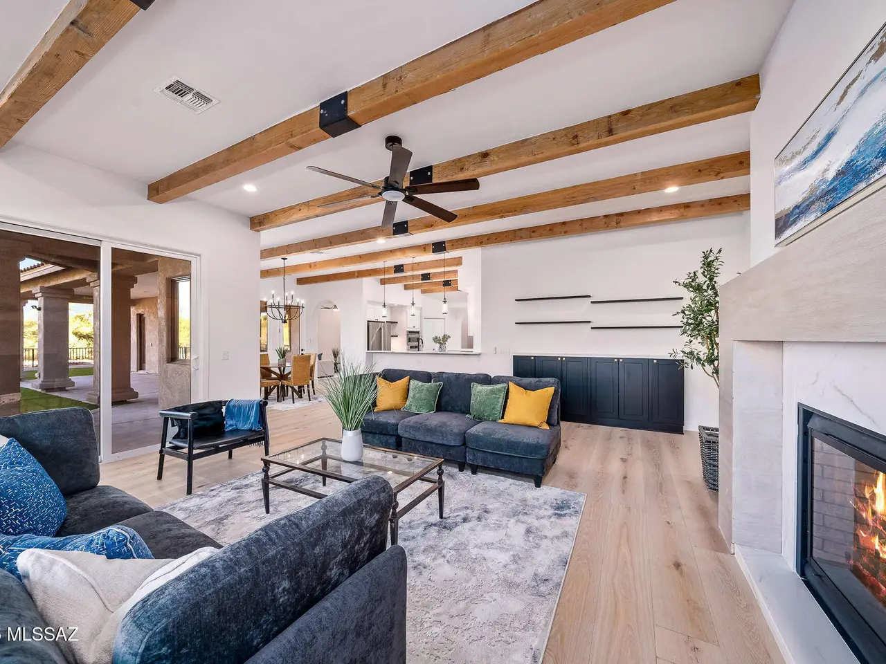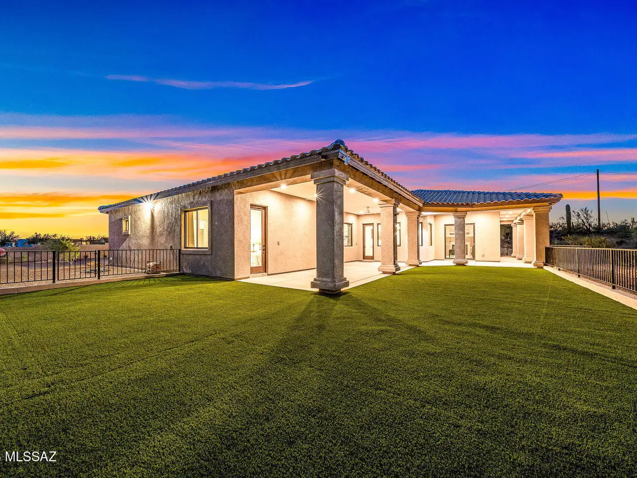 Discover refined desert living in this brand-new luxury residence perfectly situated within Pontatoc Ranch in the Catalina Foothills. Designed for today's discerning buyer, this contemporary masterpiece combines timeless elegance with modern sophistication, offering the perfect balance of privacy, style, and convenience. Set on a 1.03-acre private lot, the home makes an impressive first impression with its expansive paver driveway, mission-tile roof, and a custom iron entry door that sets the tone for the exceptional craftsmanship inside. Step into a spacious, open-concept floor plan with no interior steps, soaring ceilings, and walls of glass. Rich engineered wood flooring and exposed beams add warmth and character throughout. The 3,696 sq. ft. layout offers 5 bedrooms and 5 baths,