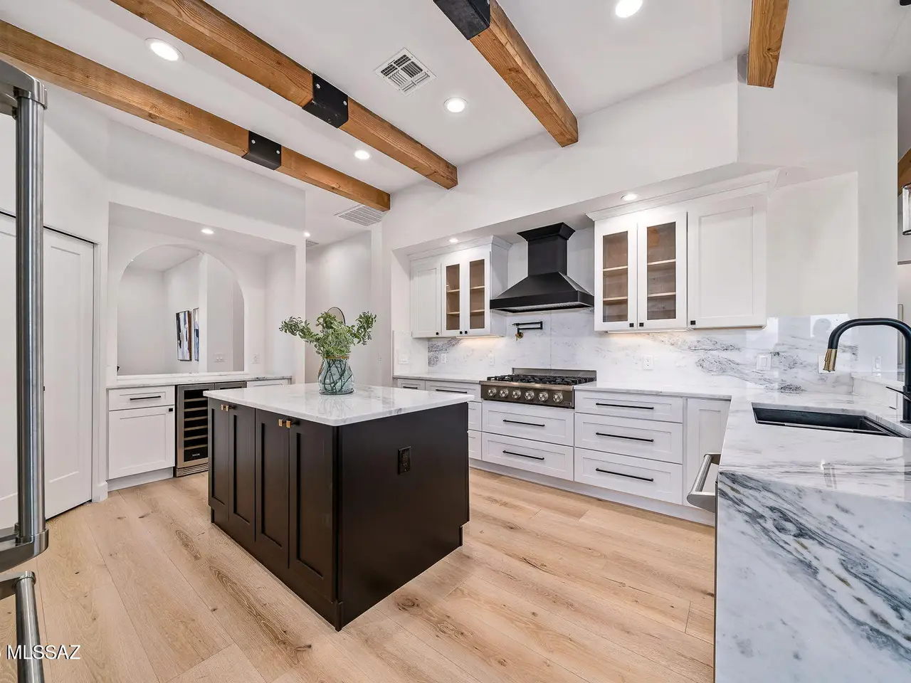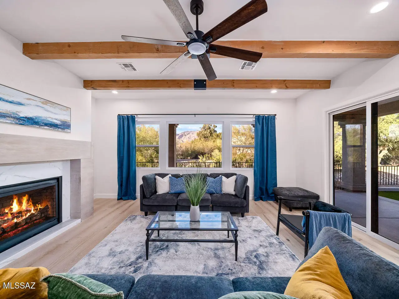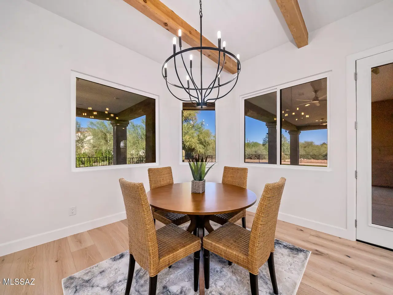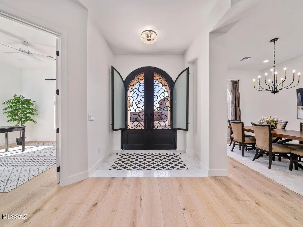 Discover refined desert living in this brand-new luxury residence perfectly situated within Pontatoc Ranch in the Catalina Foothills. Designed for today's discerning buyer, this contemporary masterpiece combines timeless elegance with modern sophistication, offering the perfect balance of privacy, style, and convenience. Set on a 1.03-acre private lot, the home makes an impressive first impression with its expansive paver driveway, mission-tile roof, and a custom iron entry door that sets the tone for the exceptional craftsmanship inside. Step into a spacious, open-concept floor plan with no interior steps, soaring ceilings, and walls of glass. Rich engineered wood flooring and exposed beams add warmth and character throughout. The 3,696 sq. ft. layout offers 5 bedrooms and 5 baths,
