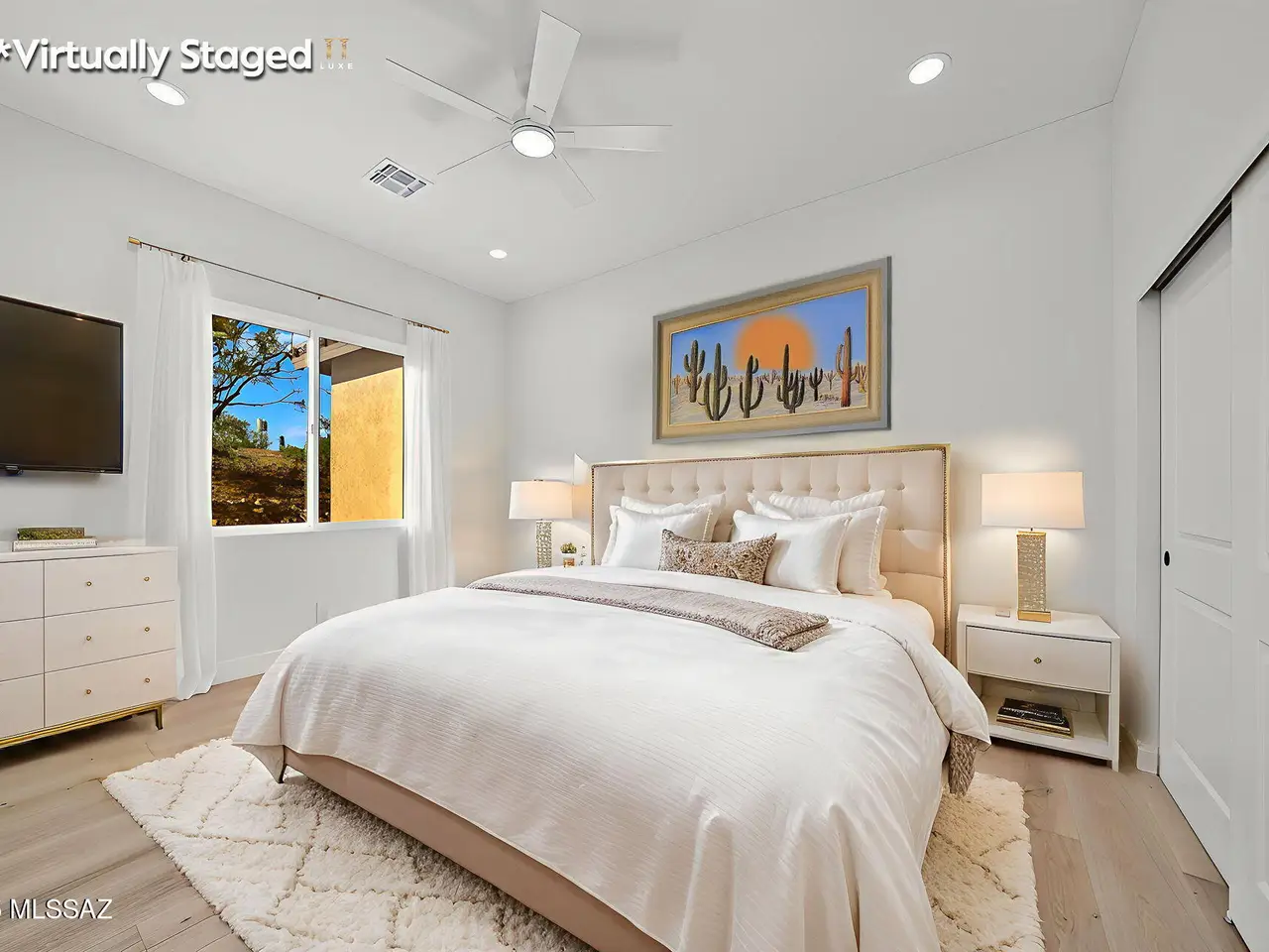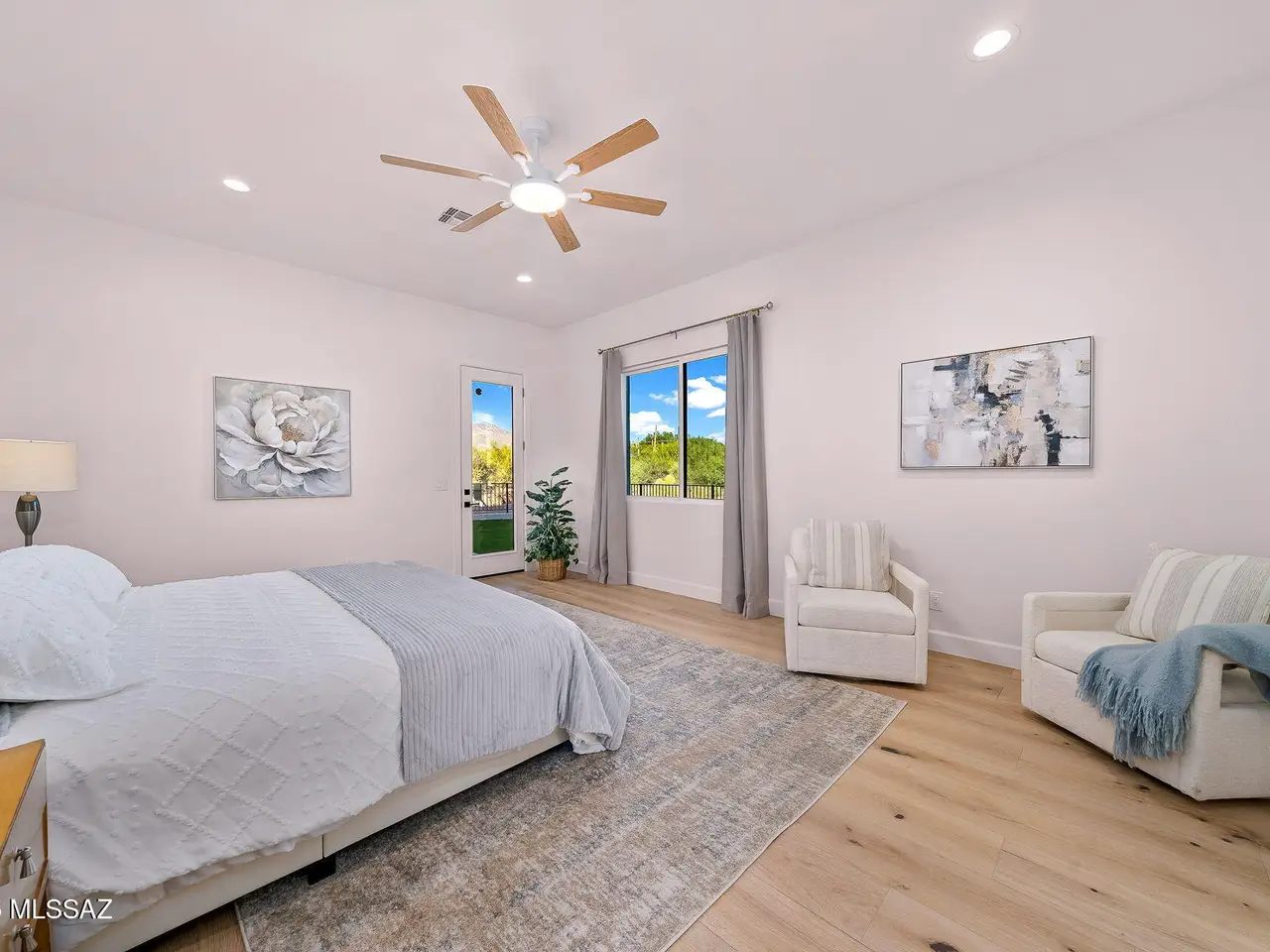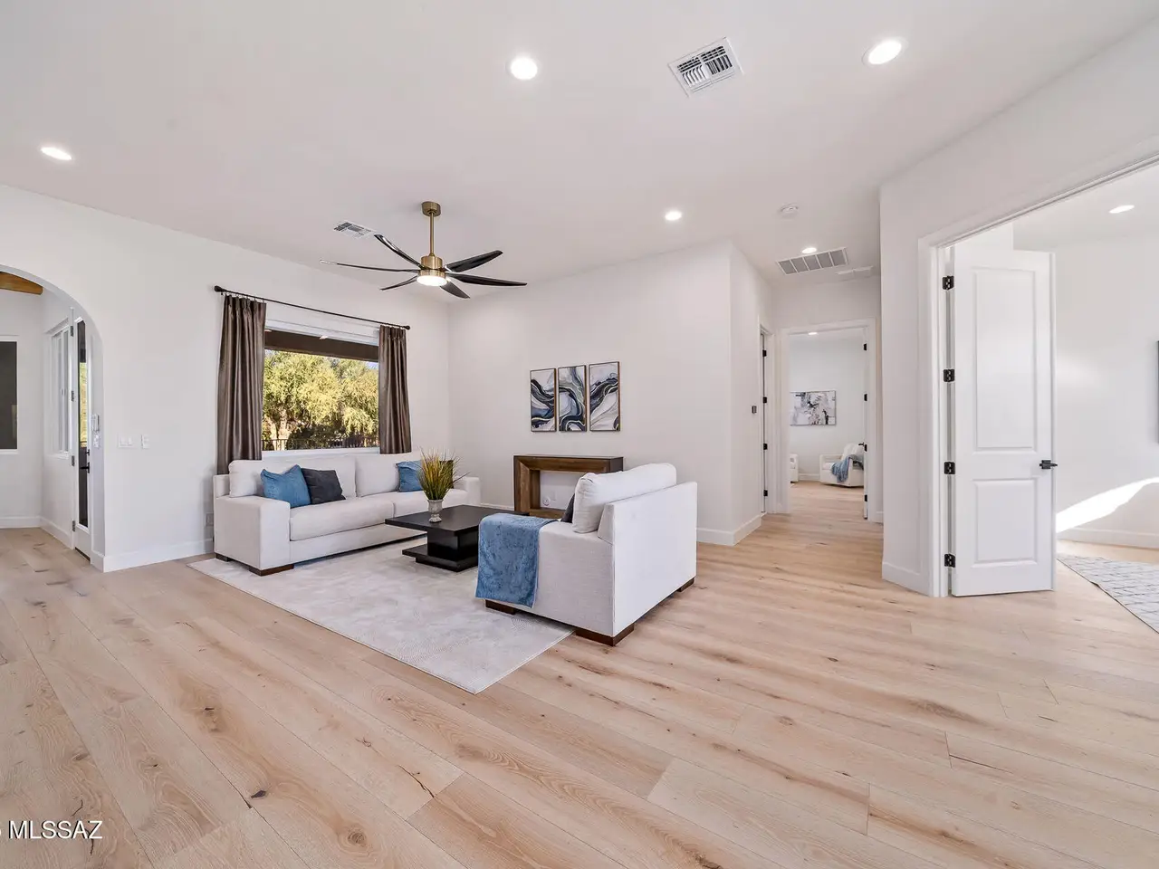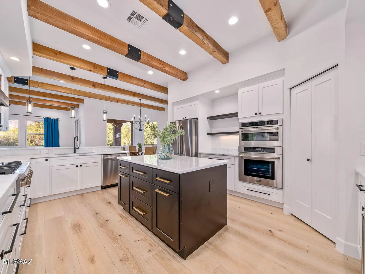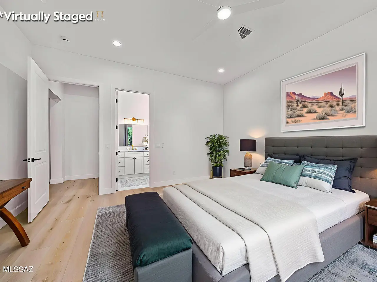 Discover refined desert living in this brand-new luxury residence perfectly situated within Pontatoc Ranch in the Catalina Foothills. Designed for today's discerning buyer, this contemporary masterpiece combines timeless elegance with modern sophistication, offering the perfect balance of privacy, style, and convenience. Set on a 1.03-acre private lot, the home makes an impressive first impression with its expansive paver driveway, mission-tile roof, and a custom iron entry door that sets the tone for the exceptional craftsmanship inside. Step into a spacious, open-concept floor plan with no interior steps, soaring ceilings, and walls of glass. Rich engineered wood flooring and exposed beams add warmth and character throughout. The 3,696 sq. ft. layout offers 5 bedrooms and 5 baths,