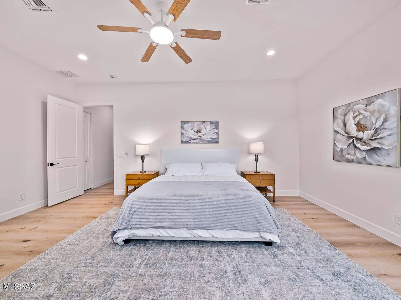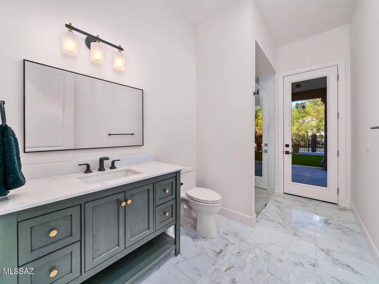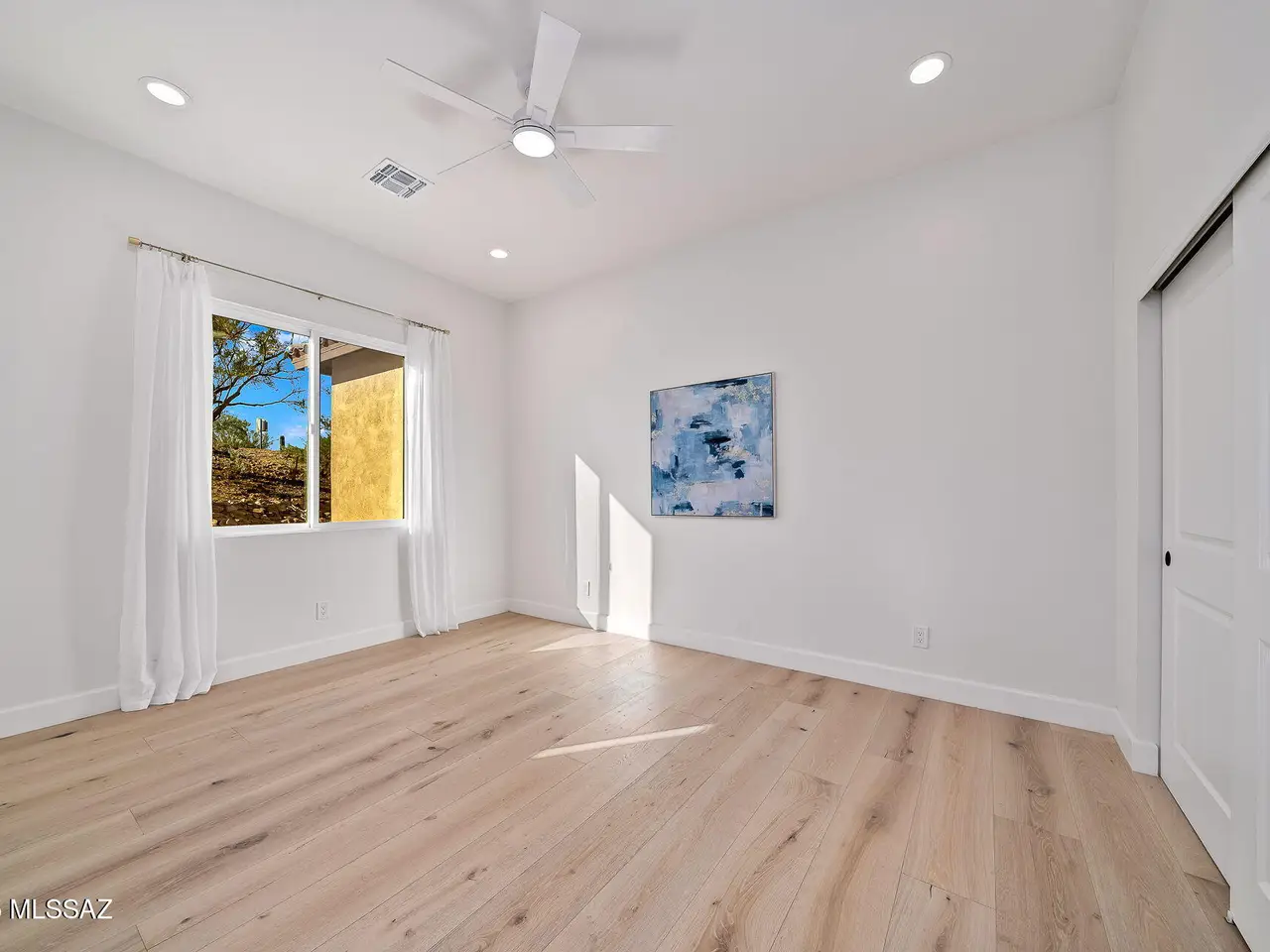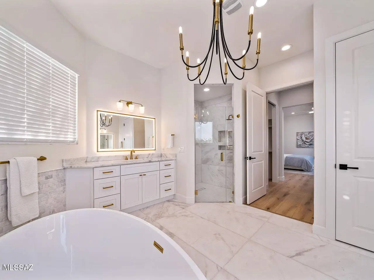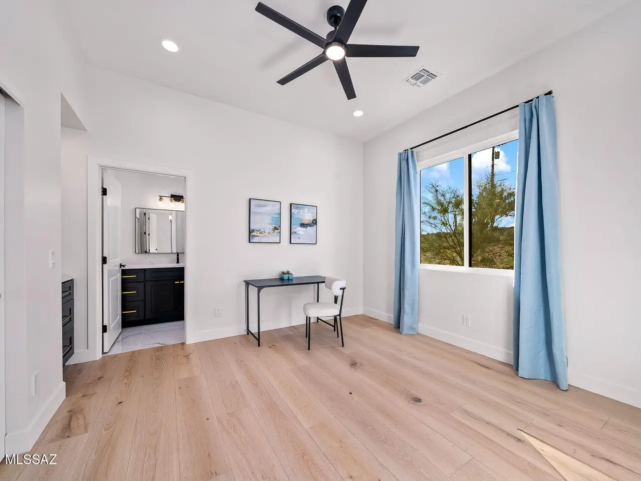 Discover refined desert living in this brand-new luxury residence perfectly situated within Pontatoc Ranch in the Catalina Foothills. Designed for today's discerning buyer, this contemporary masterpiece combines timeless elegance with modern sophistication, offering the perfect balance of privacy, style, and convenience. Set on a 1.03-acre private lot, the home makes an impressive first impression with its expansive paver driveway, mission-tile roof, and a custom iron entry door that sets the tone for the exceptional craftsmanship inside. Step into a spacious, open-concept floor plan with no interior steps, soaring ceilings, and walls of glass. Rich engineered wood flooring and exposed beams add warmth and character throughout. The 3,696 sq. ft. layout offers 5 bedrooms and 5 baths,