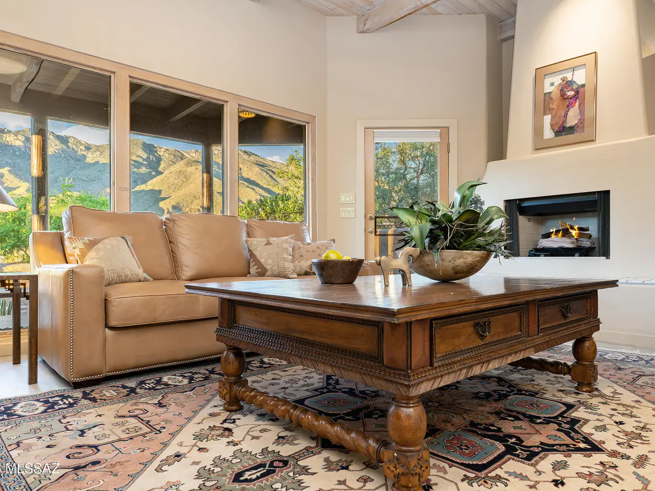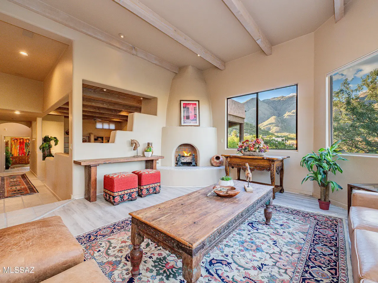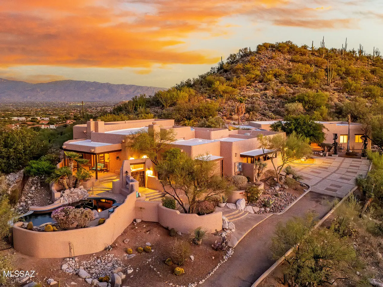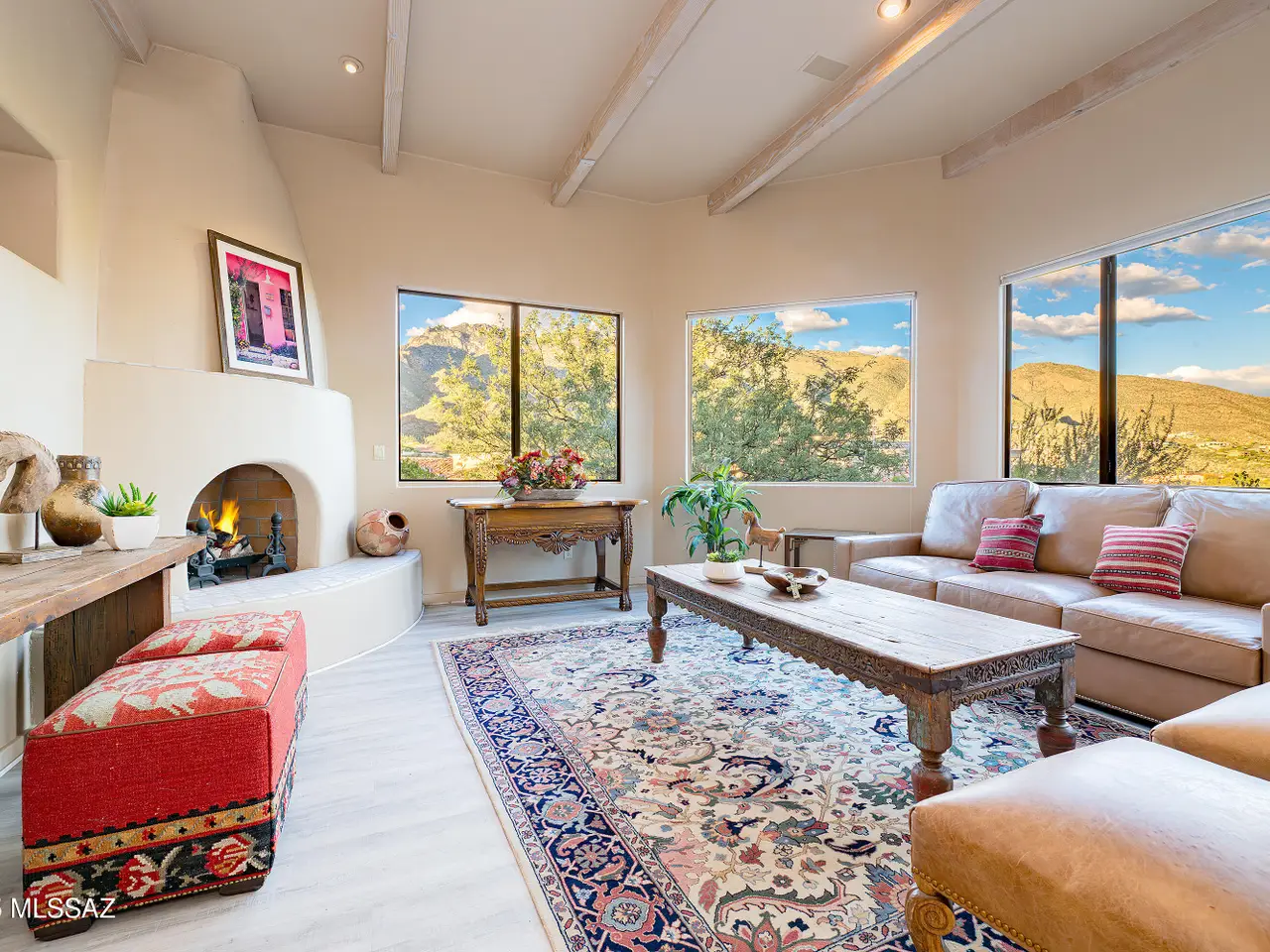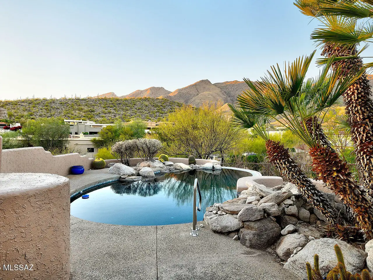 Nestled in the prestigious Alta Vista community, this exceptional residence sits atop a 1.21-acre lot, offering breathtaking mountain views. The main home spans 2,983 sq ft, complemented by a spacious 1,559-sq-ft guest house and a separate private office with its own entrance. This home features multiple living spaces, 5 bedrooms, 5 bathrooms, an office, and bonus room, providing ample space for family and guests. Many charming details, including soaring ceilings, exposed beams, and four fireplaces, create an inviting yet refined ambiance. Enjoy seamless indoor-outdoor living with two serene courtyards, multiple covered patios, and a sparkling pool. Located within the Catalina Foothills School District and just moments from premier golf, shopping, dining, and hiking.
