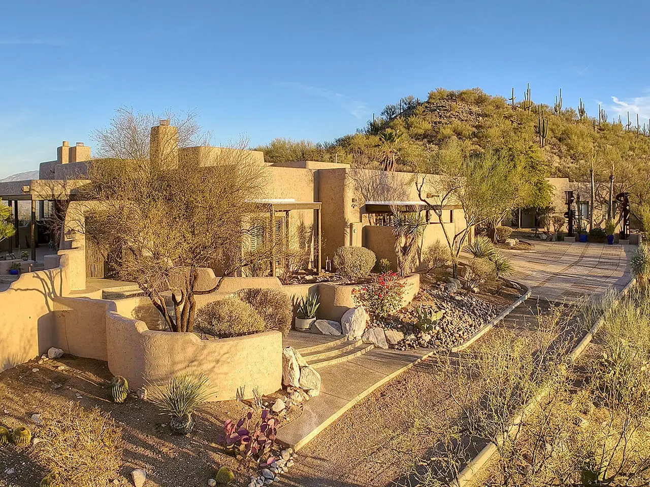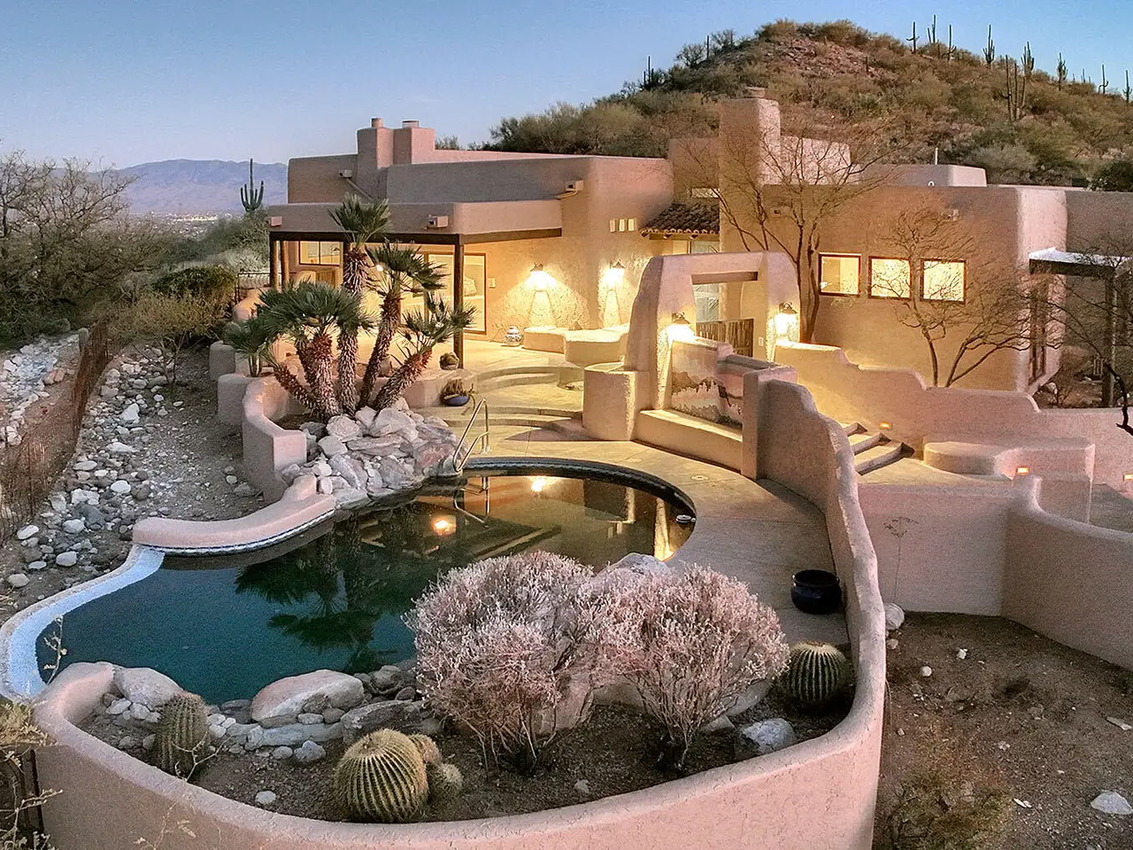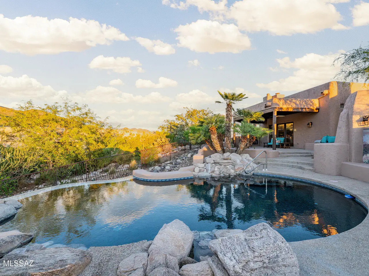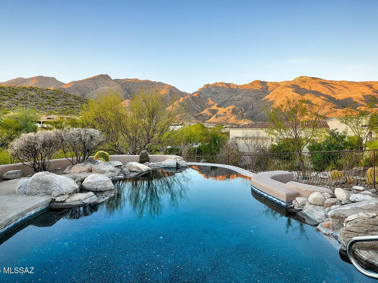 Nestled in the prestigious Alta Vista community, this exceptional residence sits atop a 1.21-acre lot, offering breathtaking mountain views. The main home spans 2,983 sq ft, complemented by a spacious 1,559-sq-ft guest house and a separate private office with its own entrance. This home features multiple living spaces, 5 bedrooms, 5 bathrooms, an office, and bonus room, providing ample space for family and guests. Many charming details, including soaring ceilings, exposed beams, and four fireplaces, create an inviting yet refined ambiance. Enjoy seamless indoor-outdoor living with two serene courtyards, multiple covered patios, and a sparkling pool. Located within the Catalina Foothills School District and just moments from premier golf, shopping, dining, and hiking.