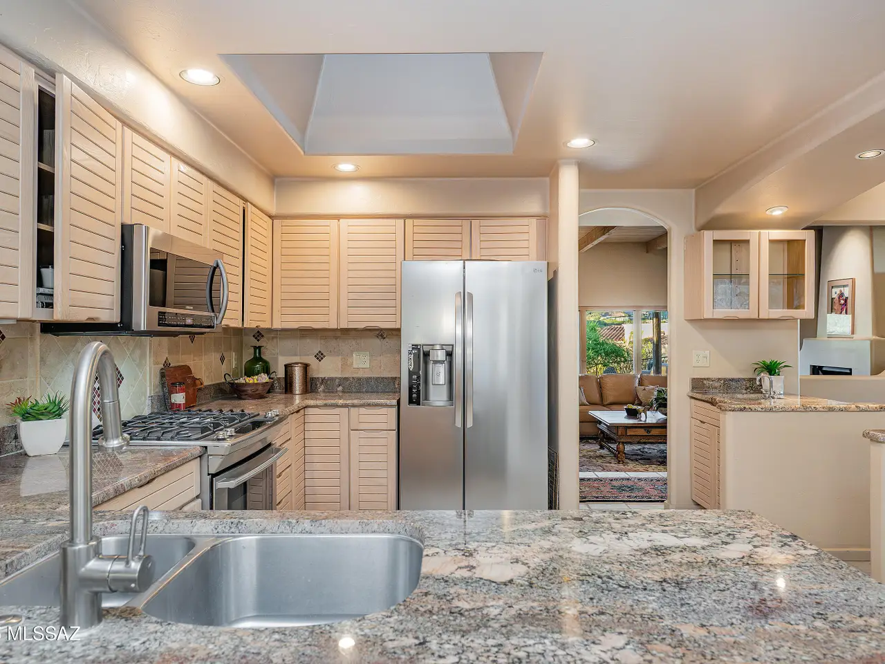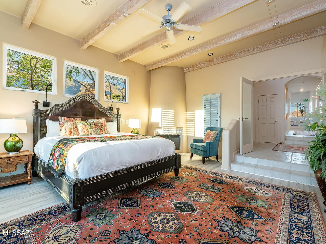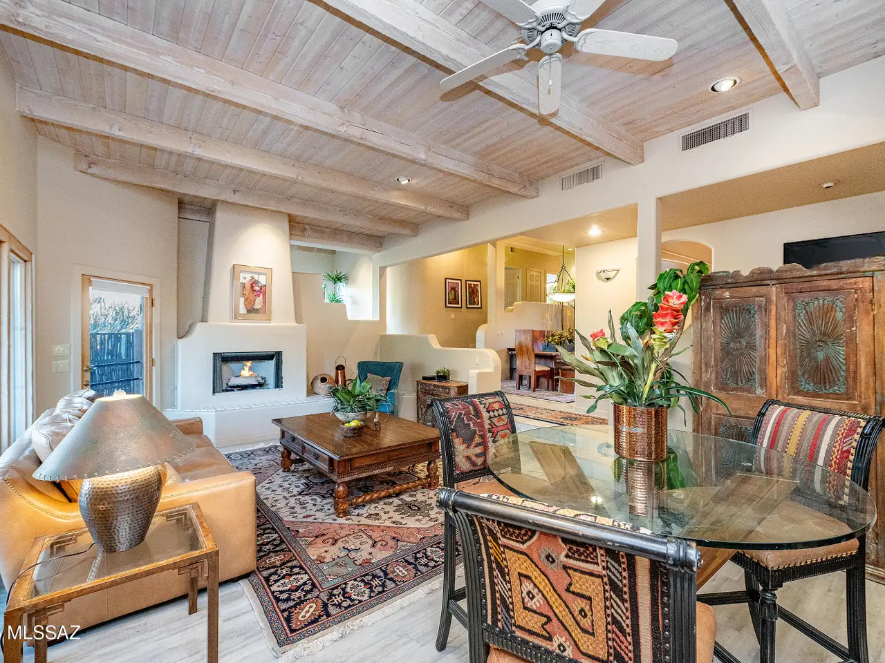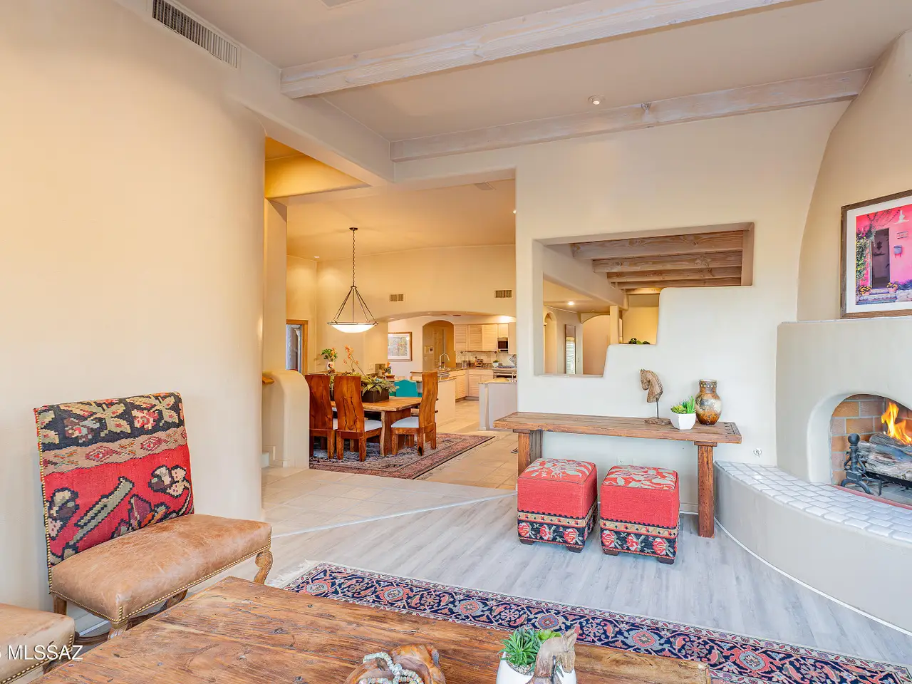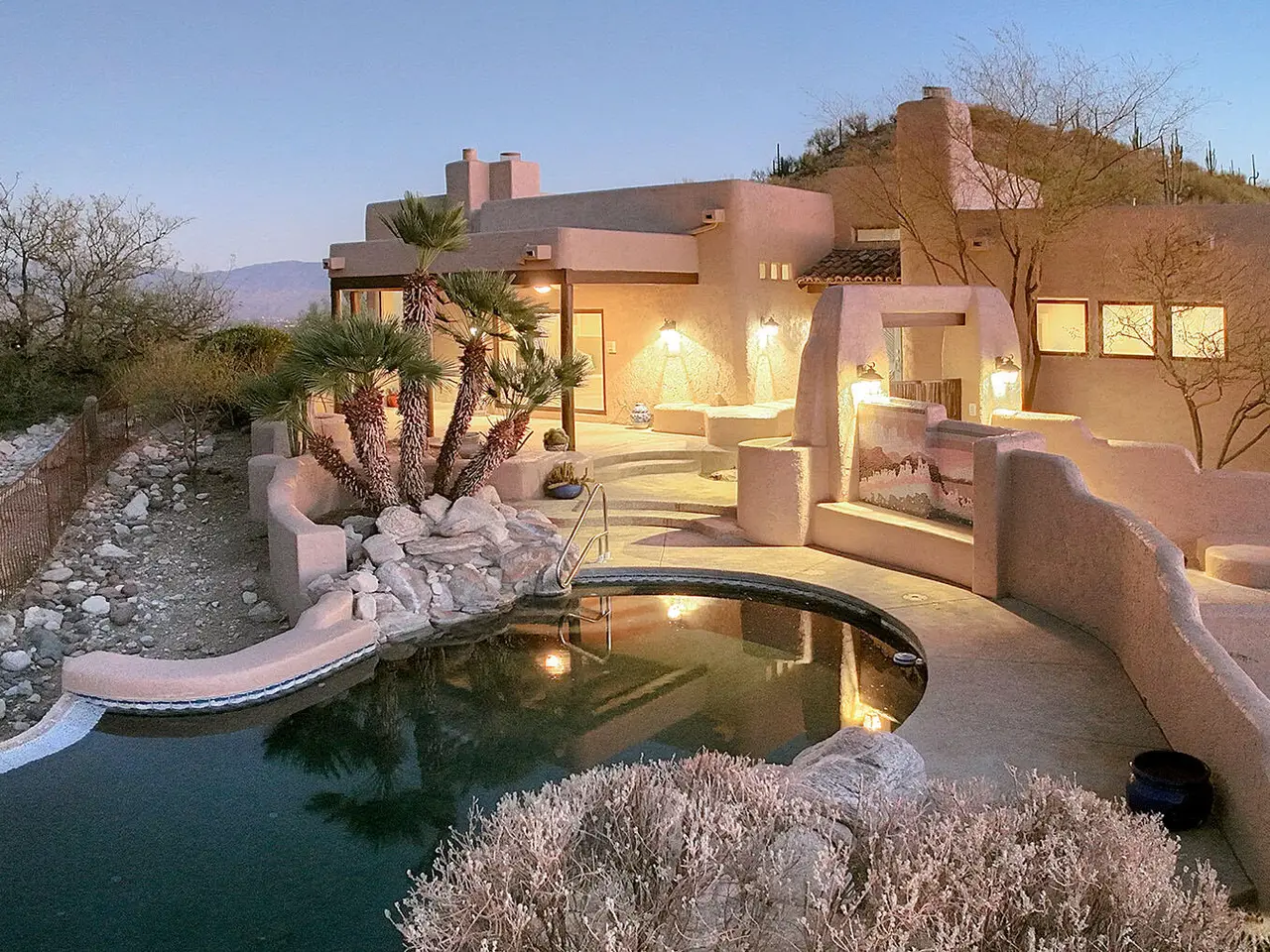 Nestled in the prestigious Alta Vista community, this exceptional residence sits atop a 1.21-acre lot, offering breathtaking mountain views. The main home spans 2,983 sq ft, complemented by a spacious 1,559-sq-ft guest house and a separate private office with its own entrance. This home features multiple living spaces, 5 bedrooms, 5 bathrooms, an office, and bonus room, providing ample space for family and guests. Many charming details, including soaring ceilings, exposed beams, and four fireplaces, create an inviting yet refined ambiance. Enjoy seamless indoor-outdoor living with two serene courtyards, multiple covered patios, and a sparkling pool. Located within the Catalina Foothills School District and just moments from premier golf, shopping, dining, and hiking.